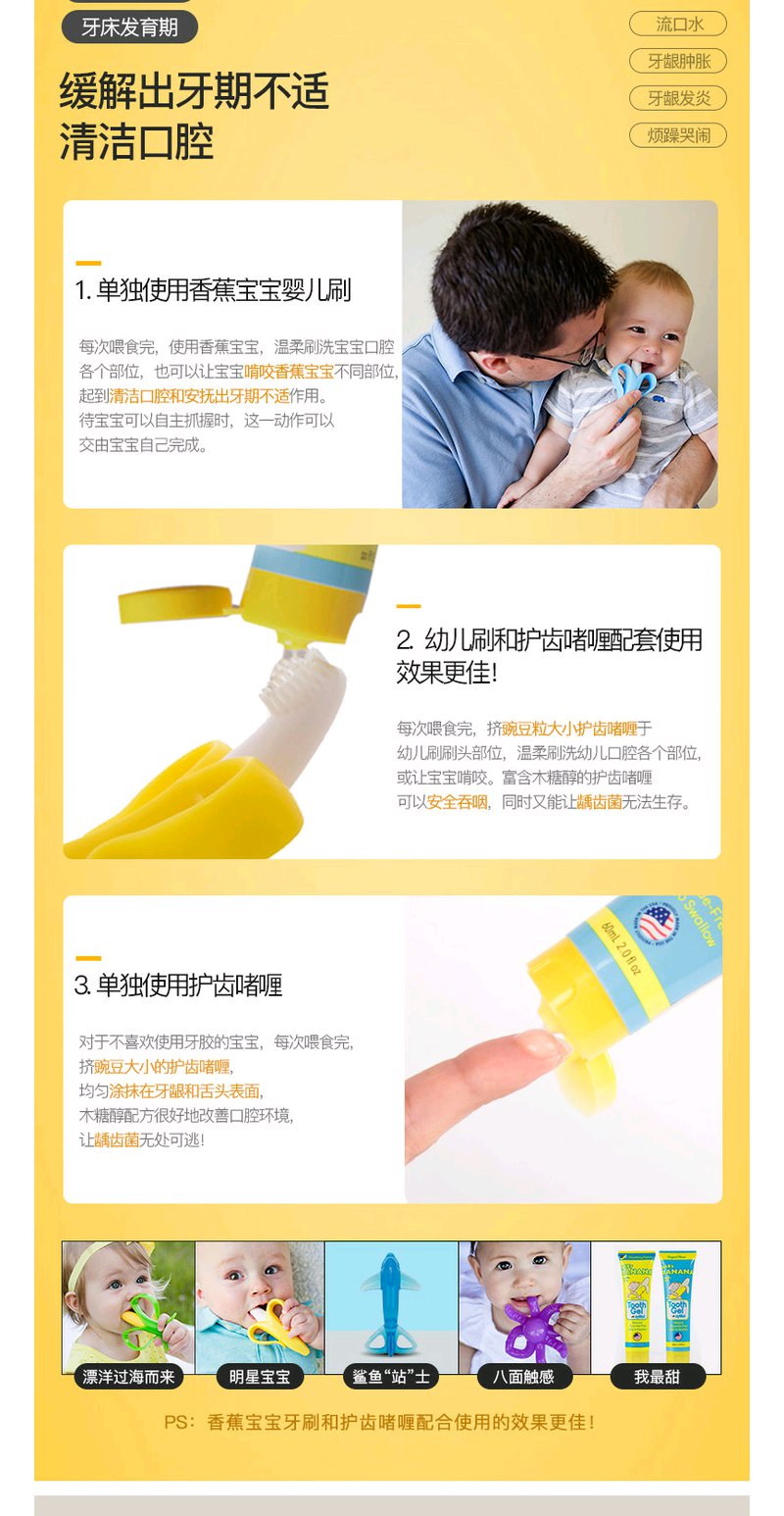 香蕉宝宝硅胶婴儿牙胶-黄色
