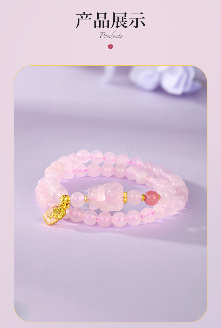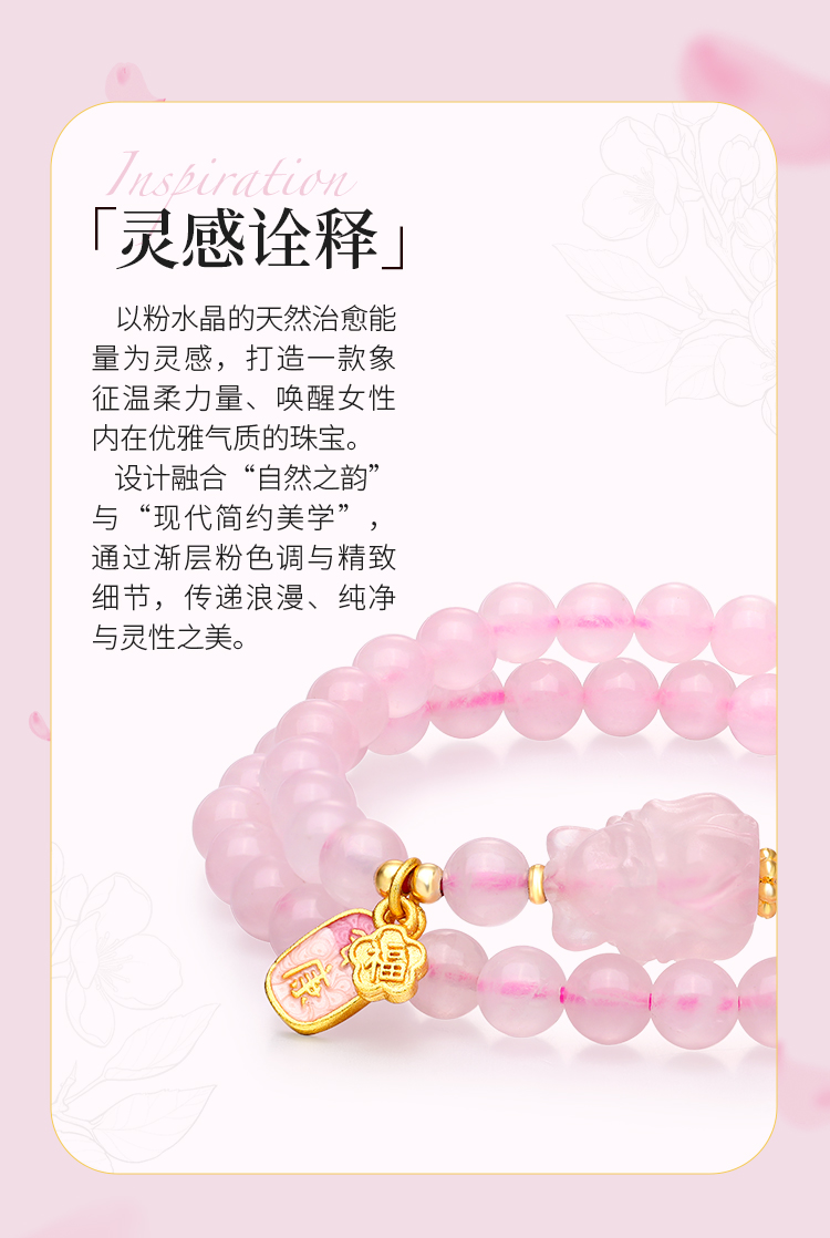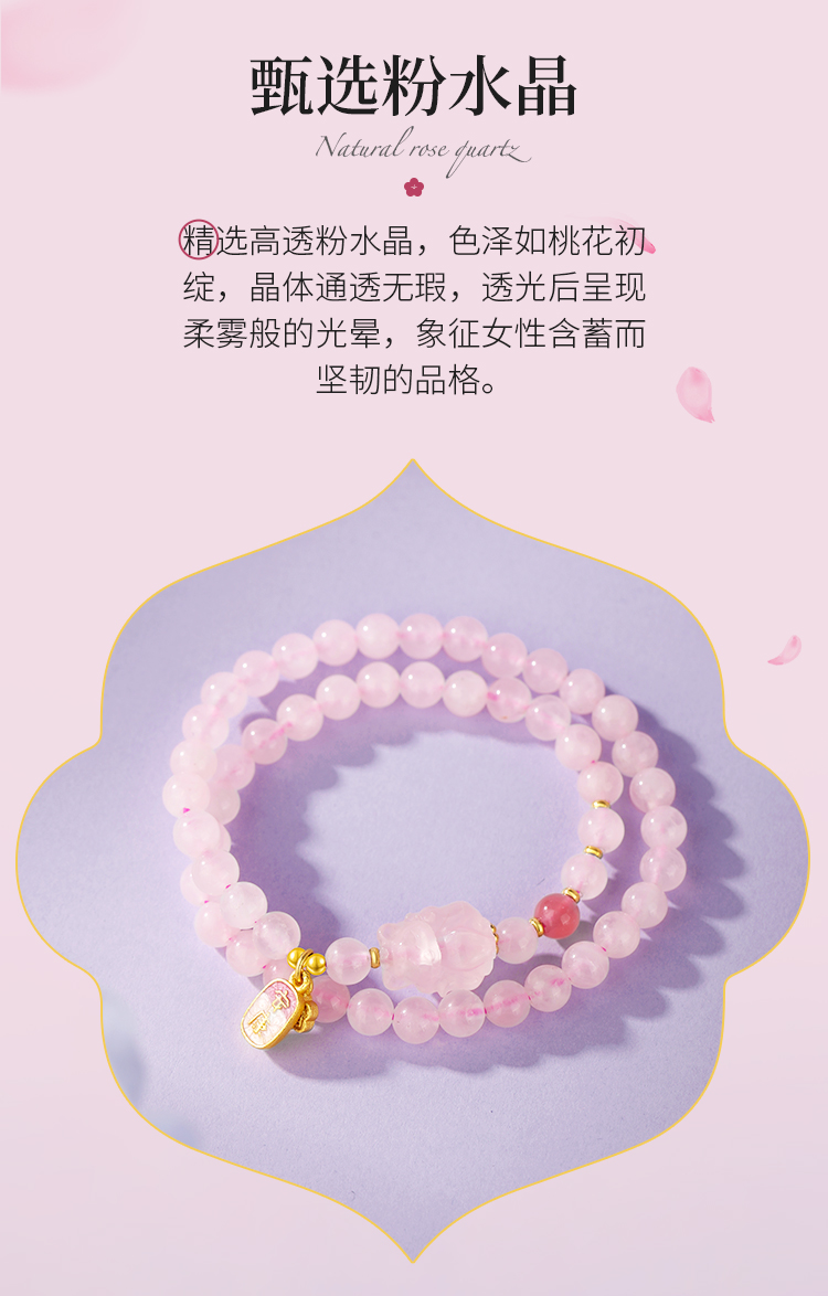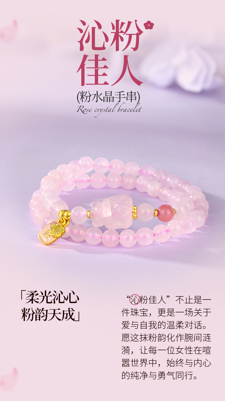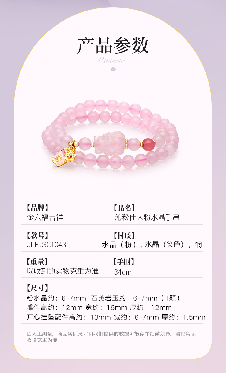 金六福吉祥沁粉佳人粉水晶手串JLFJSC1043★