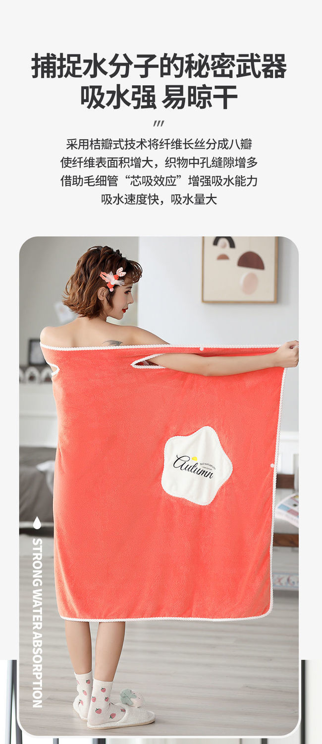 吸水能力堪比纸尿裤,柔软亲肤,享受云朵端的包裹浴巾女毛巾成人韩版可爱浴裙比纯棉吸水珊瑚绒速干七夕情人节