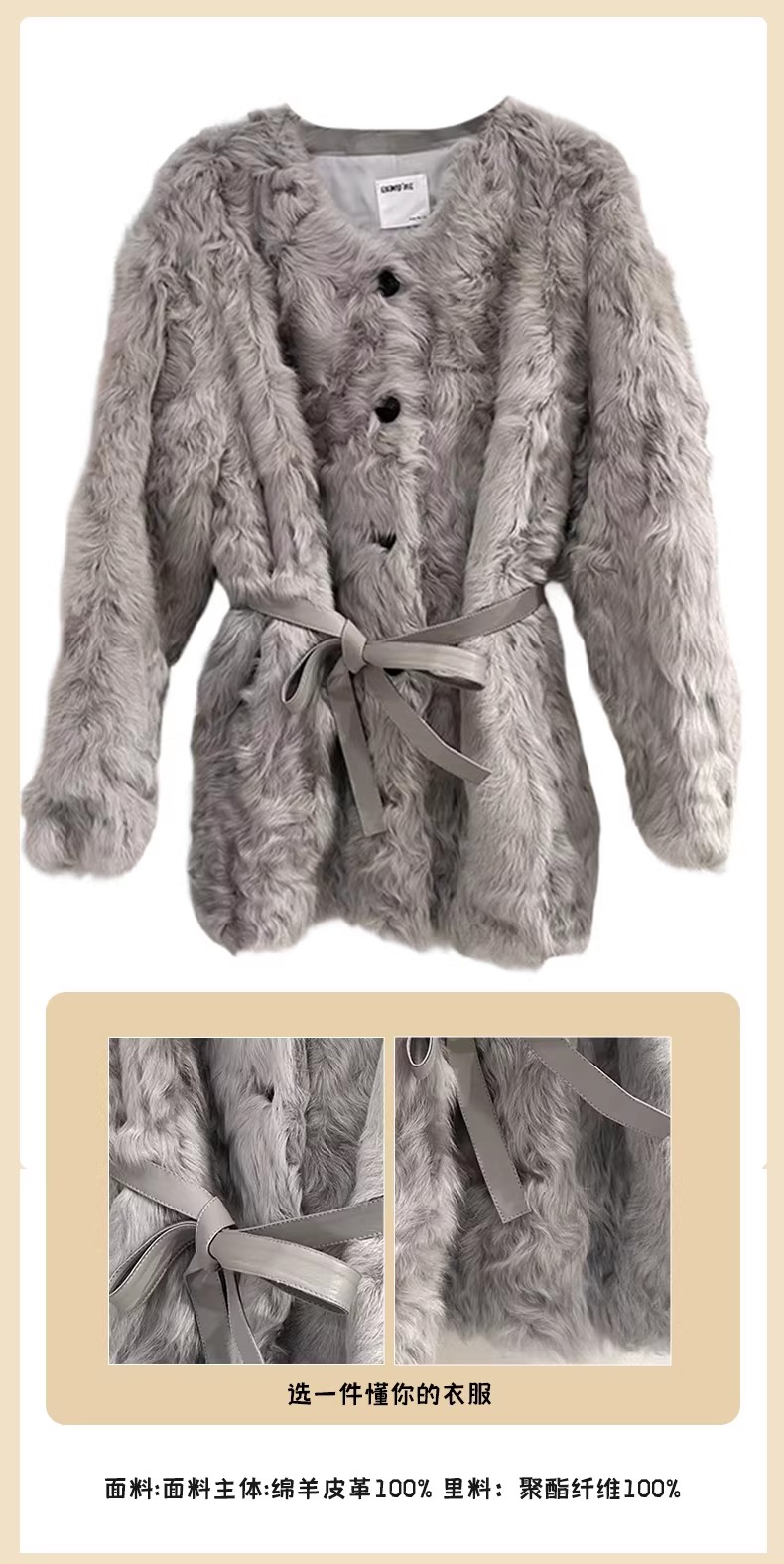 【门店同款】ENJOY冬季“暖冬软糖”小湖羊收腰皮草 168099868