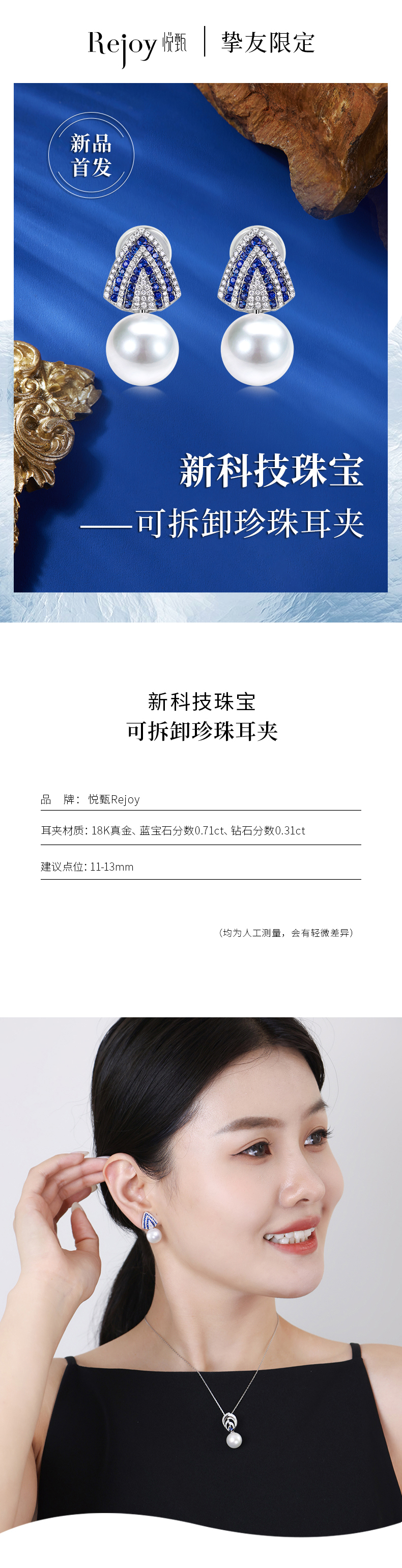 【黑科技】黑科技珠宝-可拆卸18K金蓝宝石钻石耳夹 澜予(会员享试戴权益,定制后不支持7天无理由退换货)