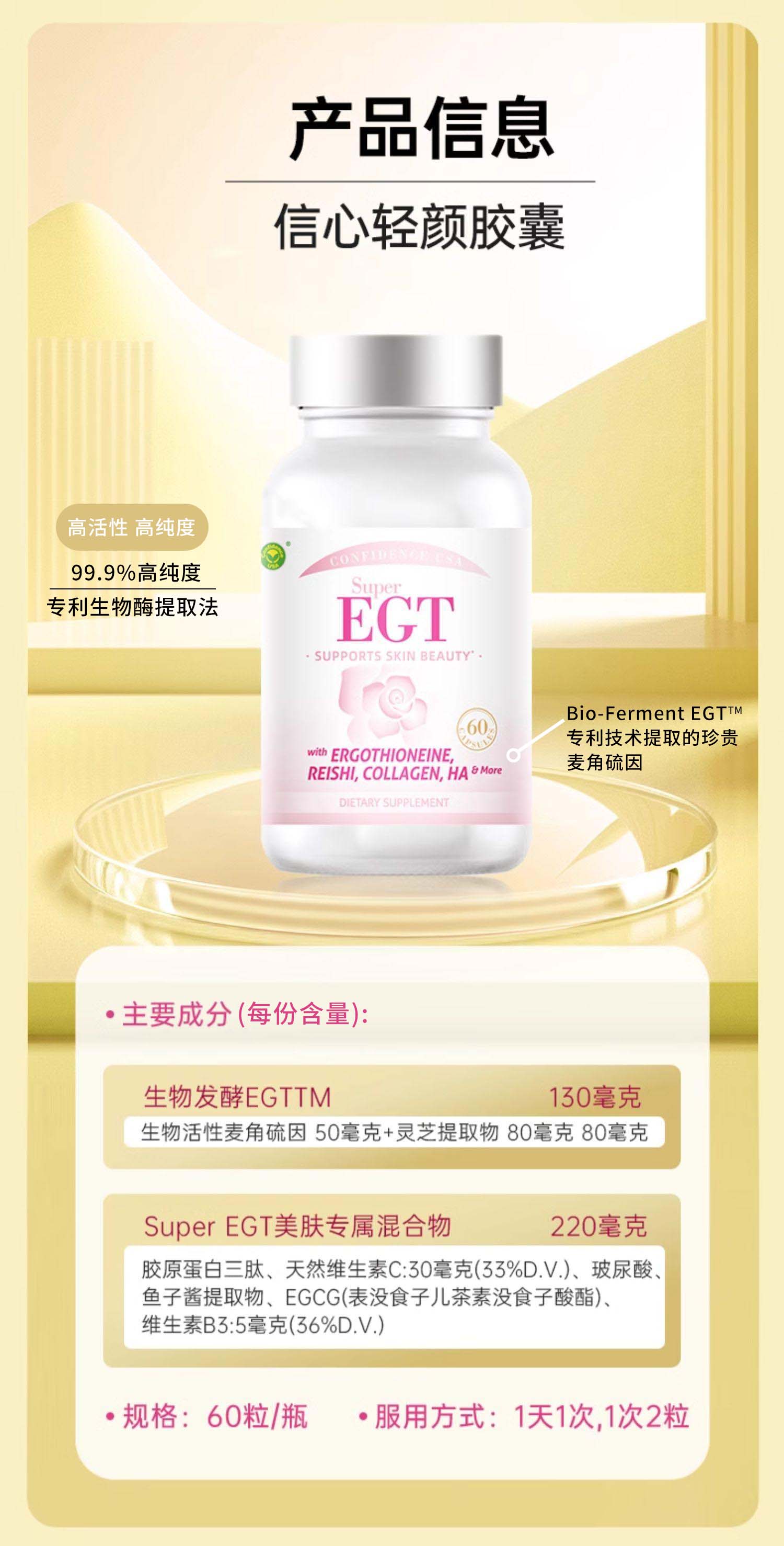 轻颜 99.9% 高纯度麦角硫因EGT灵芝复合胶囊 强抗氧化 小鼠实验延长健康寿命