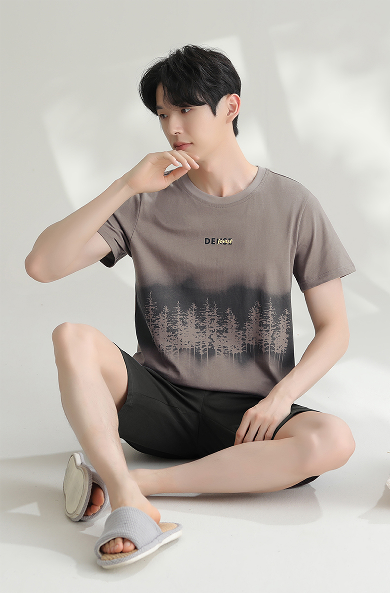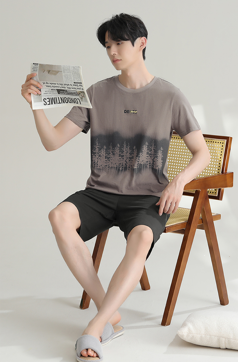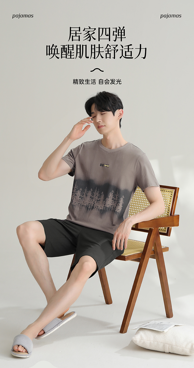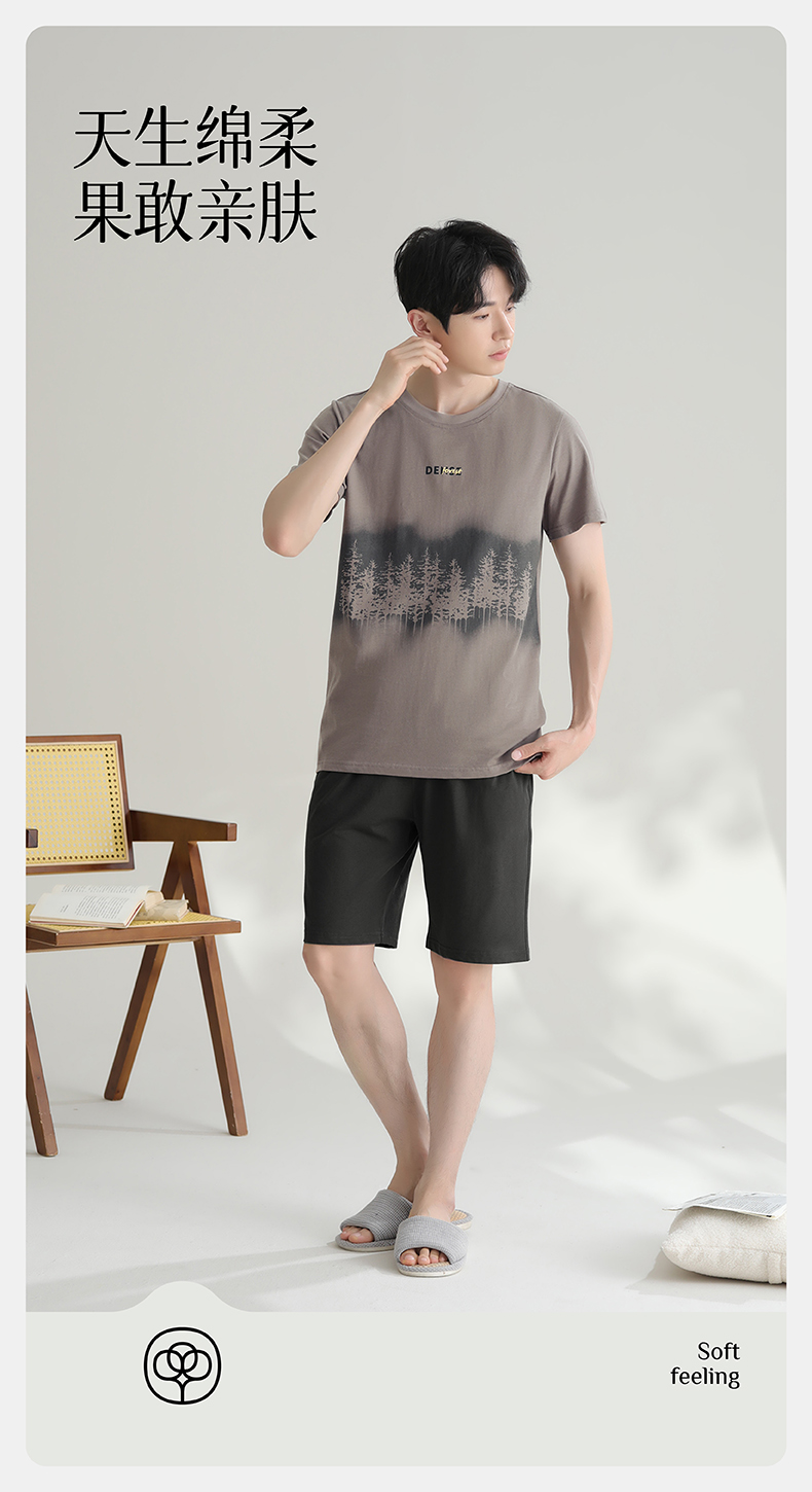 芬腾夏季100%棉男士睡衣薄款家居服套装 A-4535