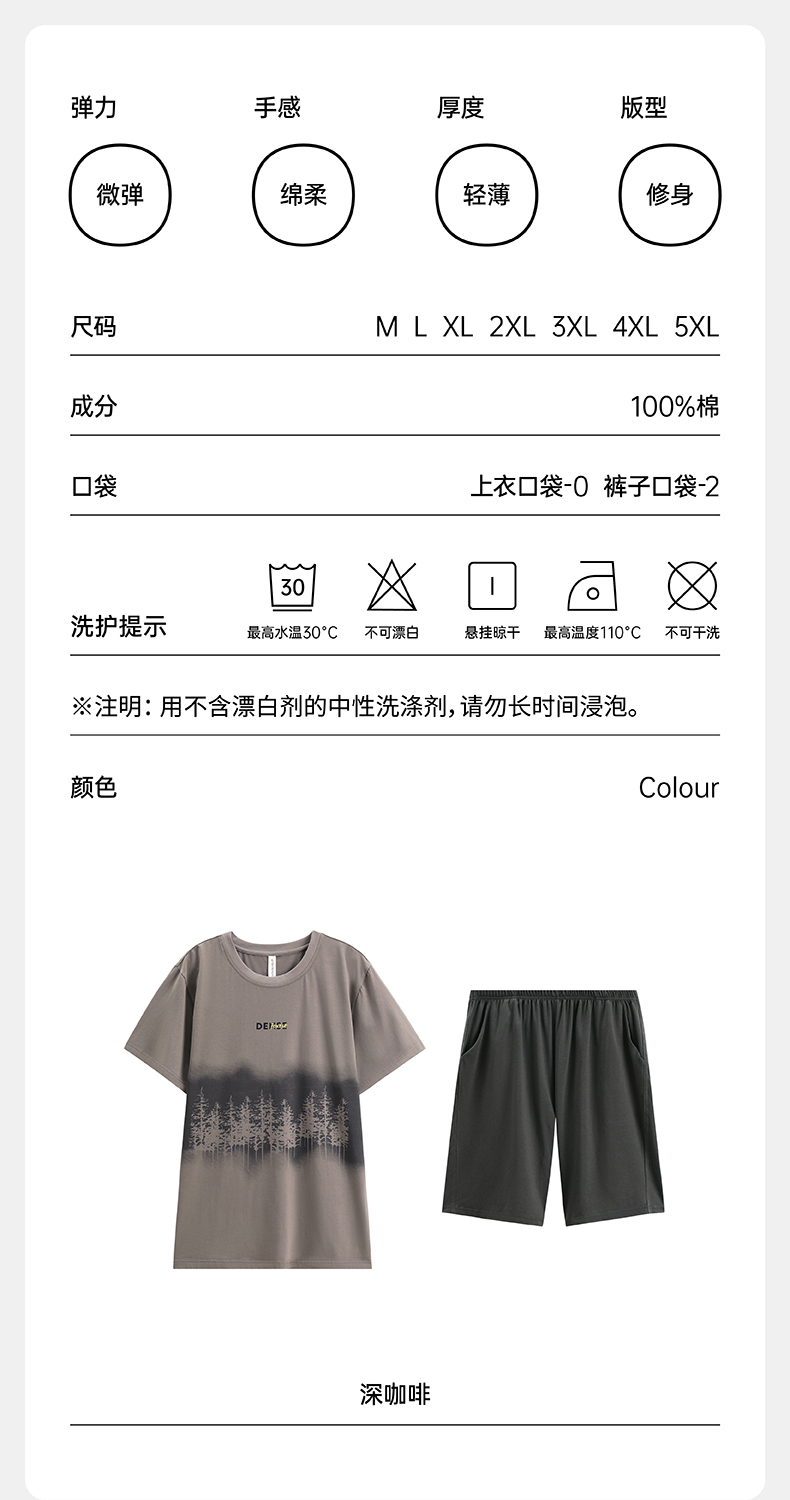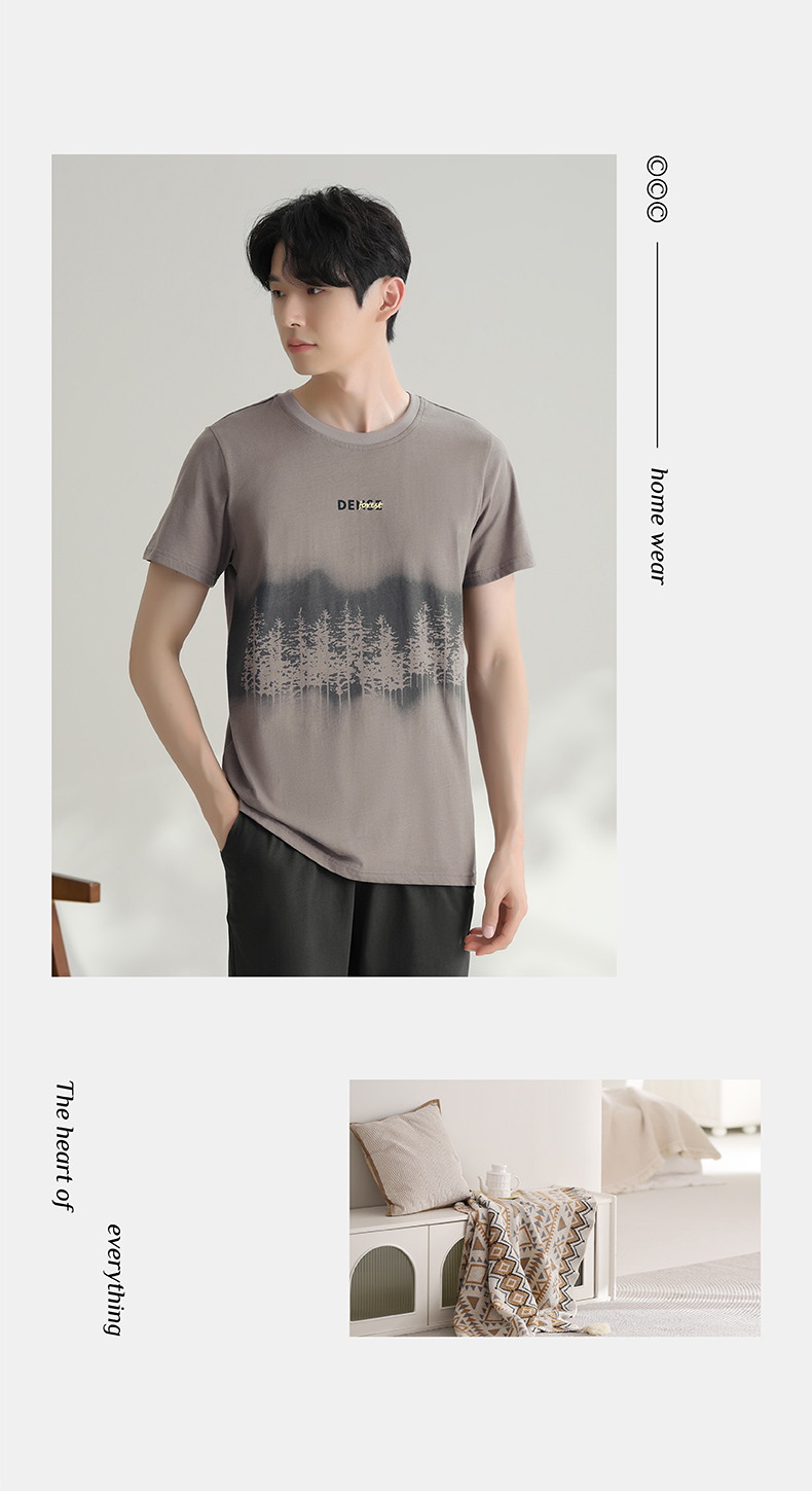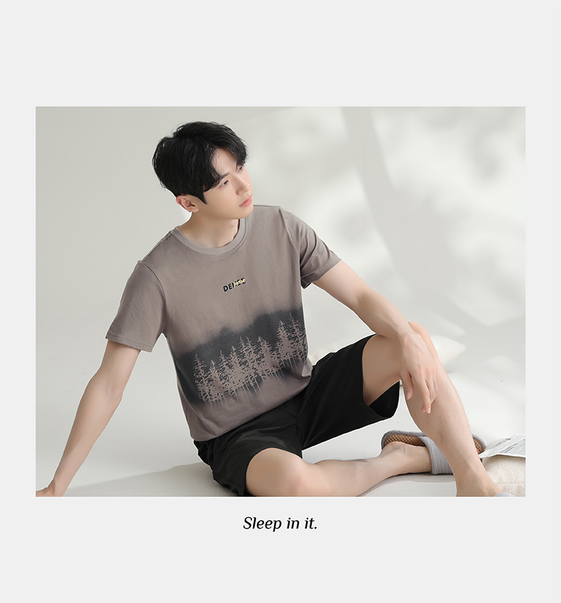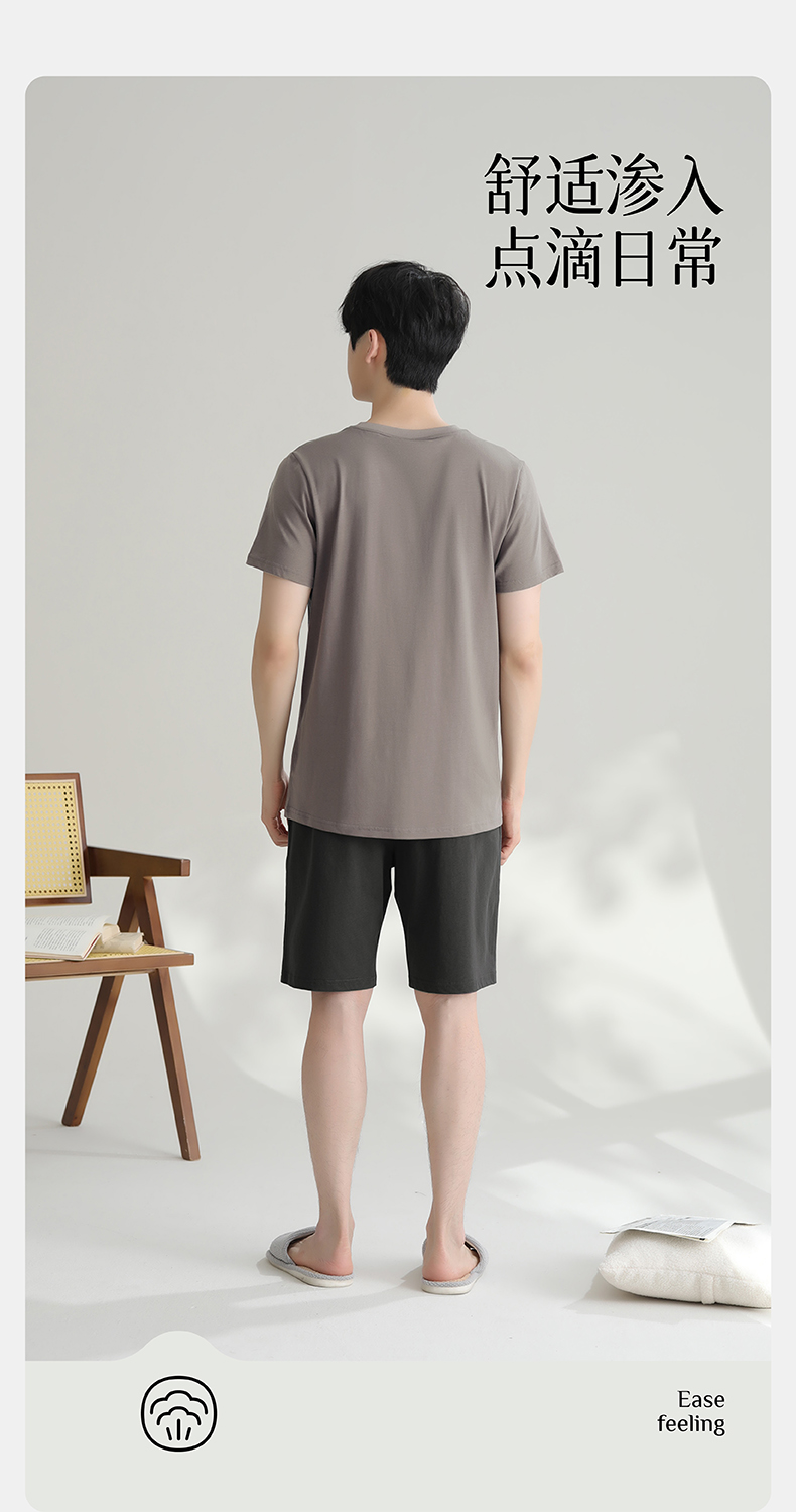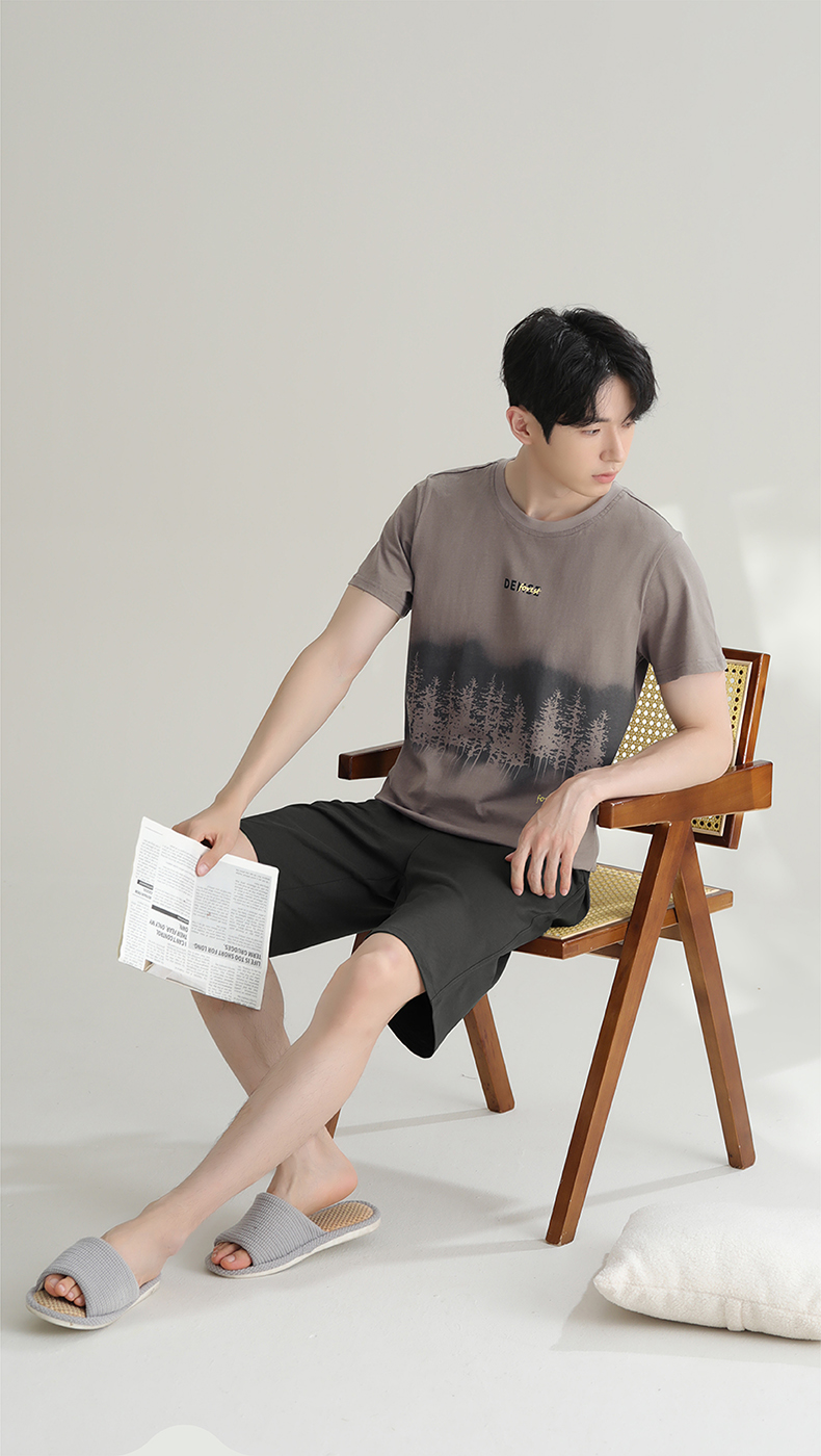 芬腾夏季100%棉男士睡衣薄款家居服套装 A-4535