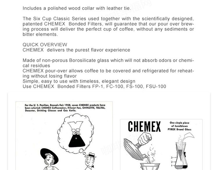 【器具】Chemex 手冲壶分享壶(木柄)中国总代理美国正品 滴滤咖啡壶