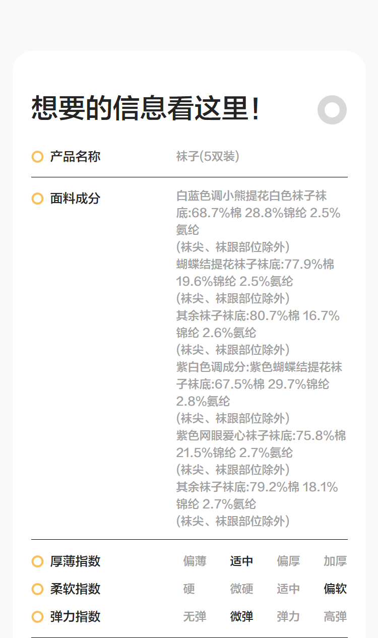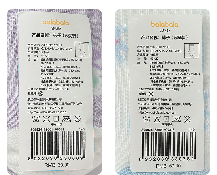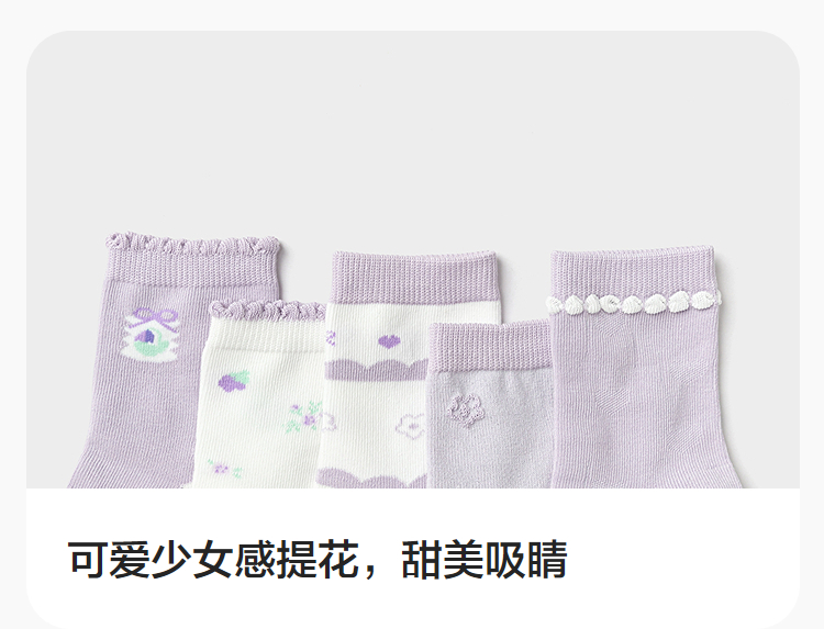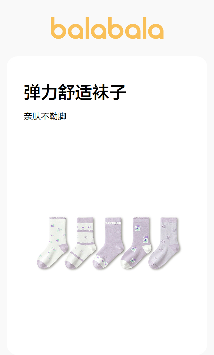 【balaOne】巴拉巴拉儿童袜子春秋女童棉袜中筒袜柔弹提花五双装
