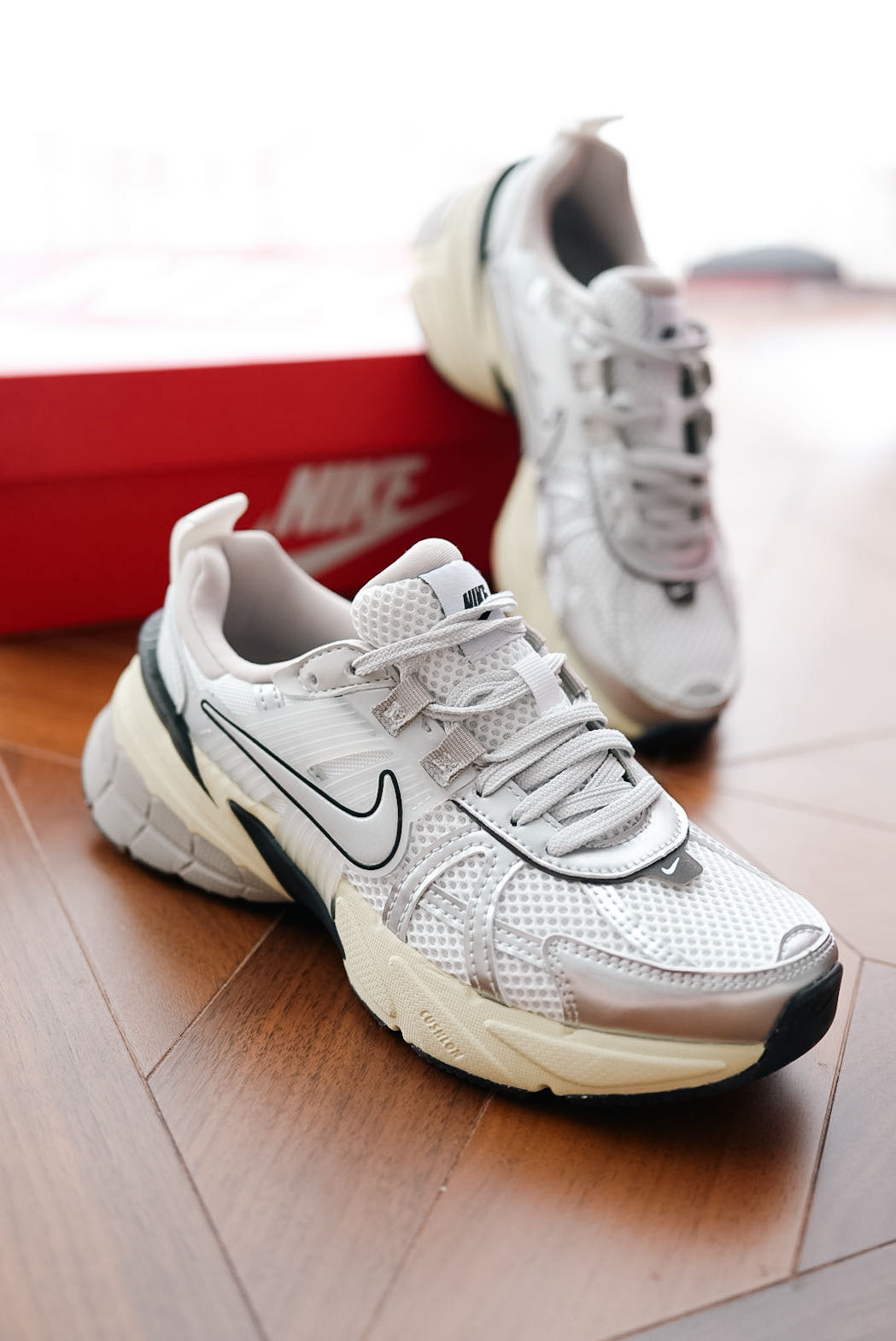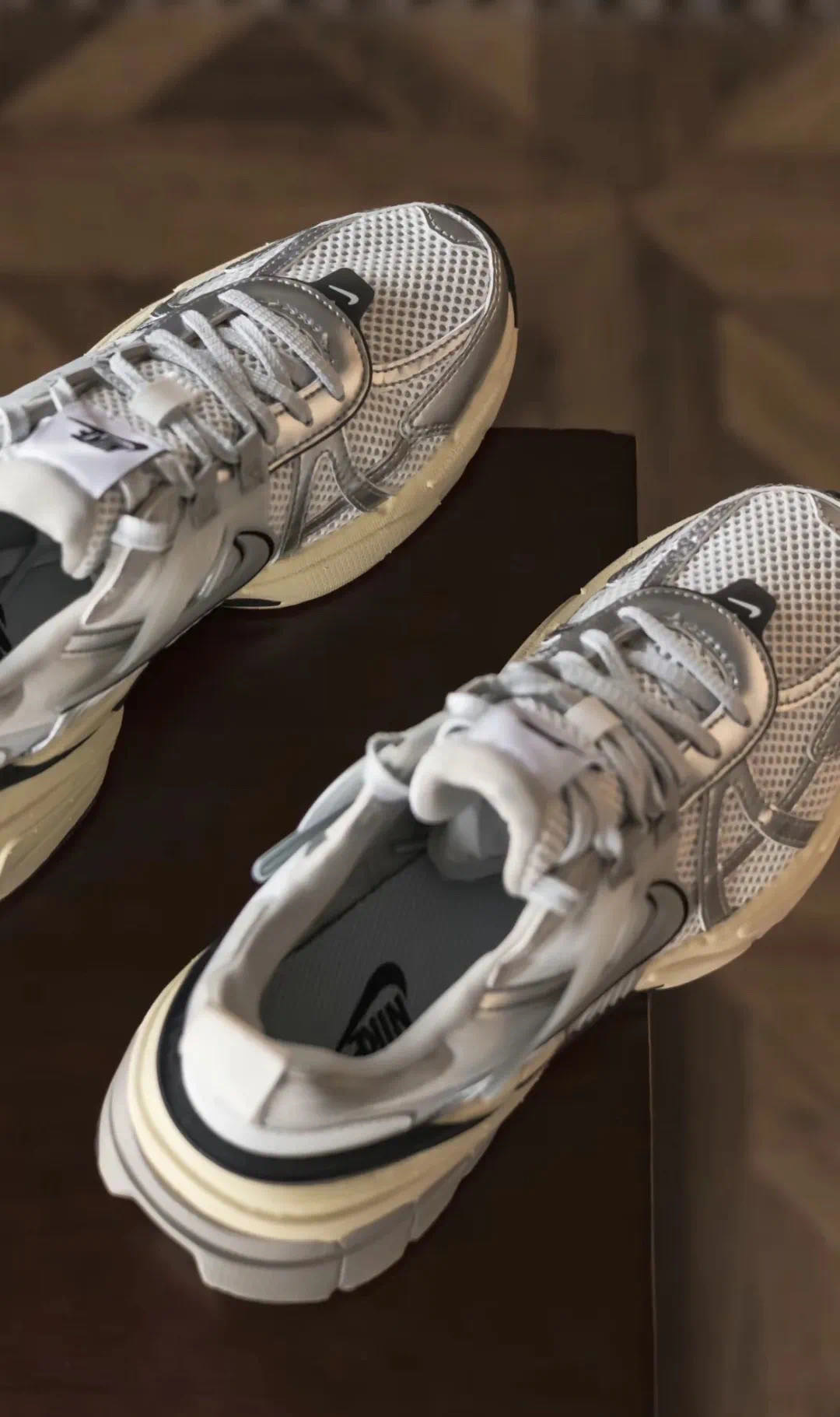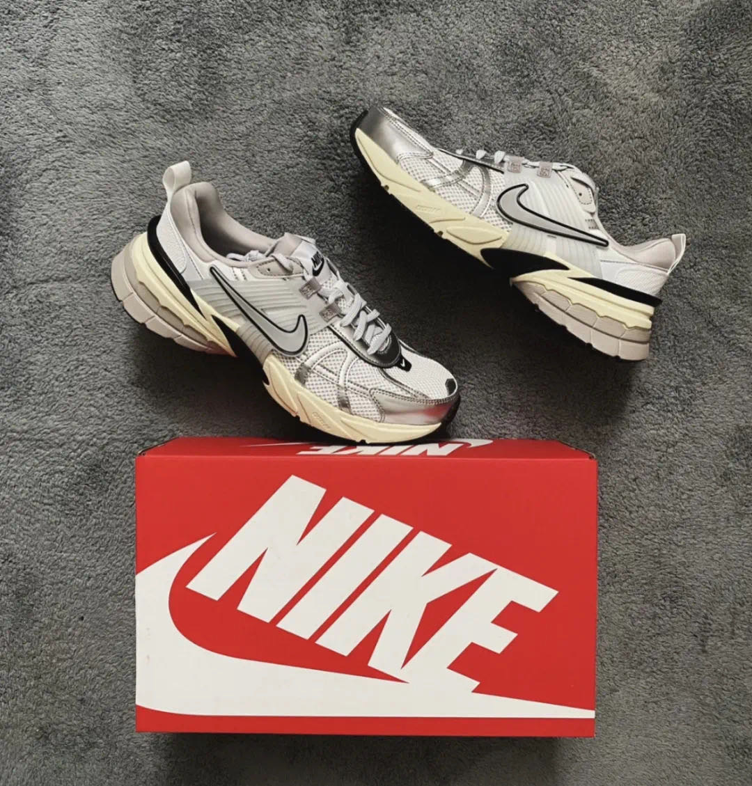 🔺NIKE V2K RUN【经典款】白银配色 FD0736-100 Nike 新出的 “3XL” 巴里巴气的 鞋头改了银色的鞋带,有巴黎世家 “3XL”内味了 鞋型比较修长,会有点压脚背,建议买大半码 增高大概3-4cm的样子!