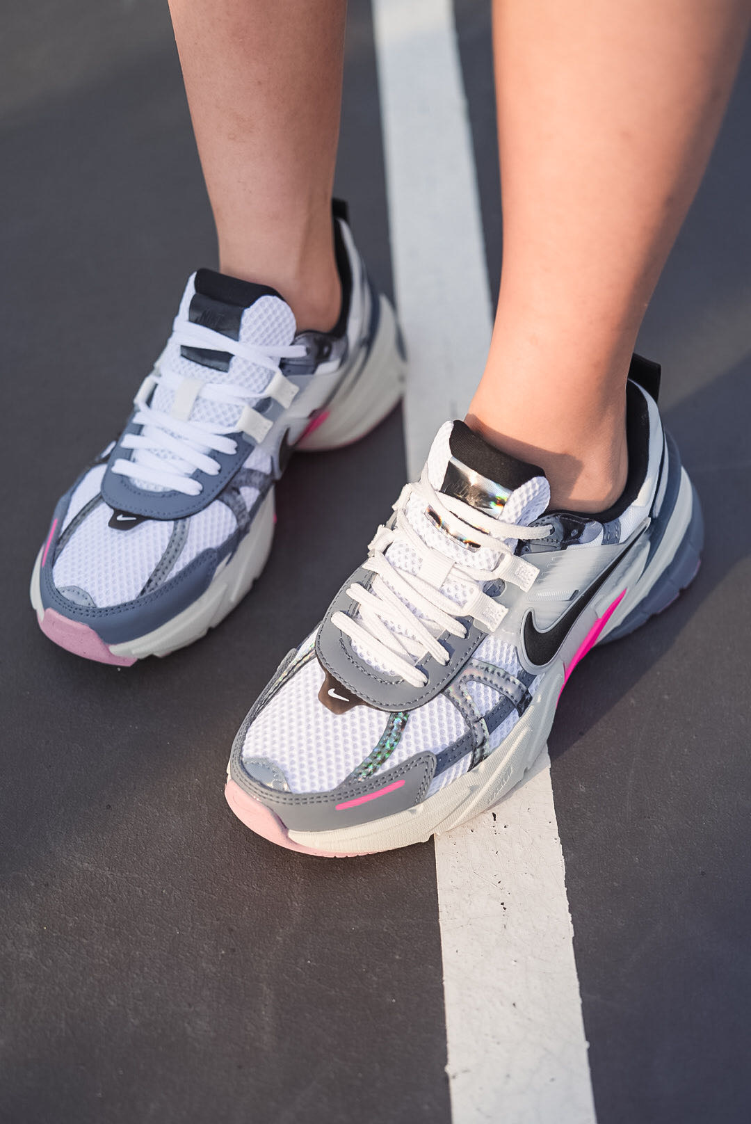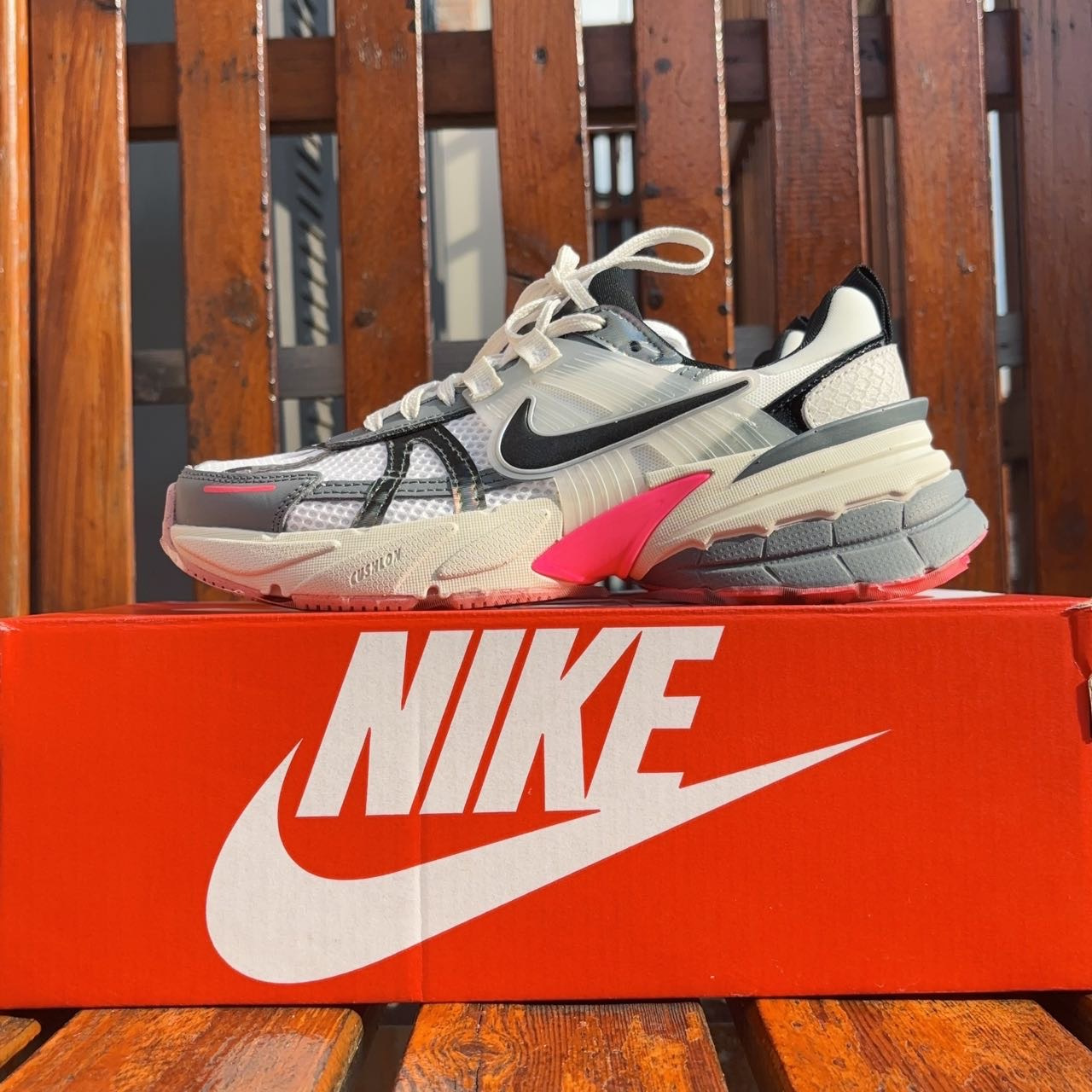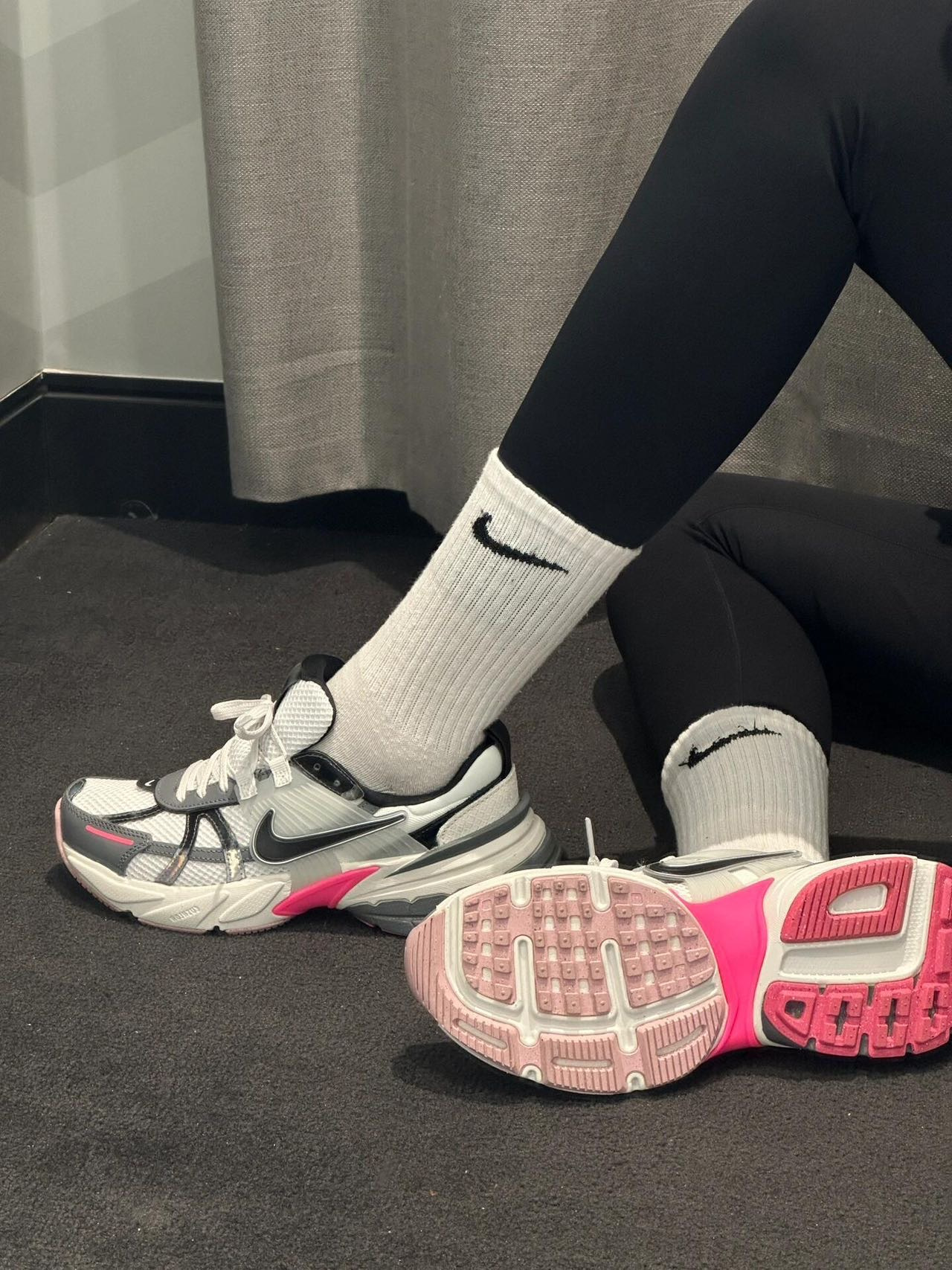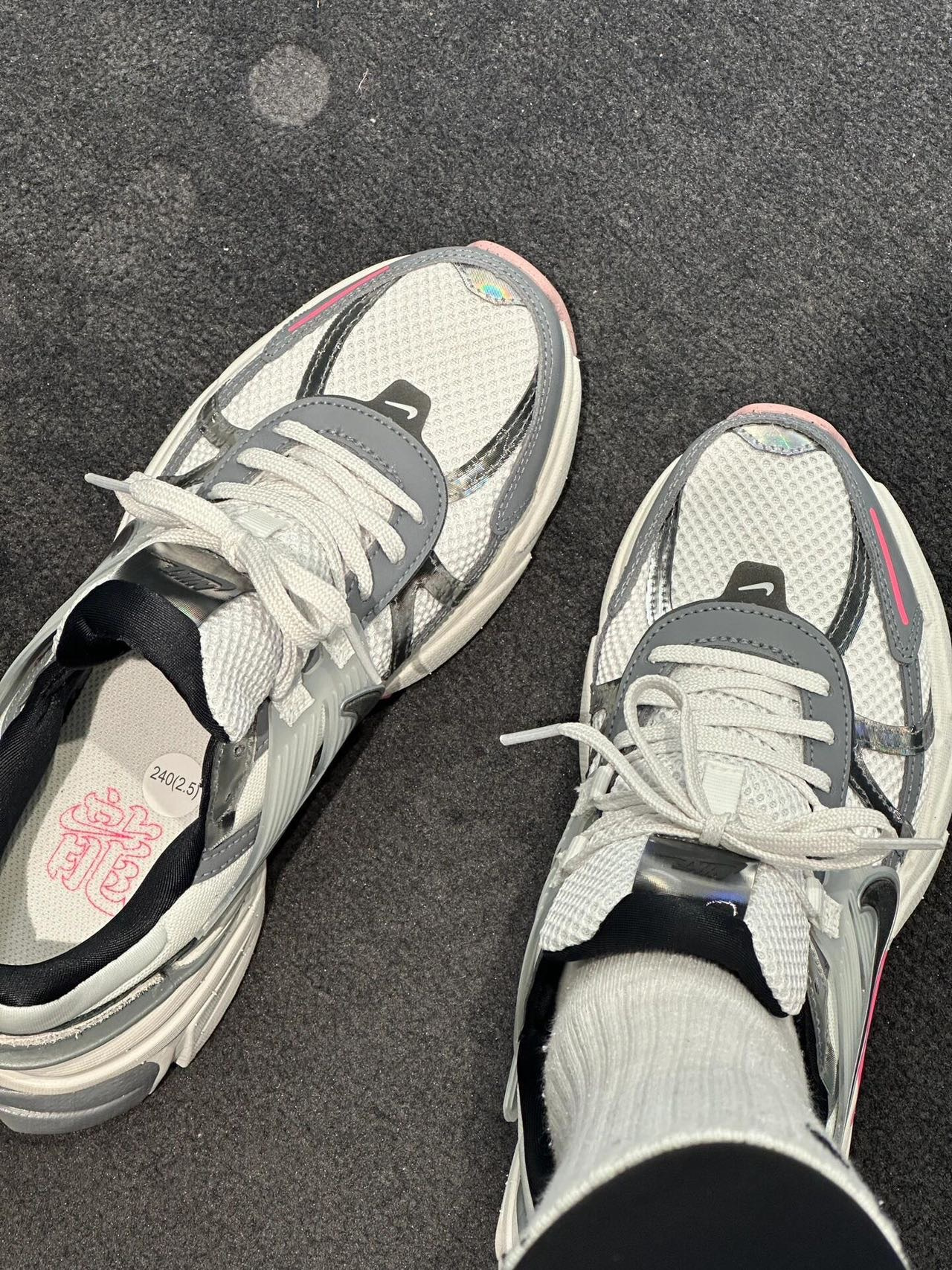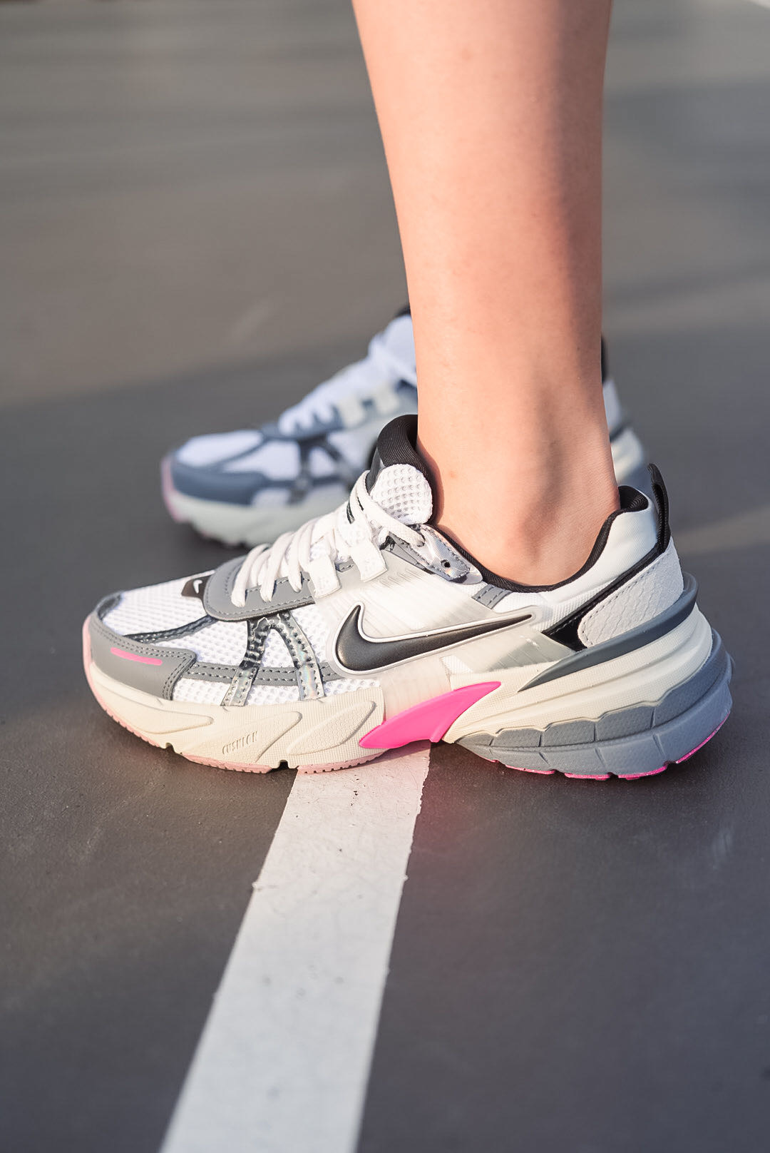 🔺NIKE V2K RUN【龙年限定】白粉配色 FZ5061-100 被玫红色拿捏住! 把玫红和粉色装扮在鞋底,只漏出两侧的玫红色小翅膀,真的是爱到不行 冷灰色+玫红+脏粉,高级感满满的女生跑鞋 鞋舌的镭射材质,不同光线下会呈现不同的视觉效果