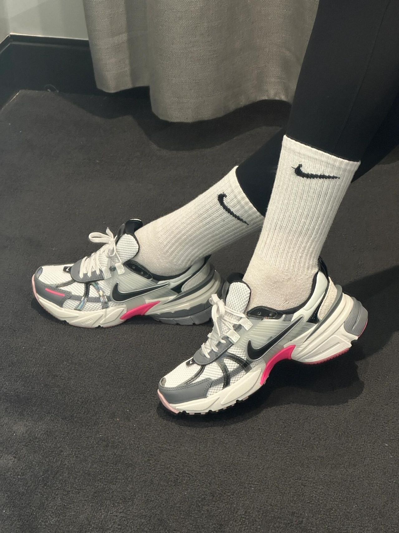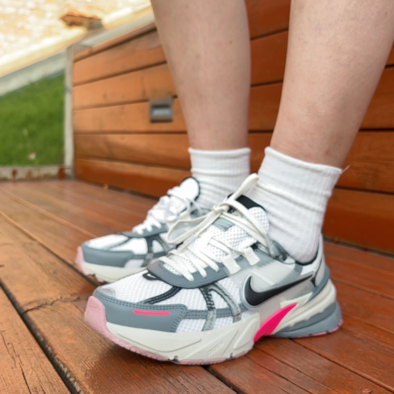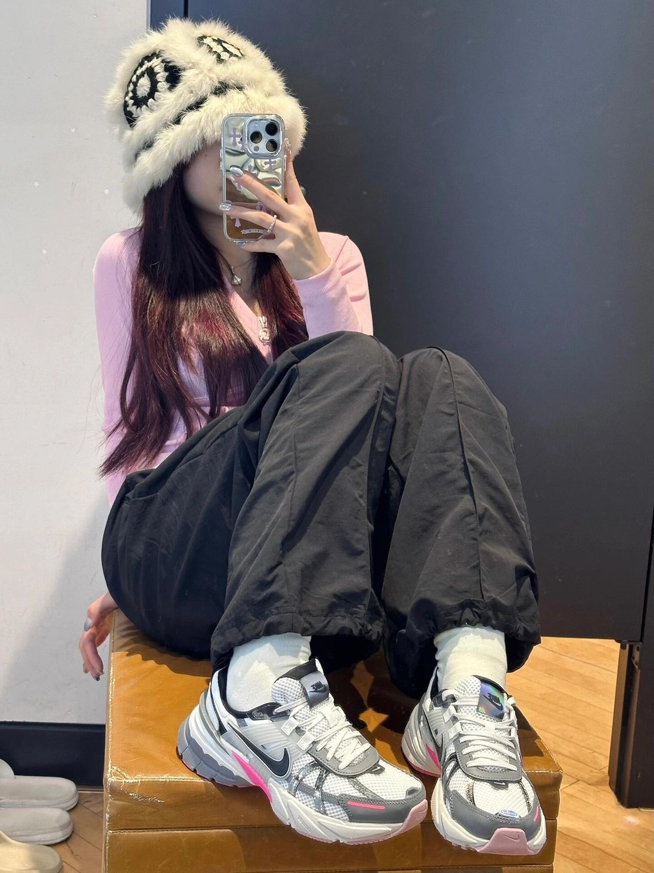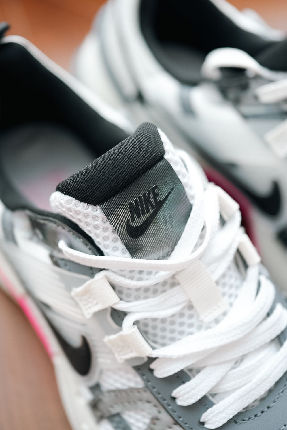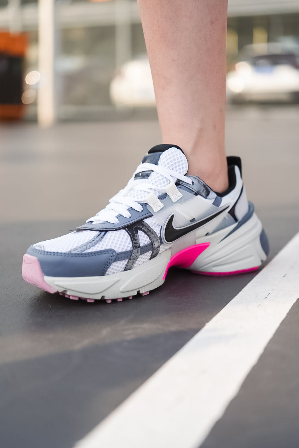 🔺NIKE V2K RUN【龙年限定】白粉配色 FZ5061-100 被玫红色拿捏住! 把玫红和粉色装扮在鞋底,只漏出两侧的玫红色小翅膀,真的是爱到不行 冷灰色+玫红+脏粉,高级感满满的女生跑鞋 鞋舌的镭射材质,不同光线下会呈现不同的视觉效果