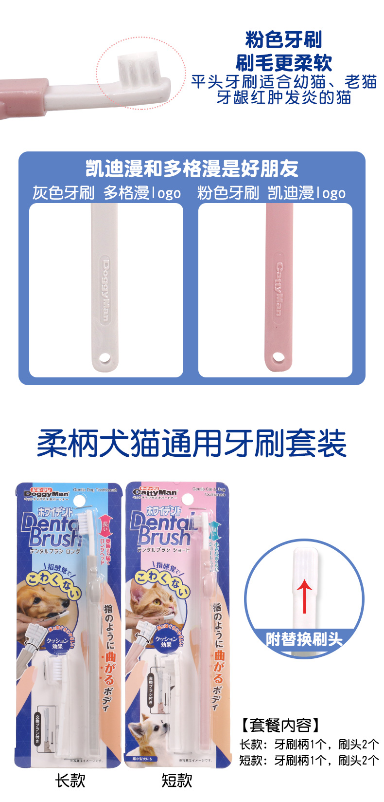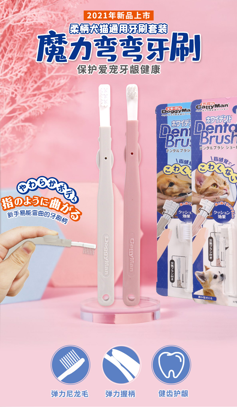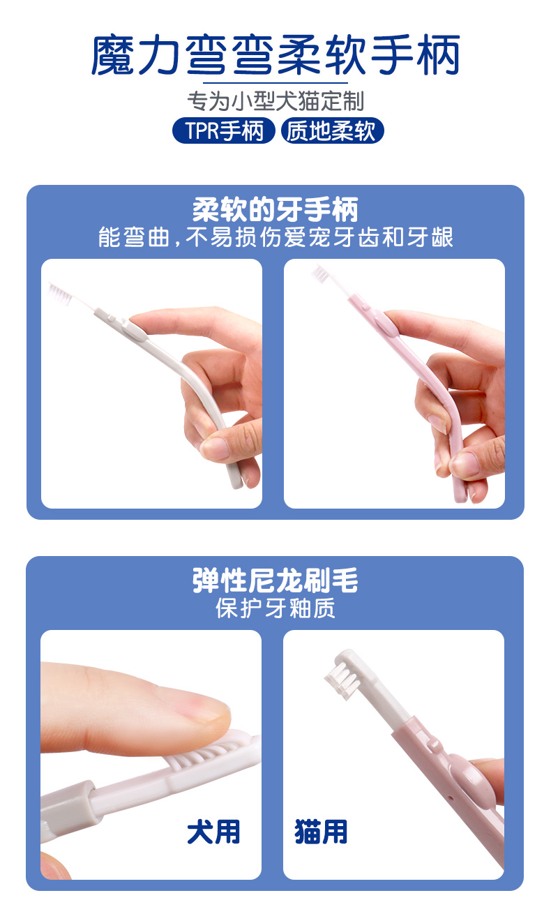 多格漫牙刷柔柄魔力弯弯多角度可弯折牙刷 柔软刷毛附替换刷头猫及小型犬用小刷头牙齿口腔清洁