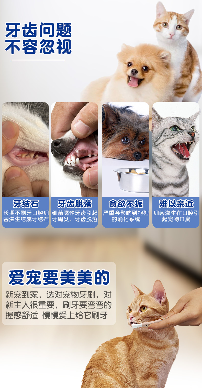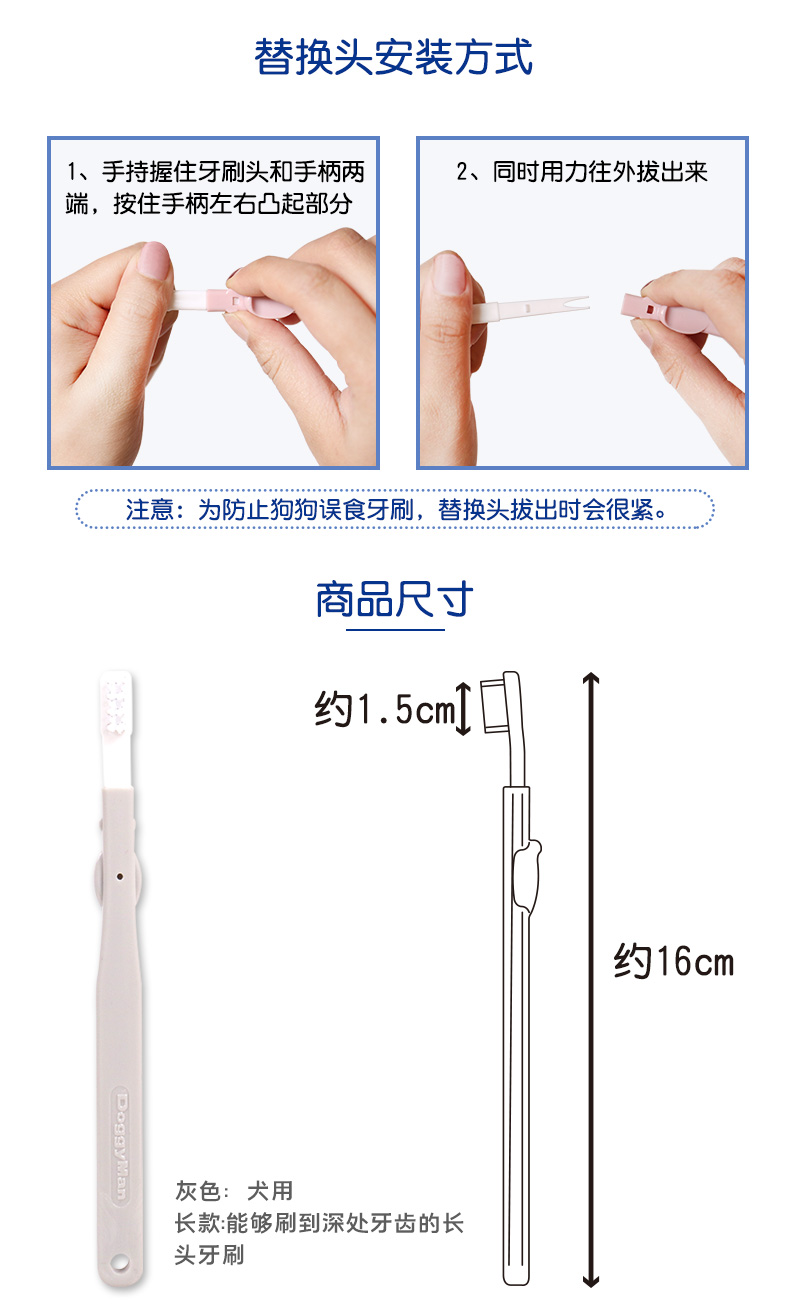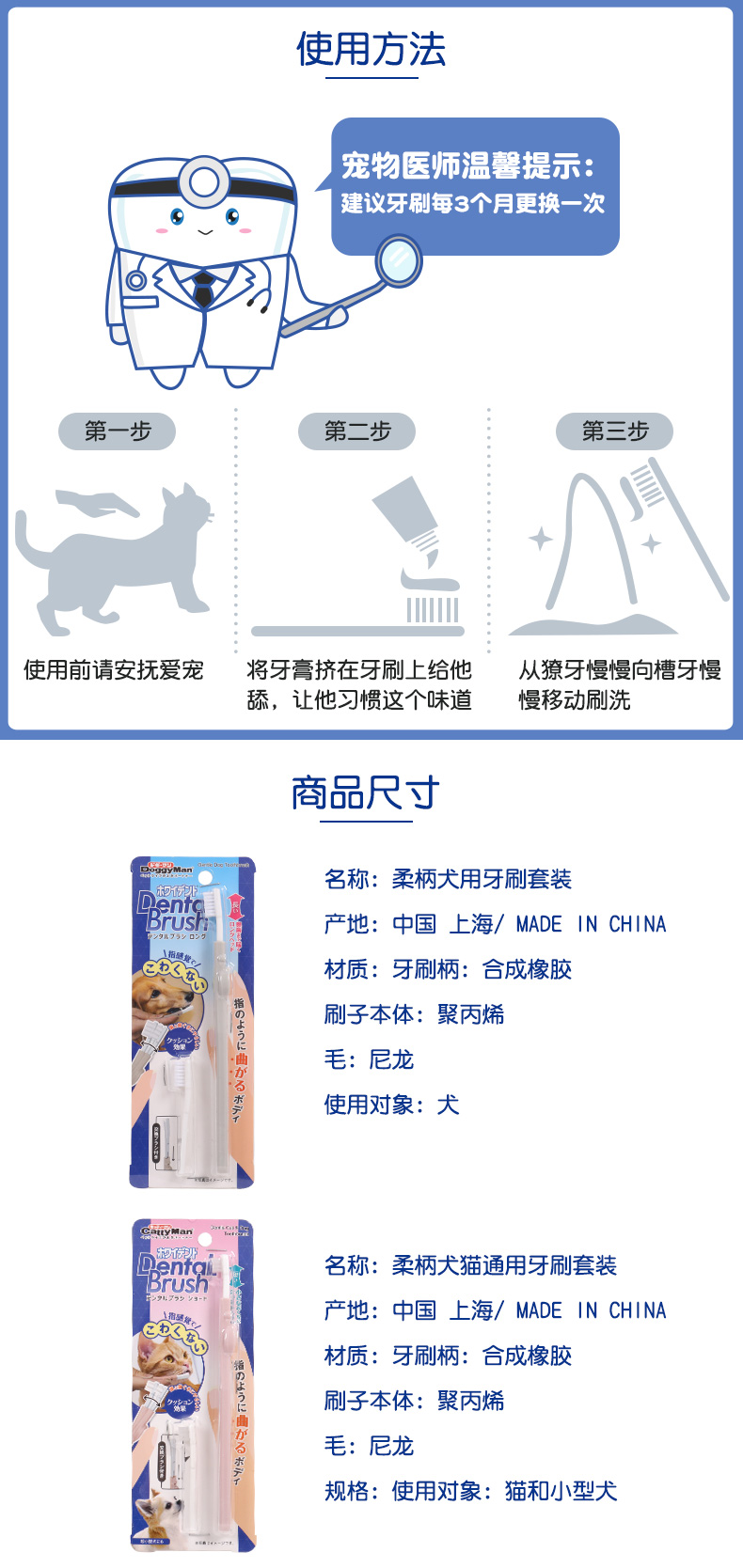 多格漫牙刷柔柄魔力弯弯多角度可弯折牙刷 柔软刷毛附替换刷头猫及小型犬用小刷头牙齿口腔清洁