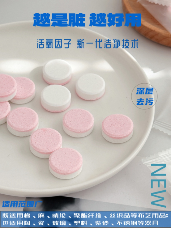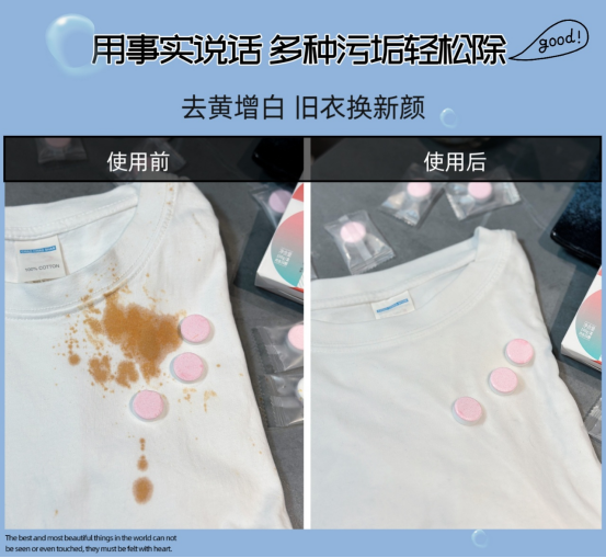 去污神器,活氧速泡净来了哦! 只要泡一泡,污渍瞬间消失 冬天到了衣服厚重又难洗, 有了这个泡腾片,洗衣的时候丢一片进去 特别是白色浅色衣服,简单泡下就干净了!