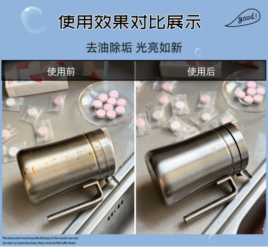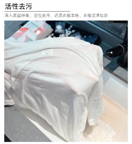 温和无刺激配方 有效洗衣速净护色 柔顺护理衣物多次洗涤之后依然亮丽如新 没有它不能“换新”的东西活氧去污 尤其是厨房里各种器具不好清洗的东西 只需在水里丢丢入一颗活氧速泡净 再把器具丢进去泡一泡,等上十几分钟 泡完清水一冲,立刻亮白如新