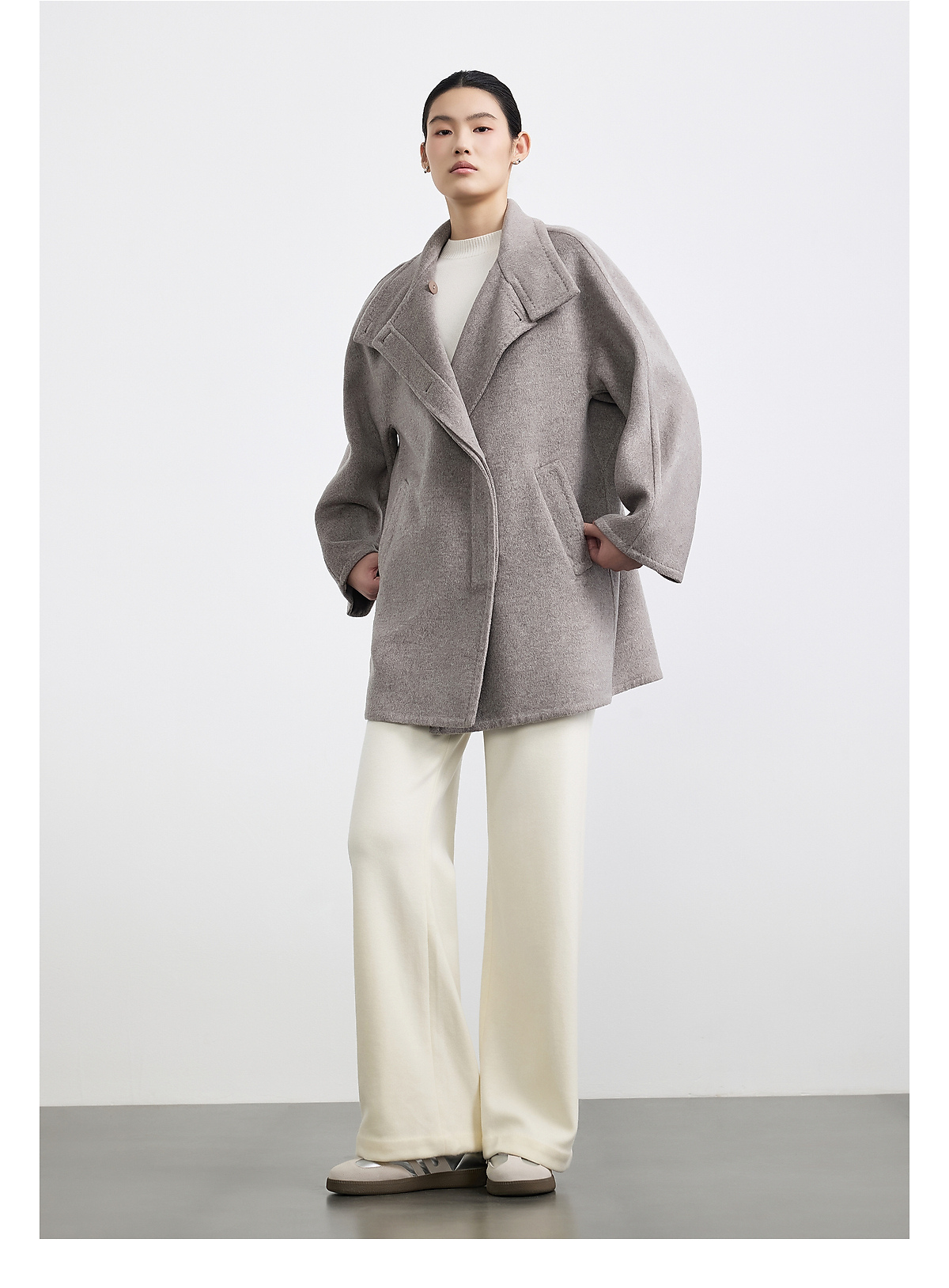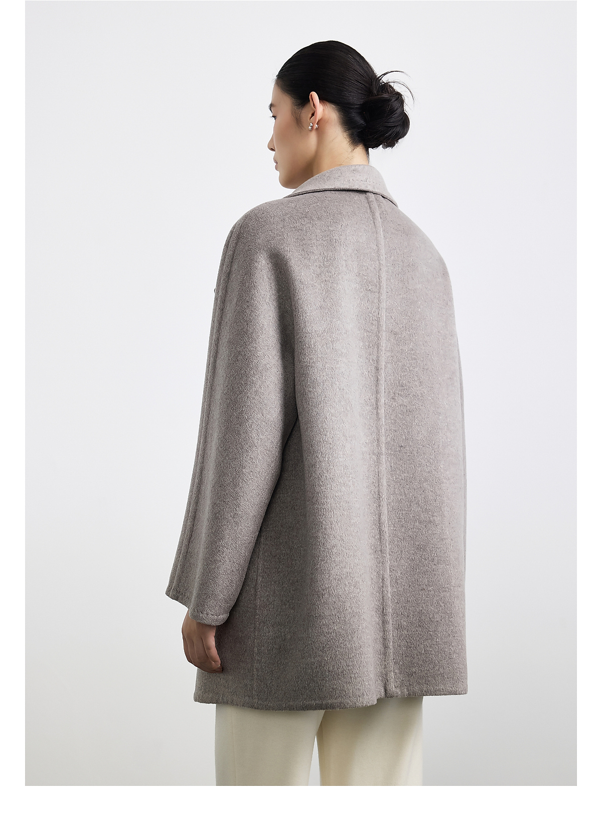 商场同款PURE TOUCH女装25冬立领毛呢大衣单排扣丝绒毛混纺短外套