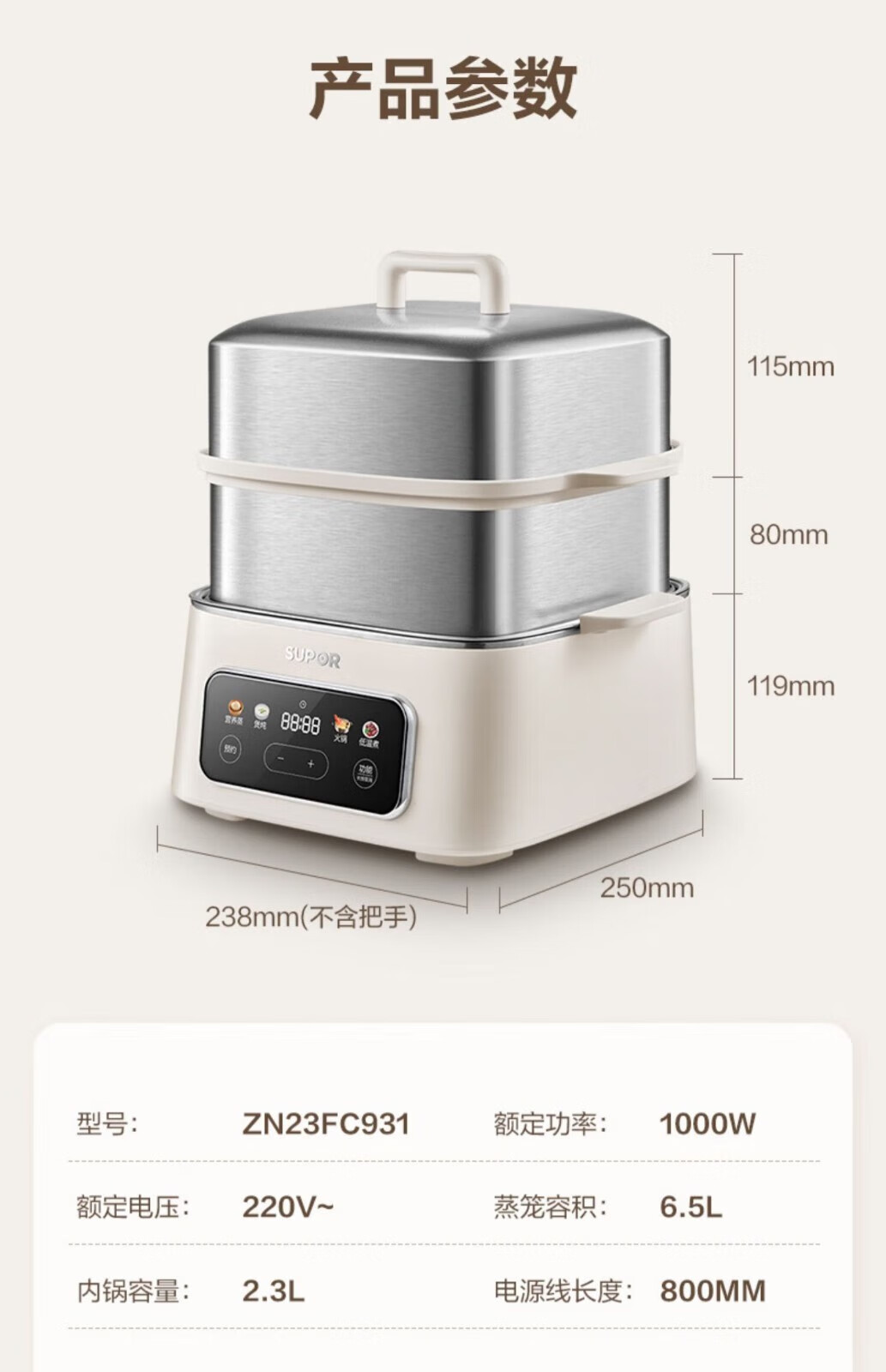 苏泊尔(SUPOR)电蒸锅电煮锅电火锅家用电锅蒸包子锅电热锅三层大容量多用途锅多功能锅ZN23FK30