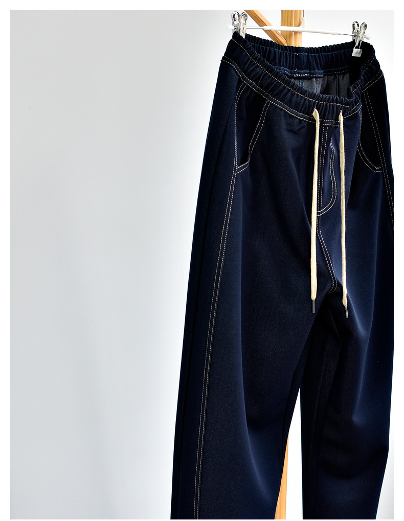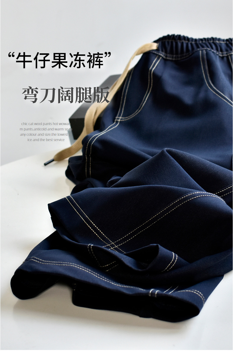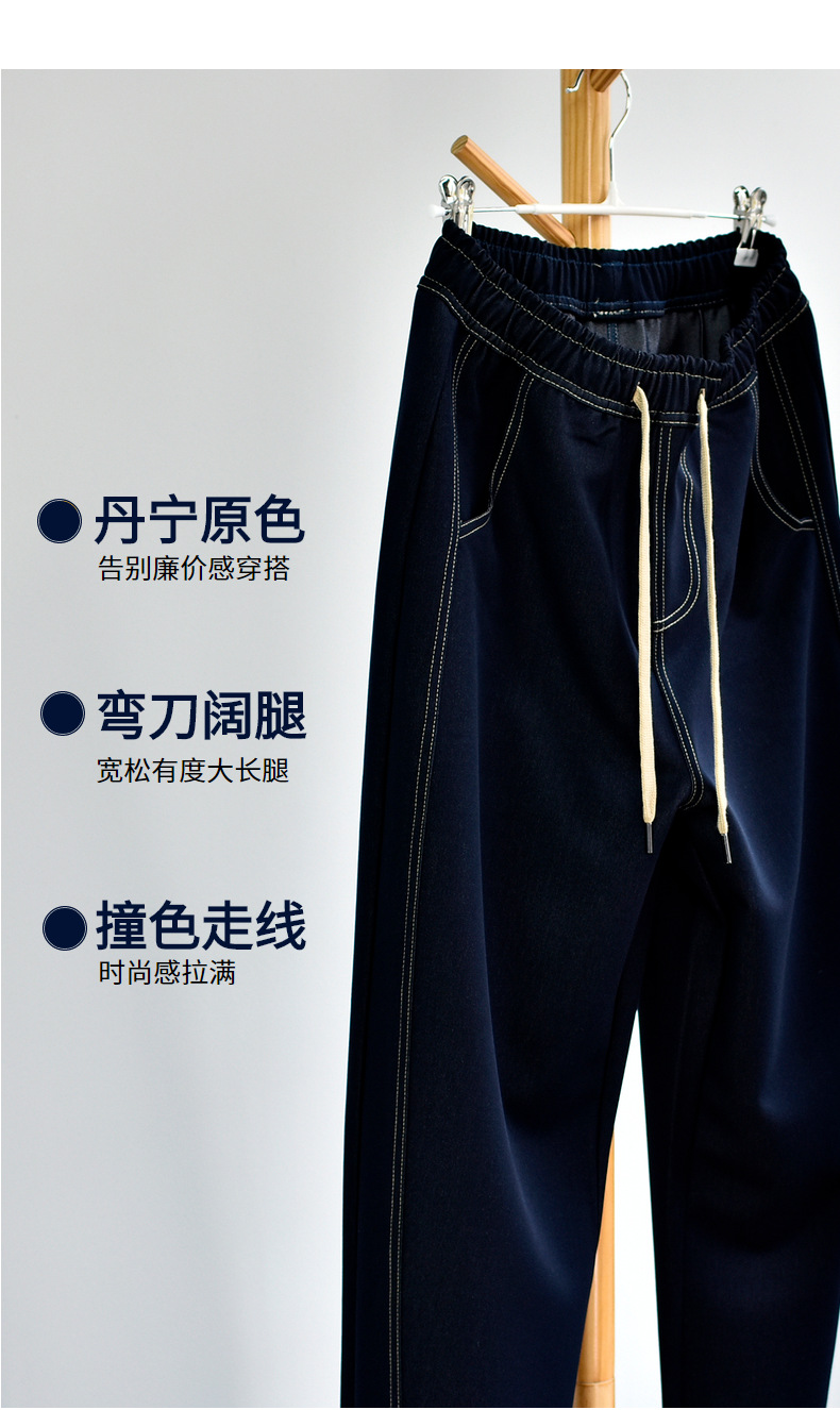 【明线弯刀牛仔】2025春夏新款女装丹宁原色牛仔阔腿直筒休闲裤