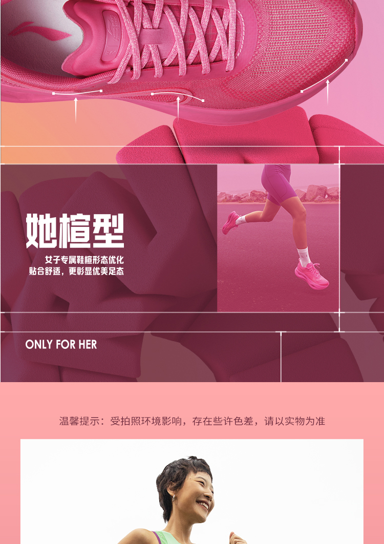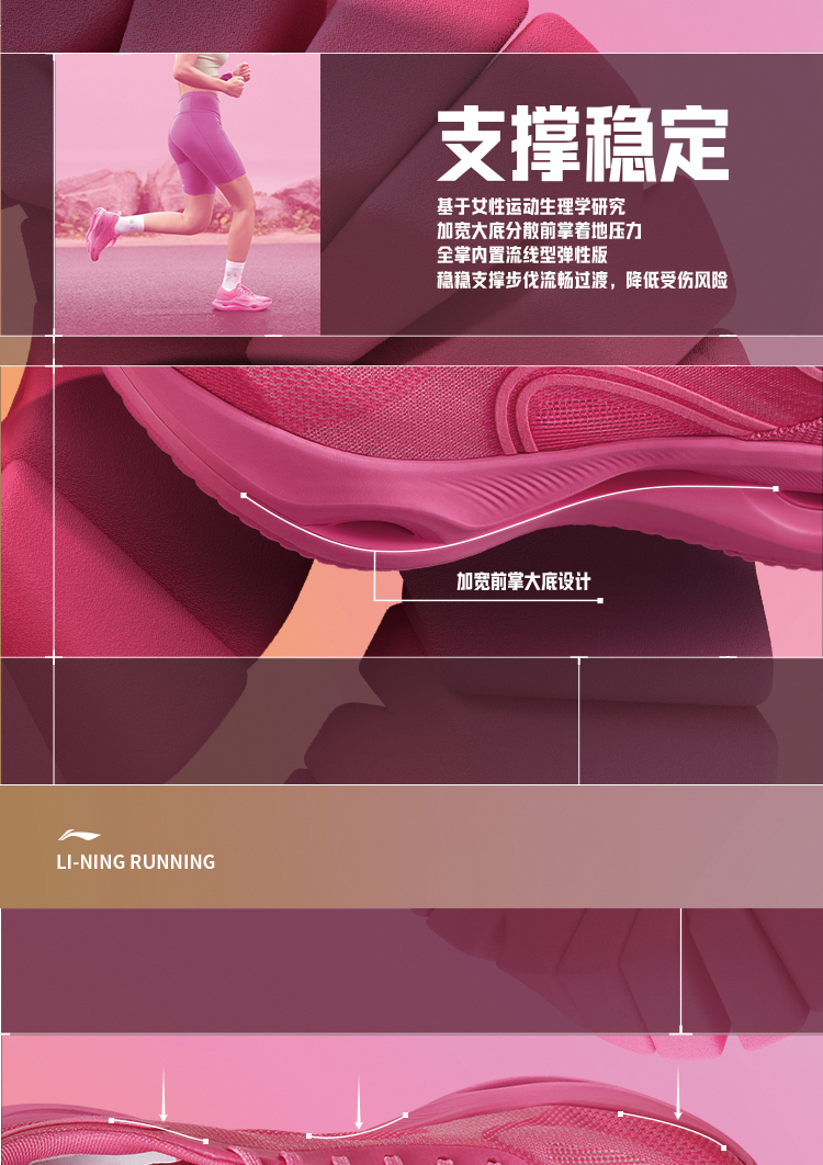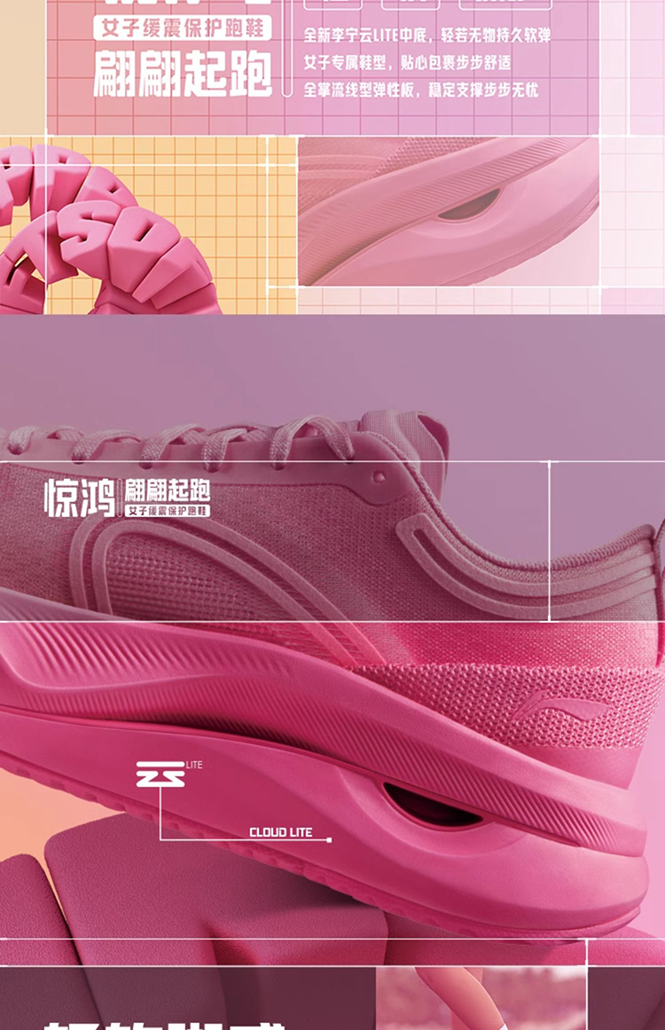 李宁惊鸿 女款 春季新款稳定支撑缓震减震保护运动跑步鞋