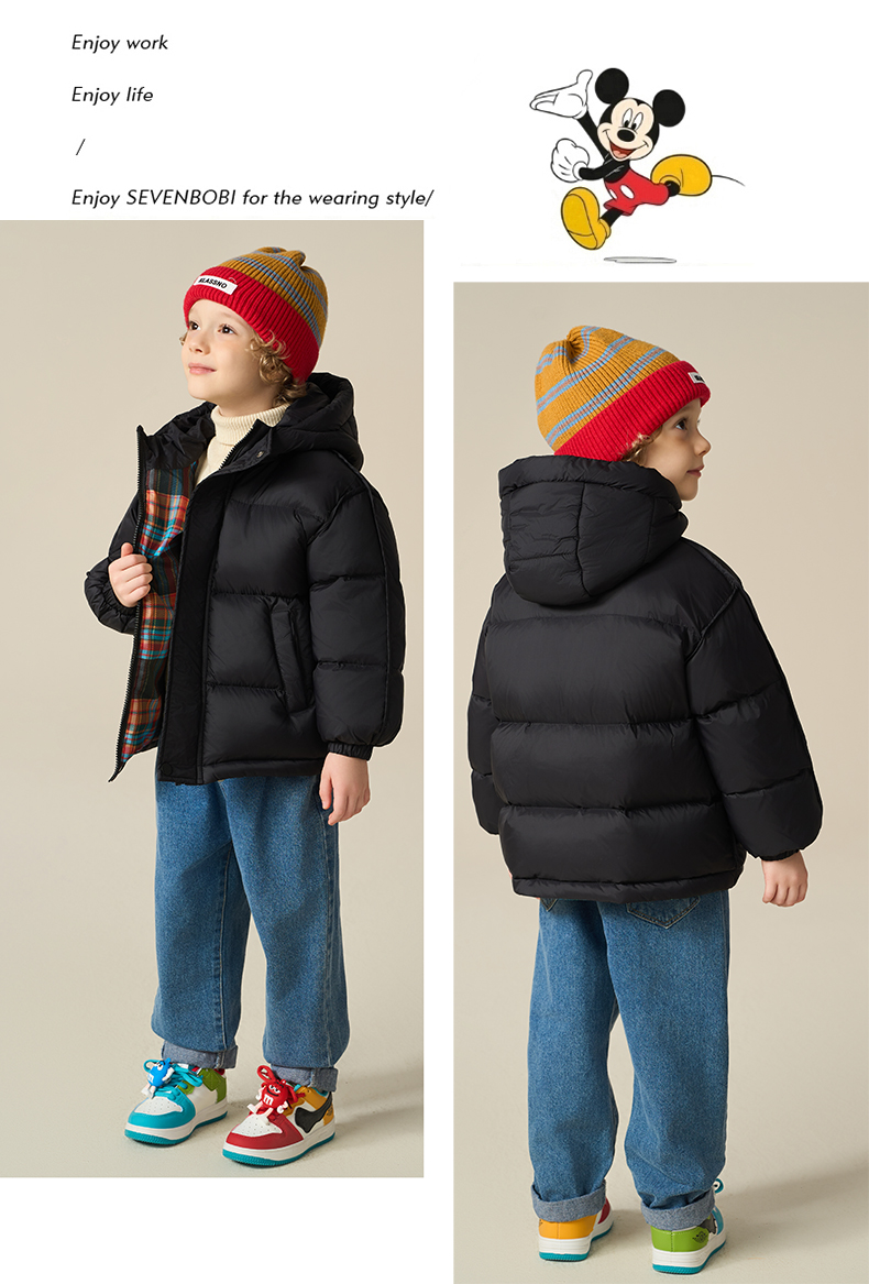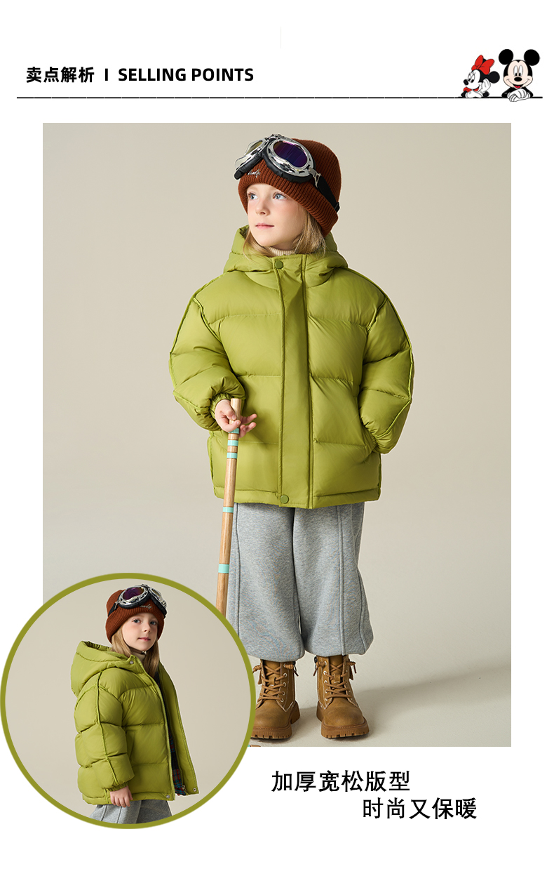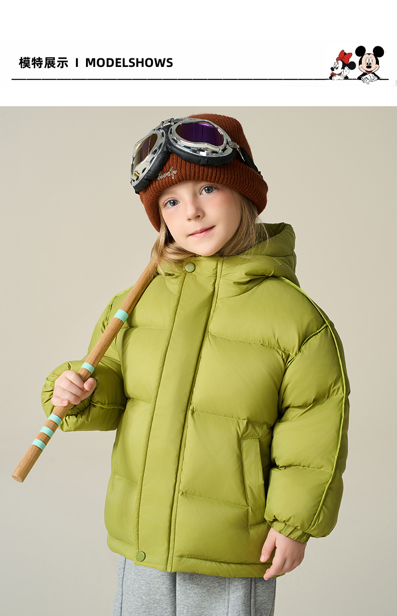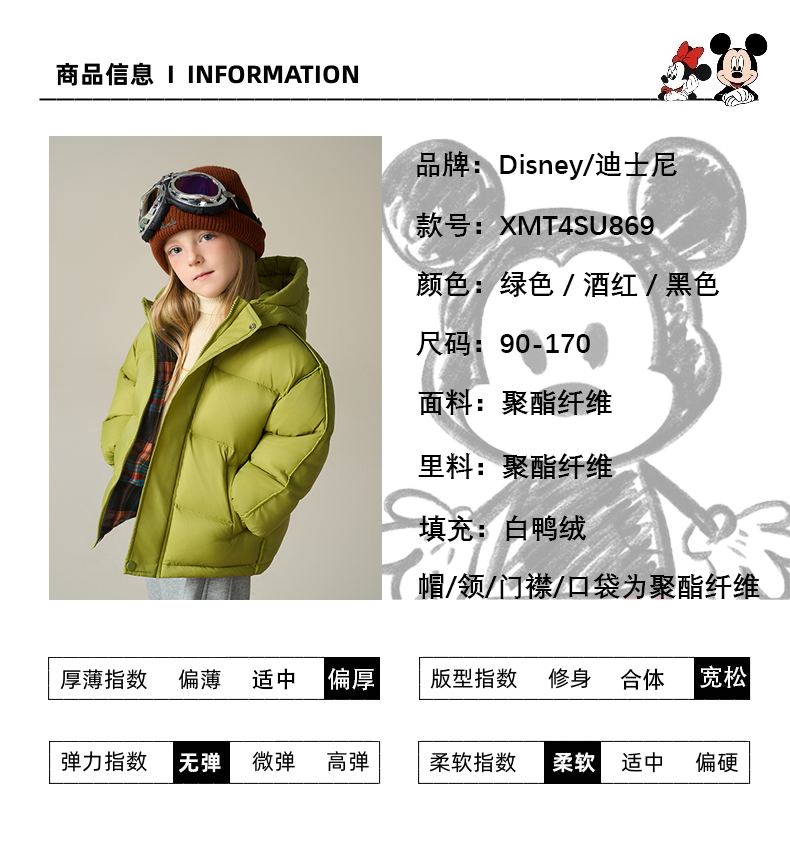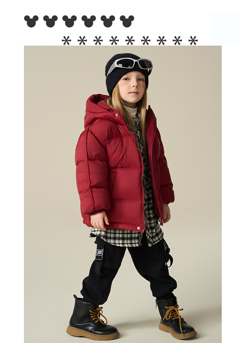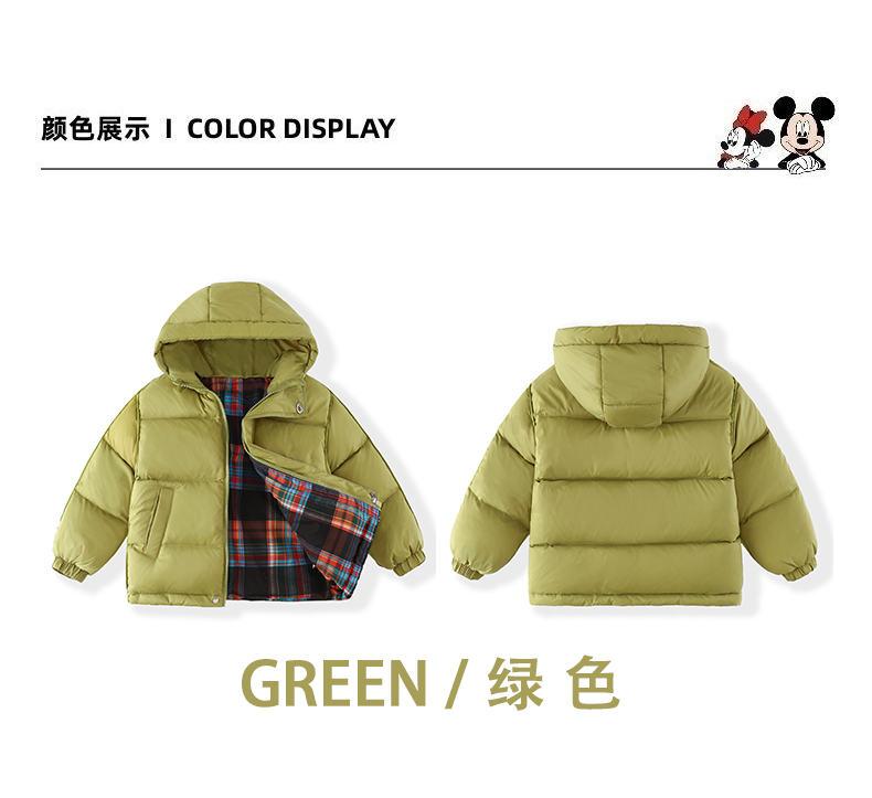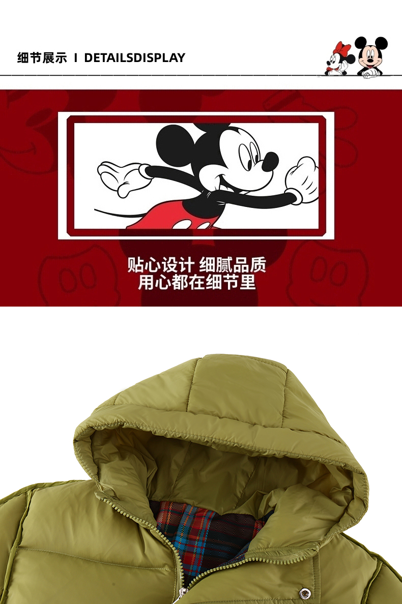 Disney/迪士尼儿童羽绒服连帽冬穿加厚格子羽绒服外套XMT4SU872