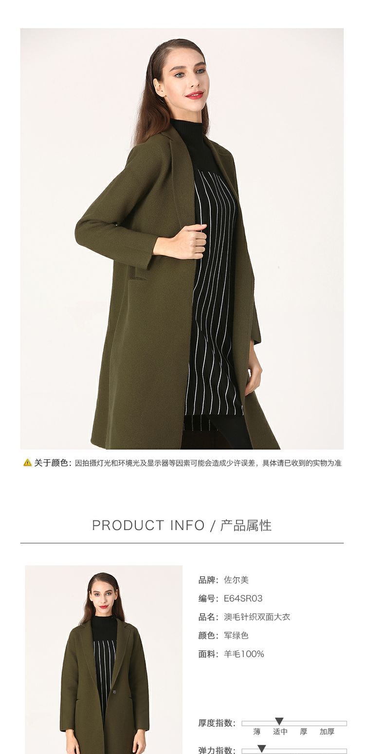 佐尔美冬季女装纯色百搭针织羊毛呢子大衣外套双面呢E64SR03