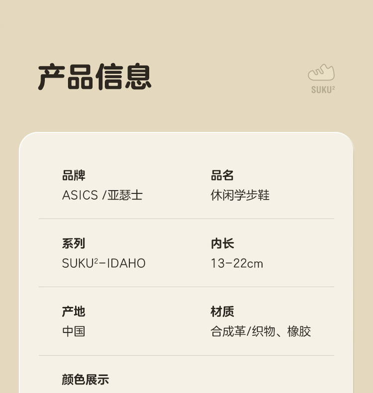 温馨提示:亚瑟士童鞋需对照尺码表鞋子内长拍相应码数