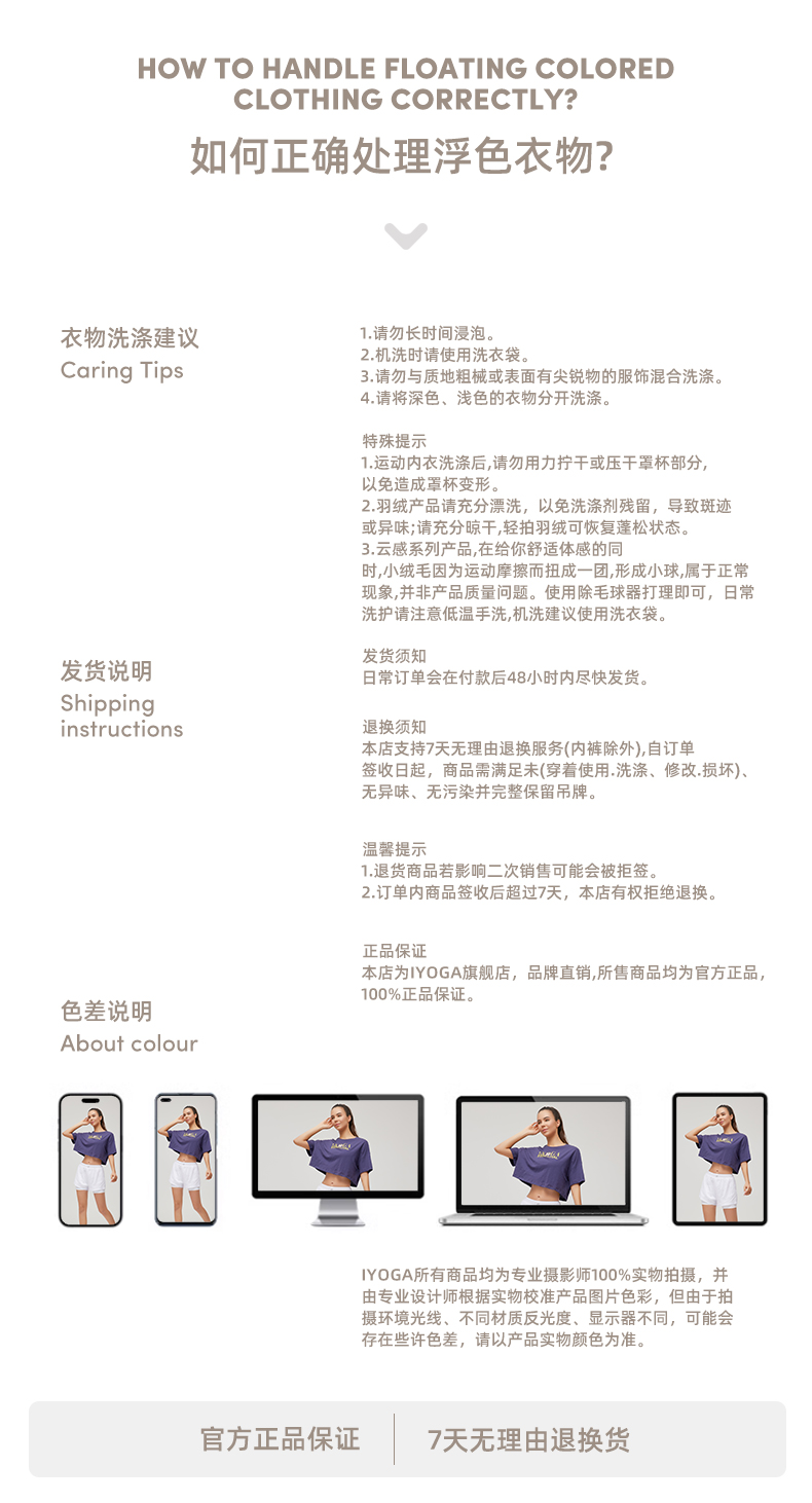 IYOGA品牌的产生源于对瑜伽以及各种运动的热爱, 并努力把瑜伽运动的理念,融入于服装的每一个细节与每一个工艺之中。我们的设计结合了瑜伽运动,休闲时尚,健身跑步等因素,让服装对运动起到良好的保护。