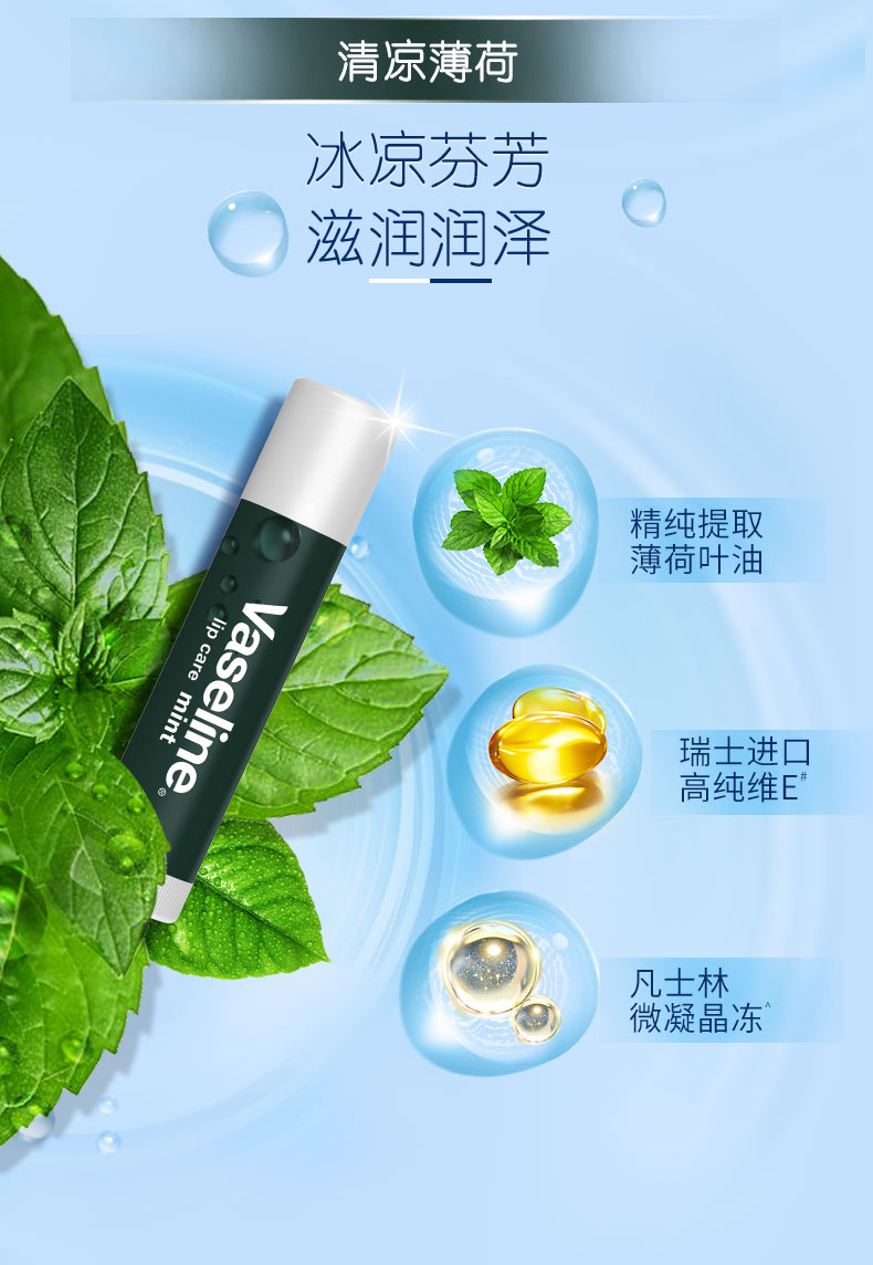 【一般贸易】美国凡士林Vaseline修沪型润唇膏(薄荷味)3.5g