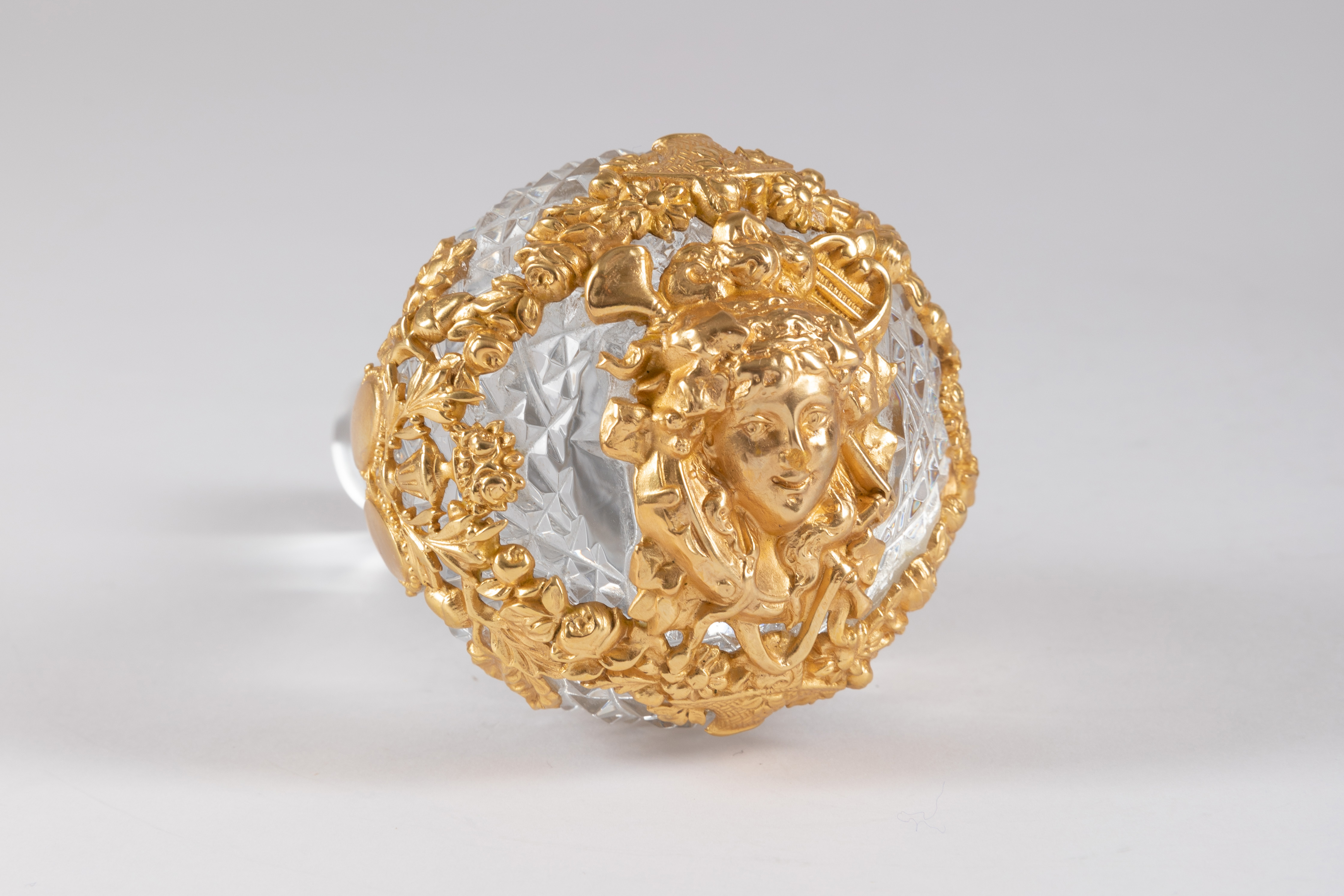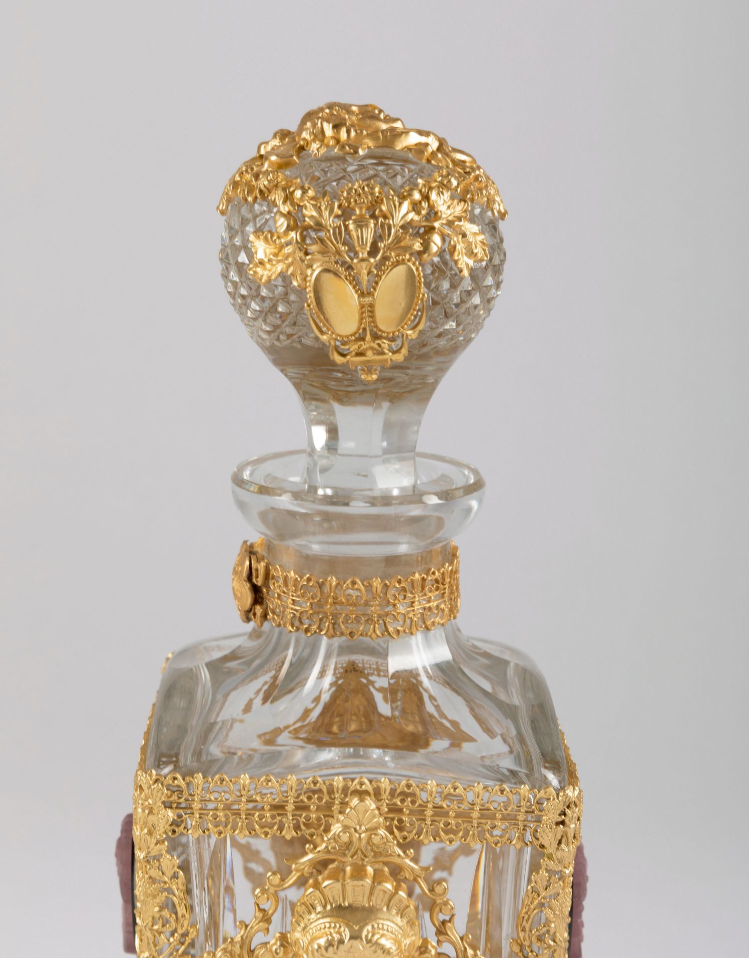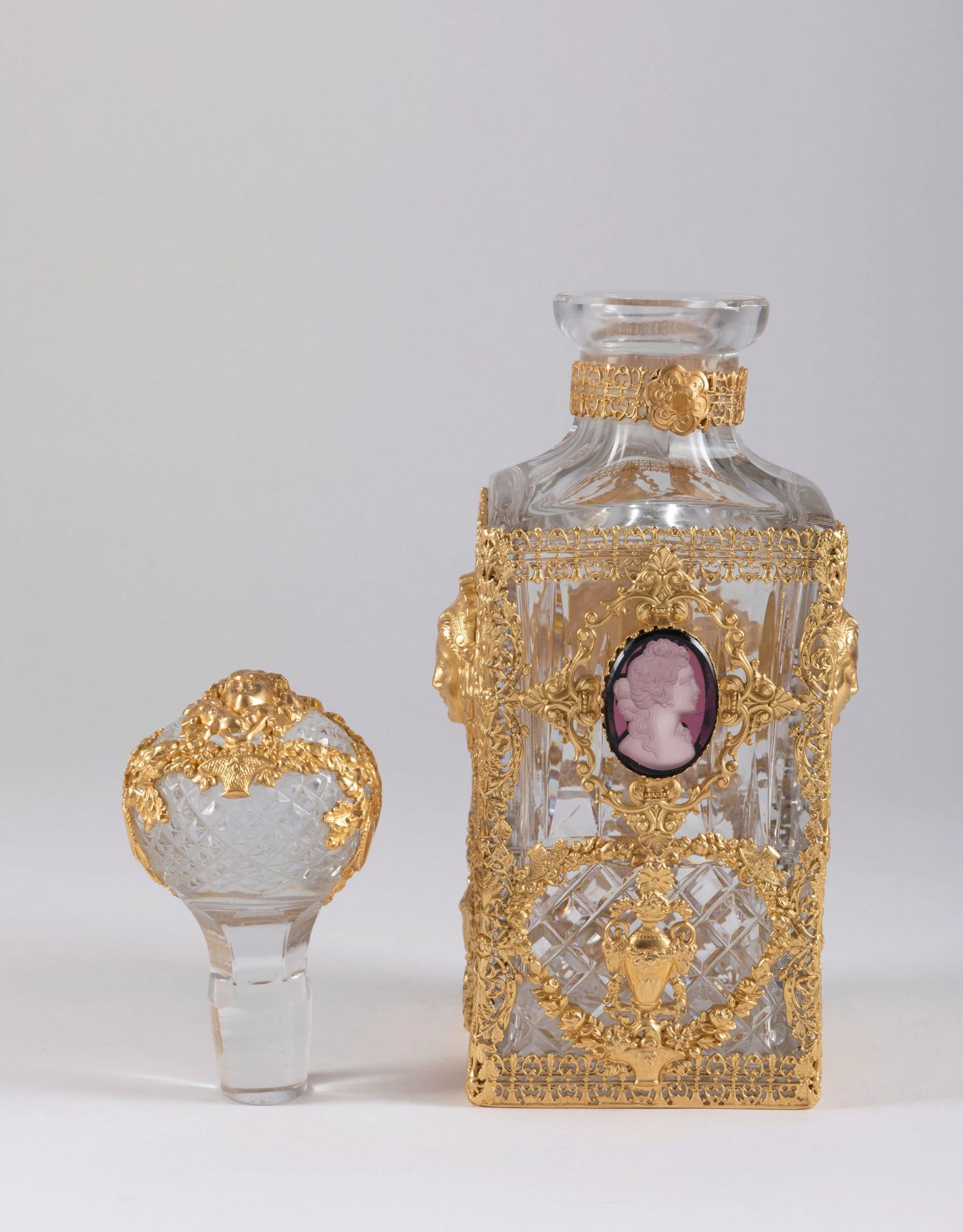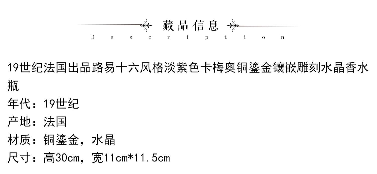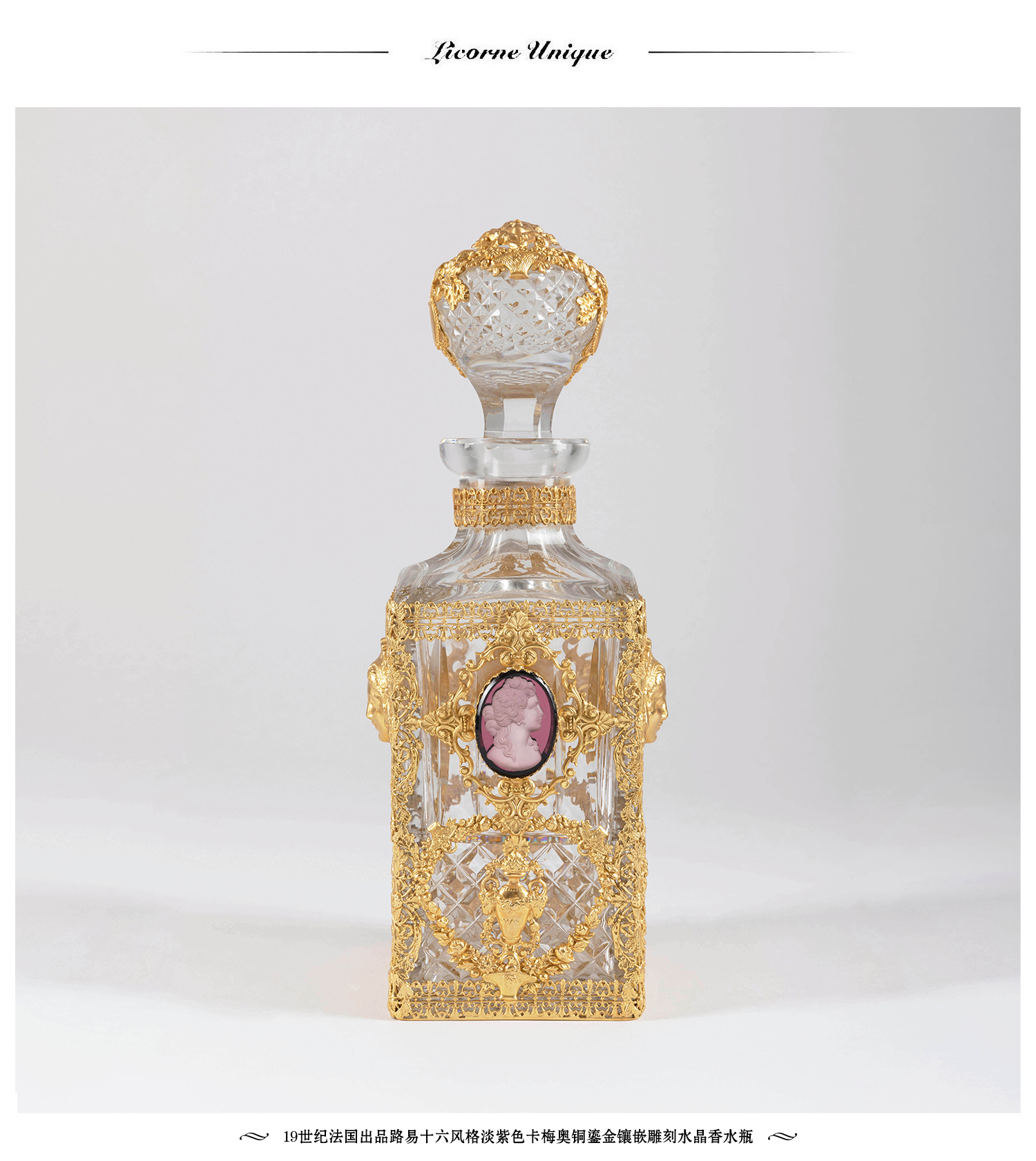 独角鹿西洋古董路易十六风淡紫色卡梅奥铜鎏金镶嵌雕刻水晶香水瓶
