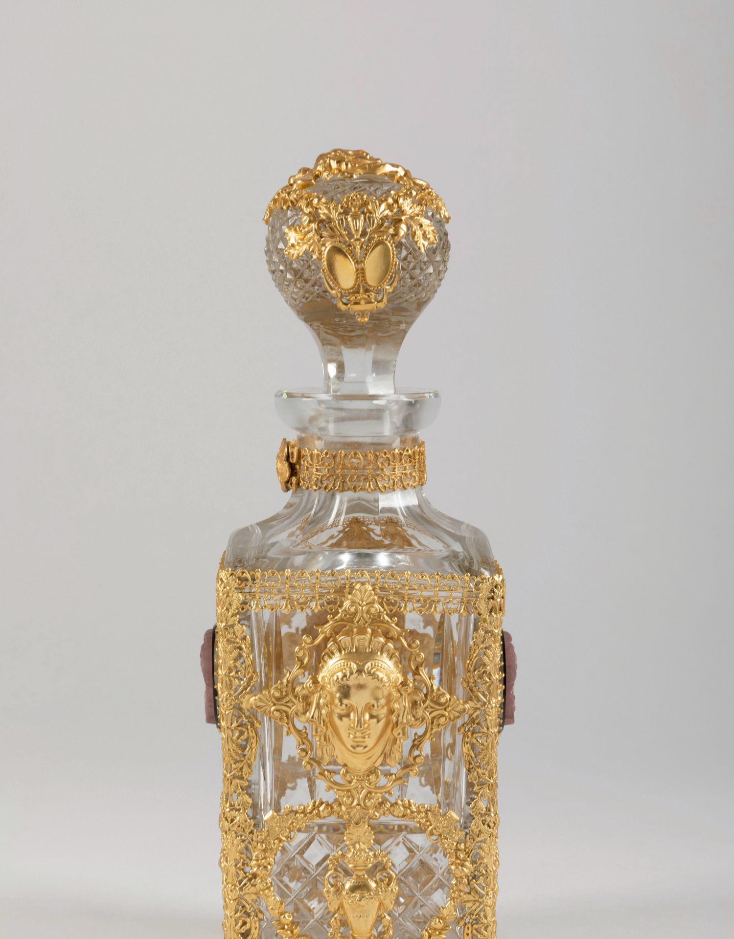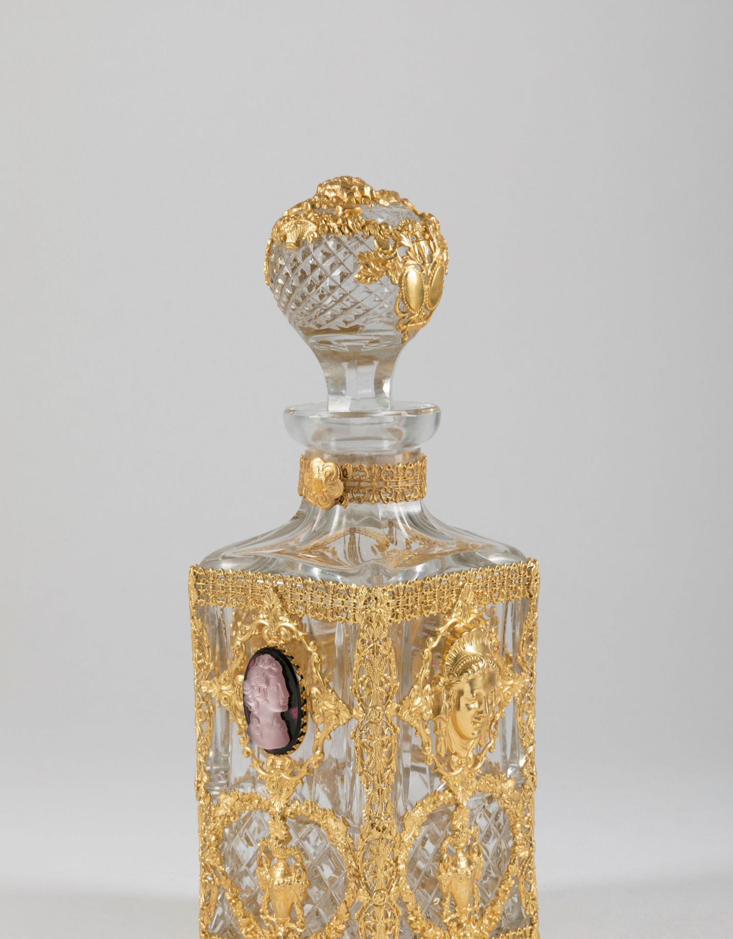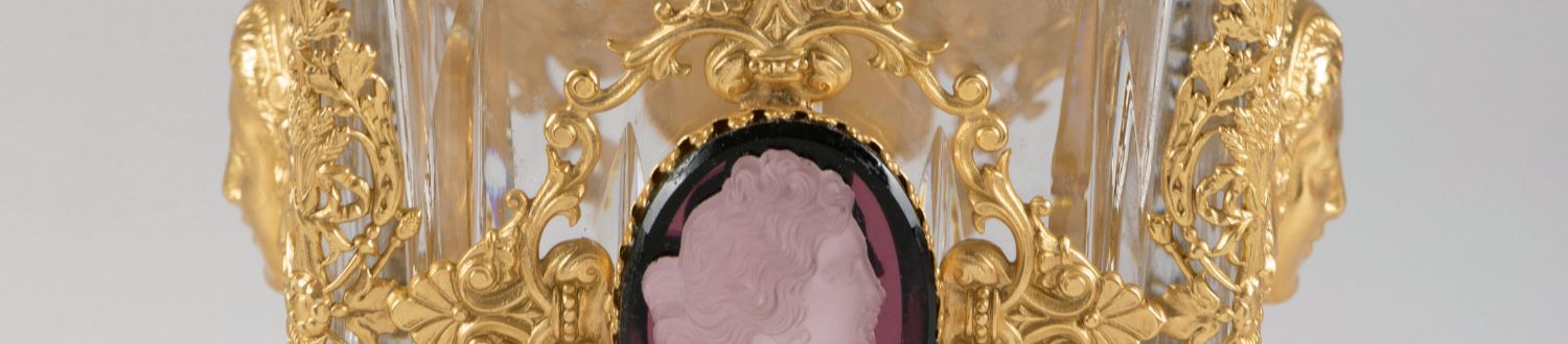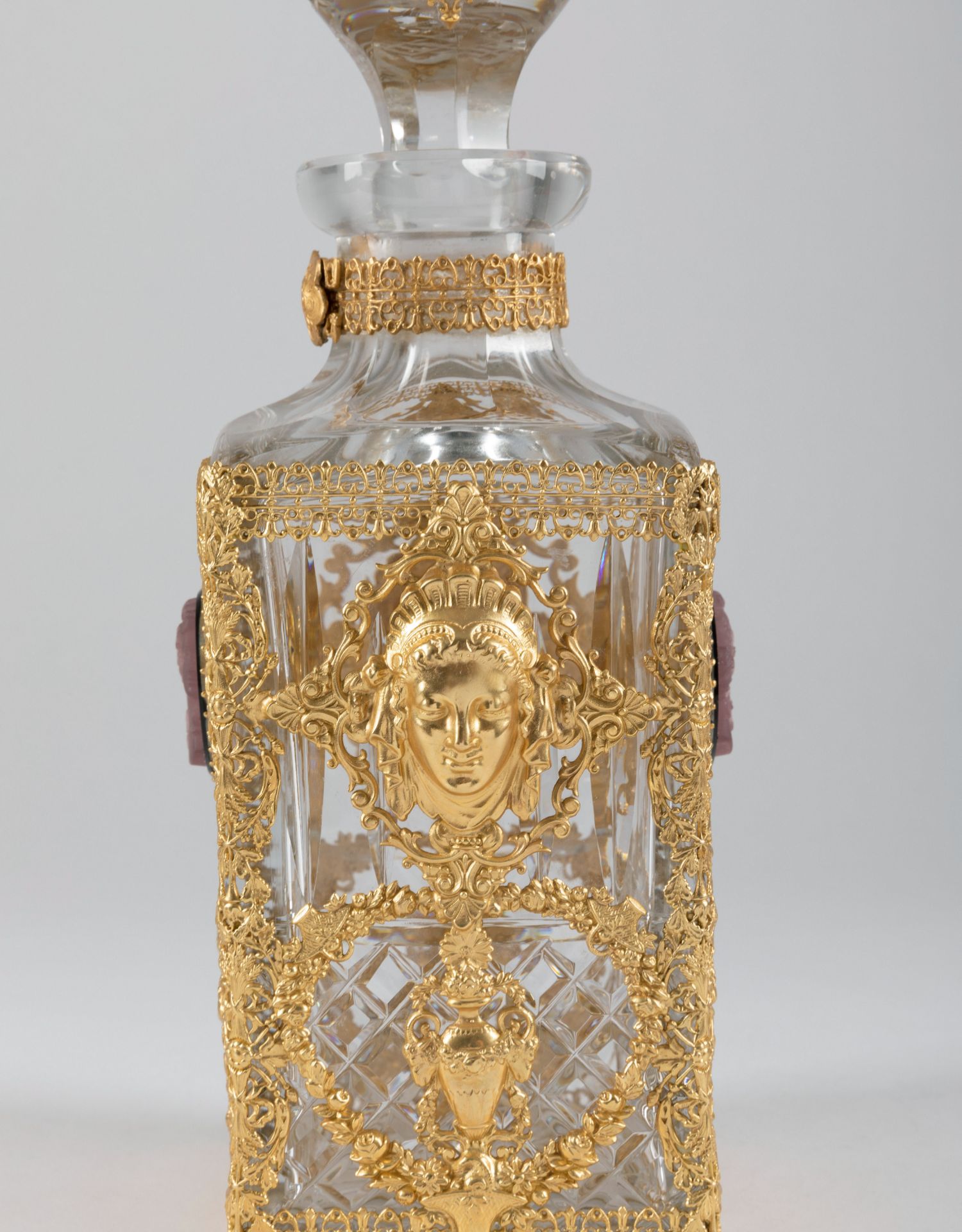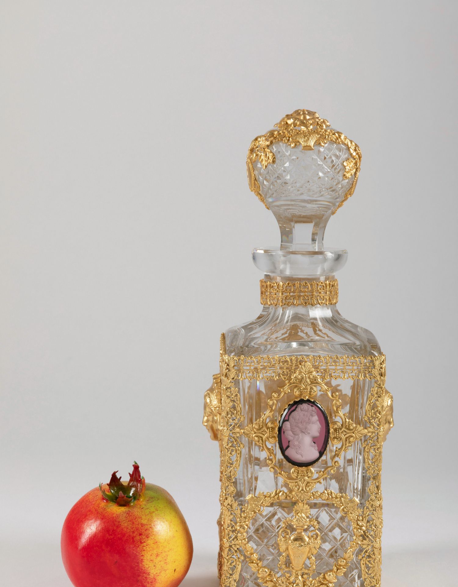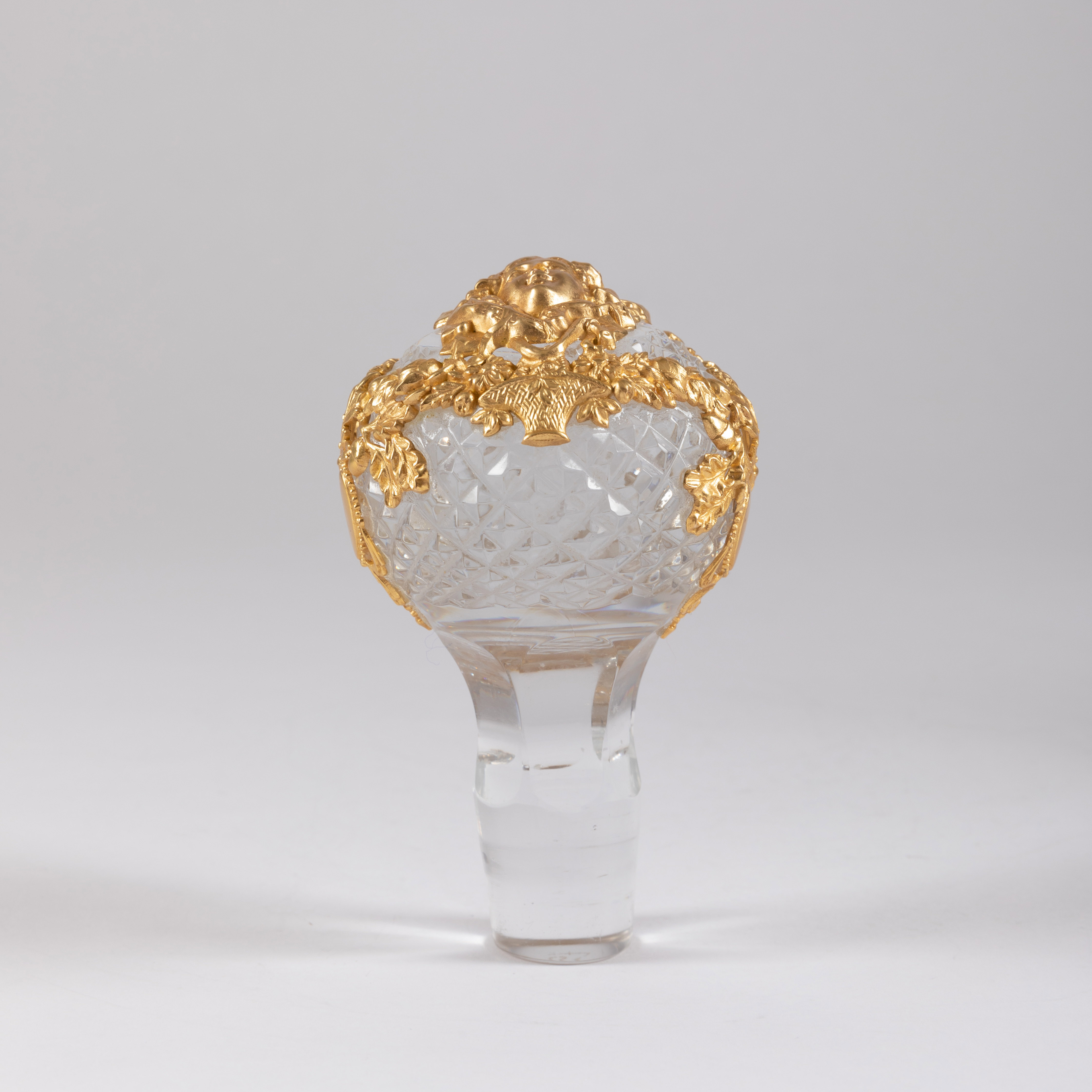 独角鹿西洋古董路易十六风淡紫色卡梅奥铜鎏金镶嵌雕刻水晶香水瓶