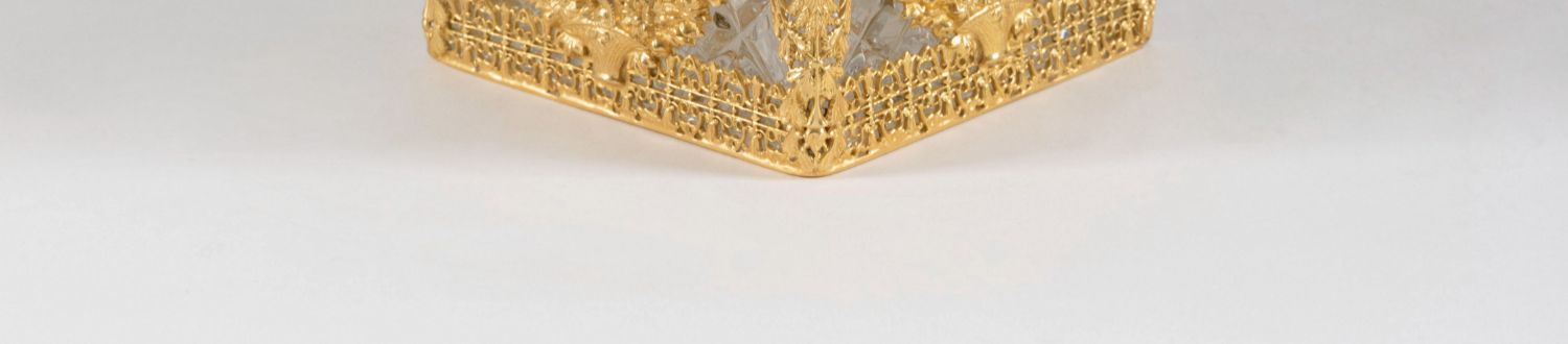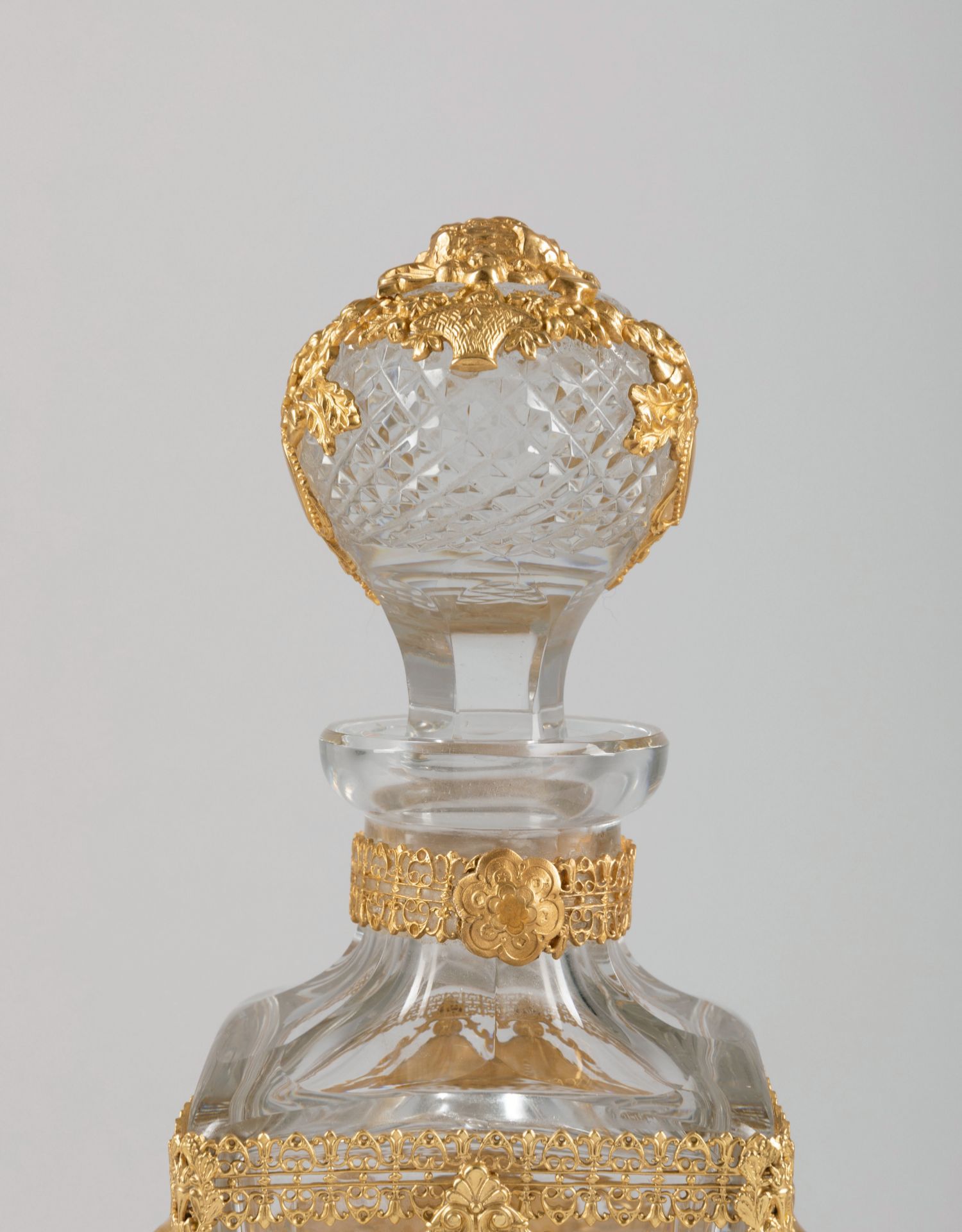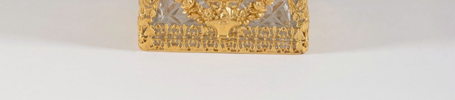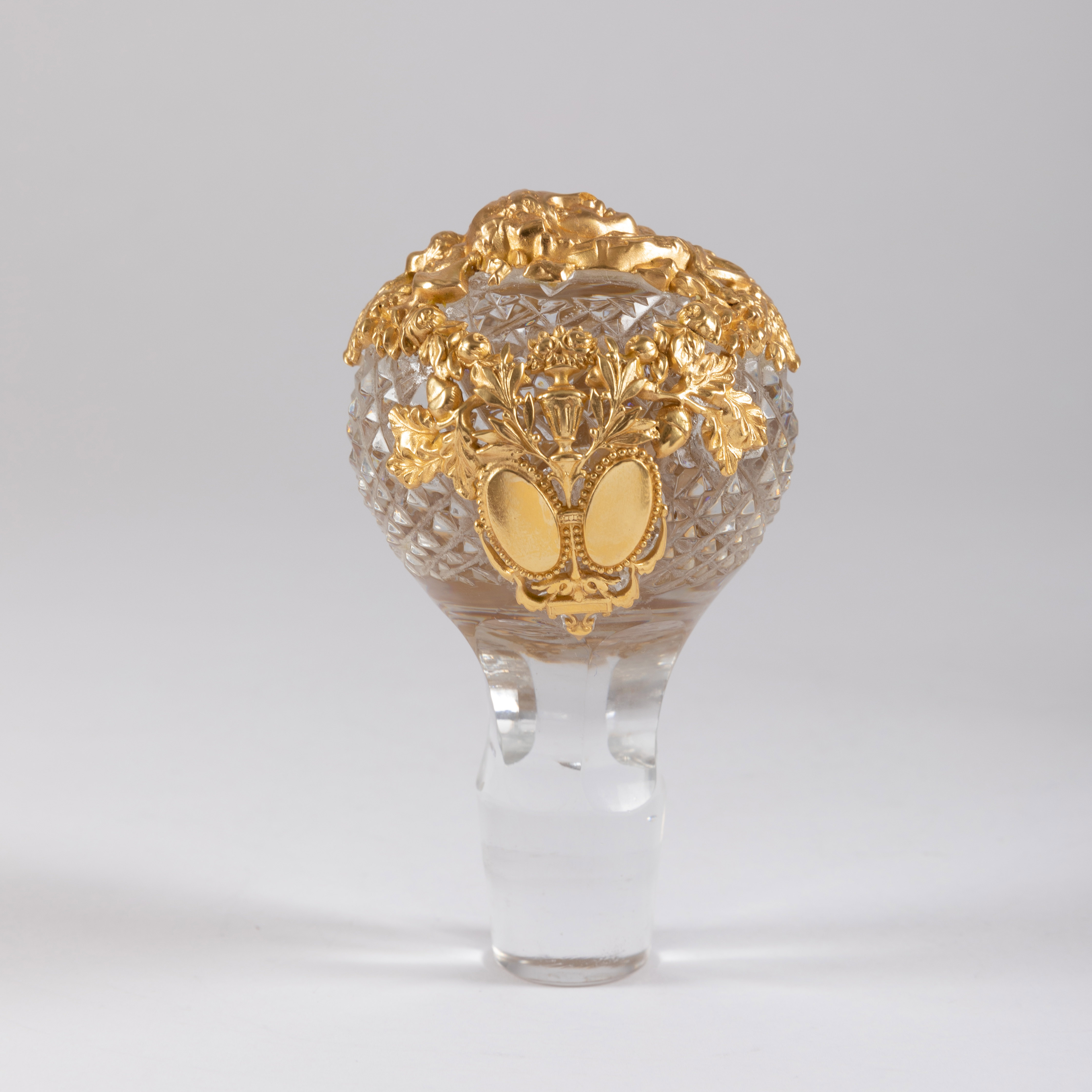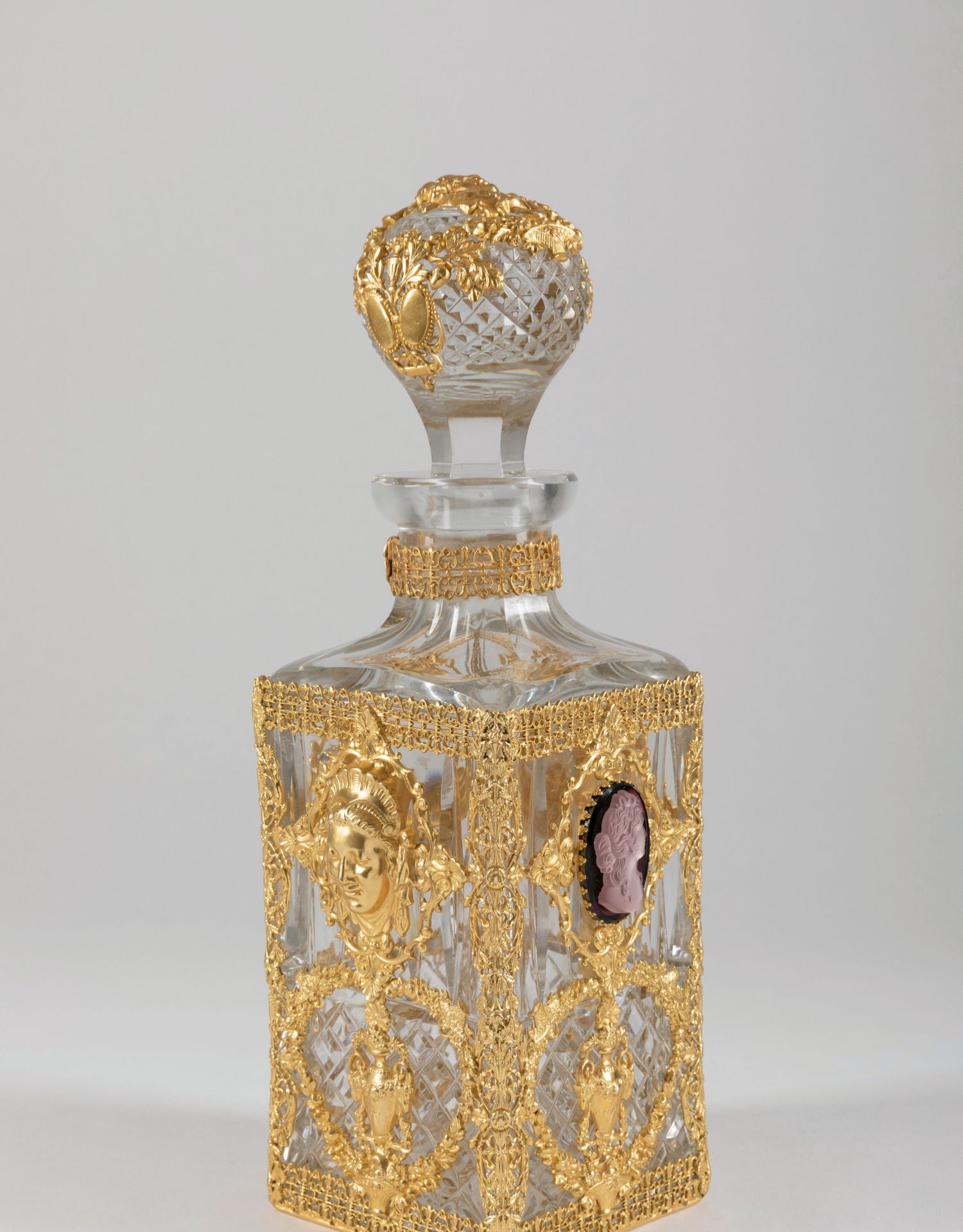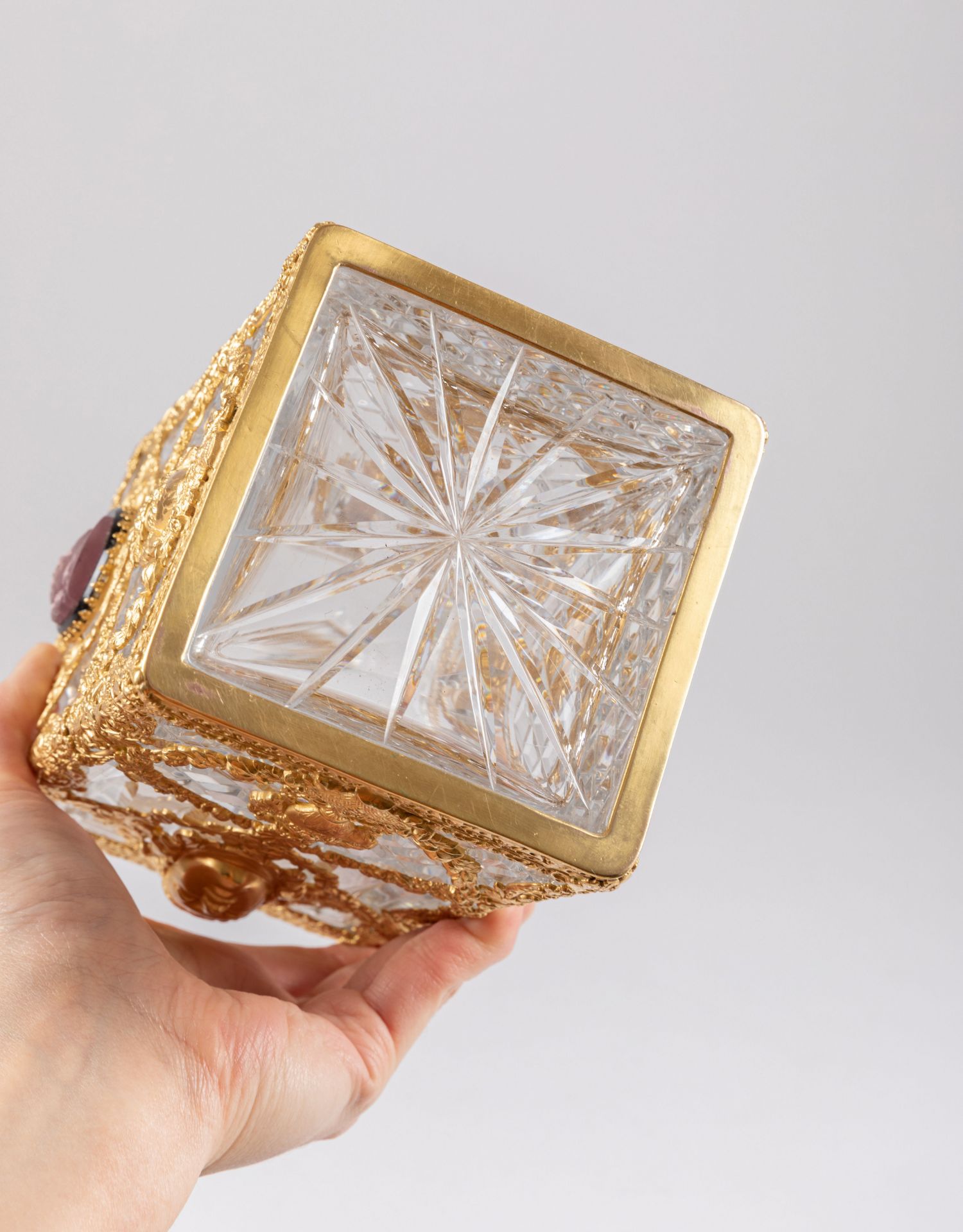独角鹿西洋古董路易十六风淡紫色卡梅奥铜鎏金镶嵌雕刻水晶香水瓶