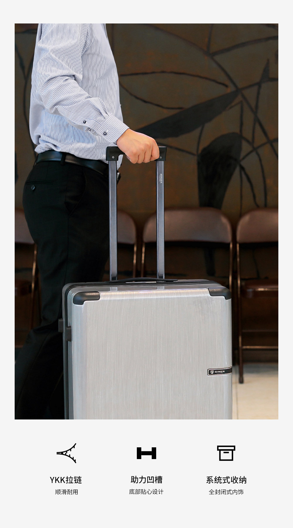 GF轻奢亮面拉丝纹 坚韧抗压旅行箱BY-9358L