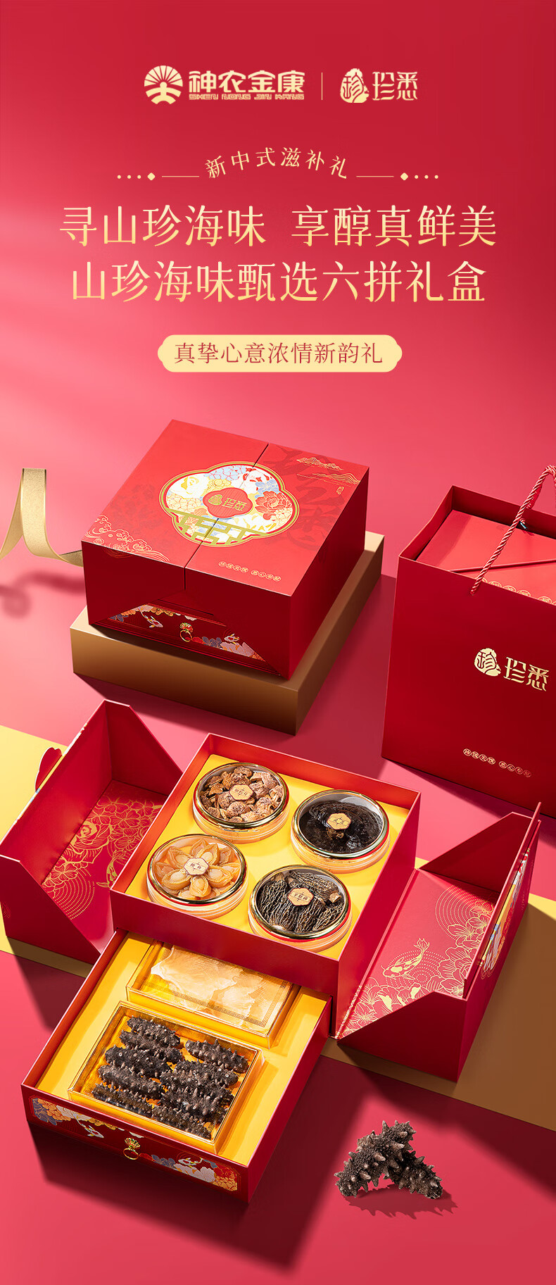 【中秋礼盒】神农金康 【冻干海参11只】鲍鱼 羊肚菌 鱼翅 灵芝 姬松茸山珍海味礼盒233g 新中式滋补礼 原生态真滋补 喝护家人健康