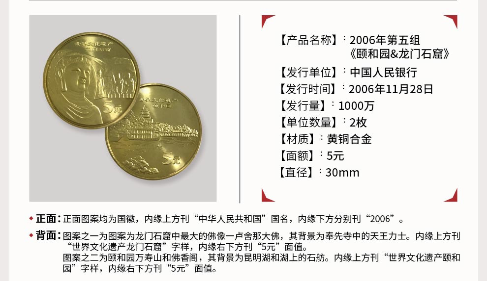 【藏品介绍】 直径均为30毫米 面值均5元