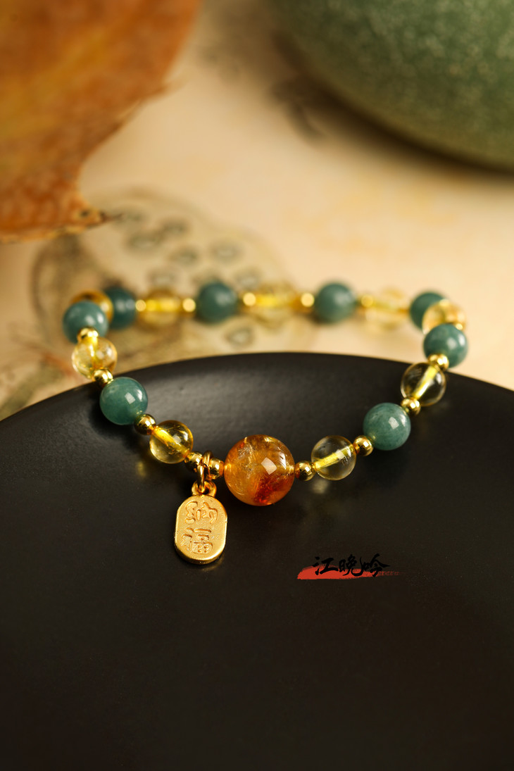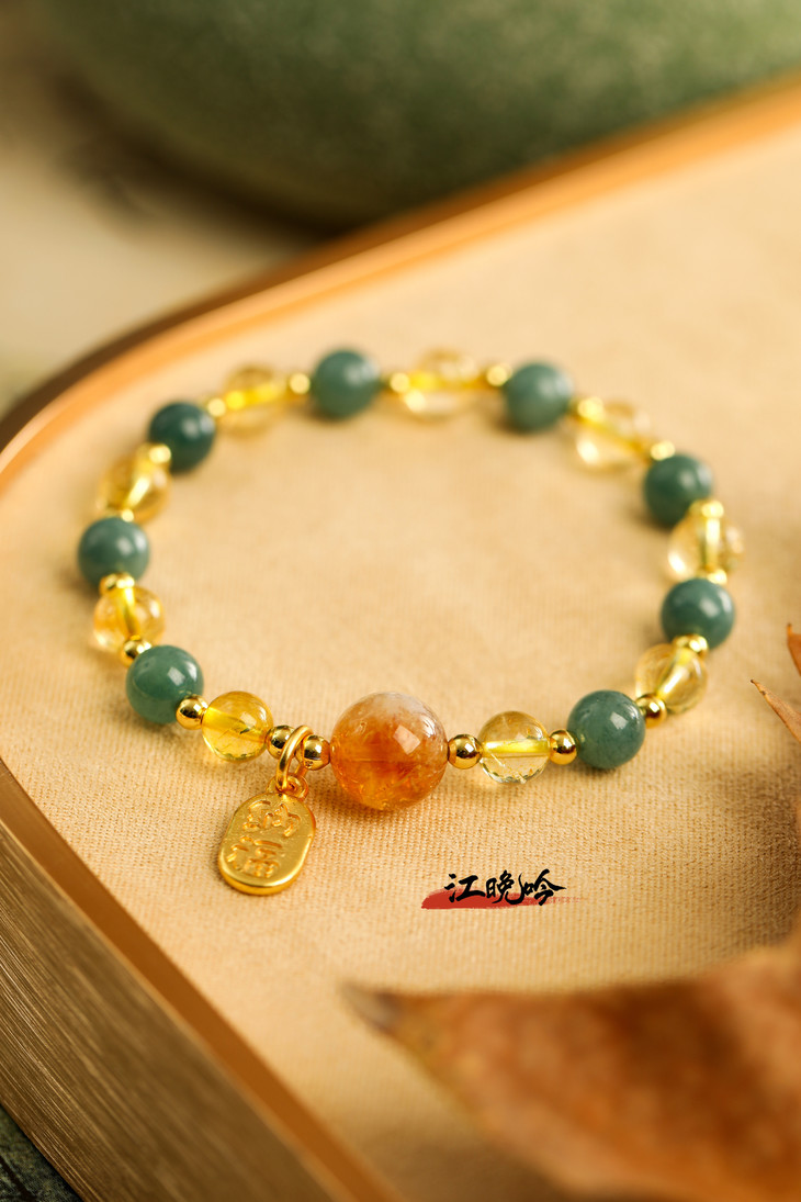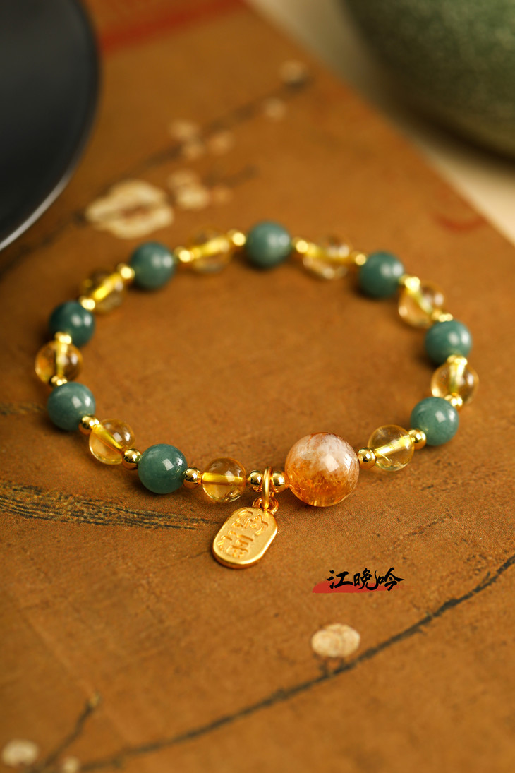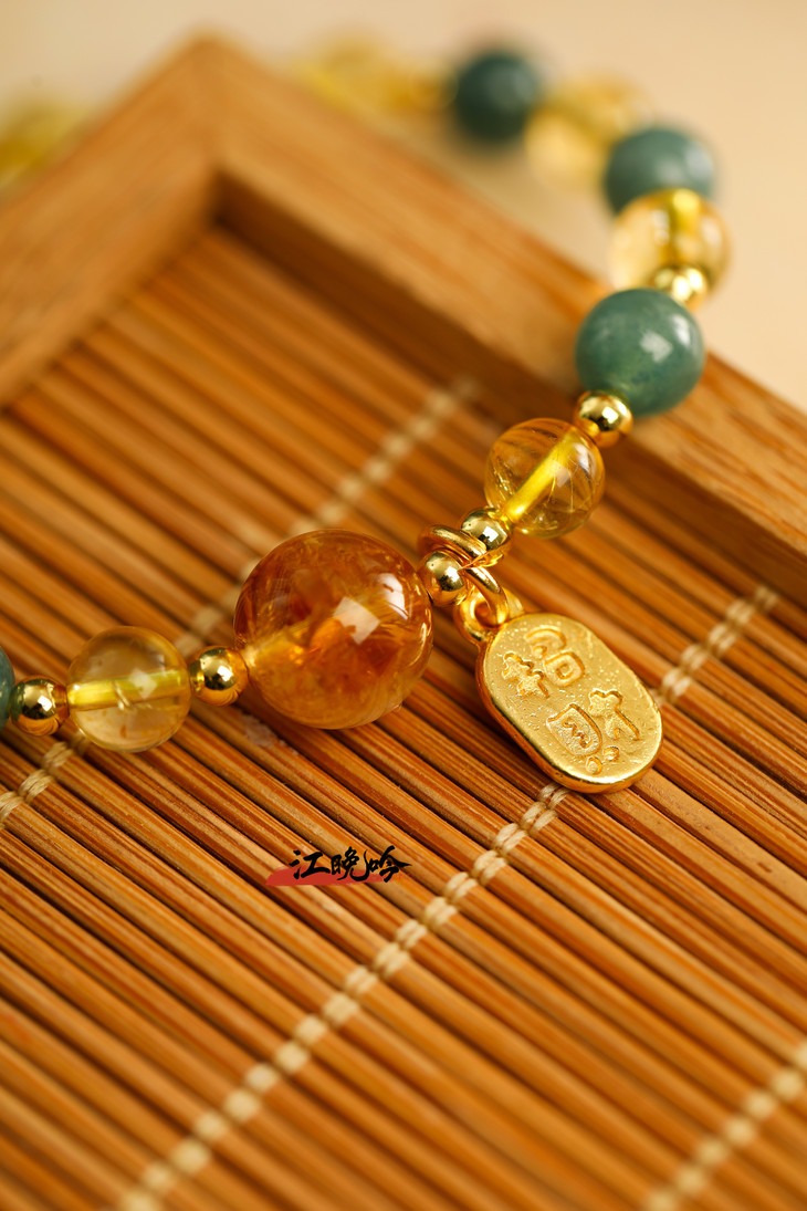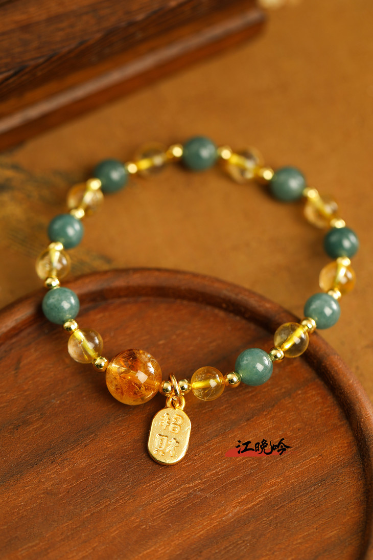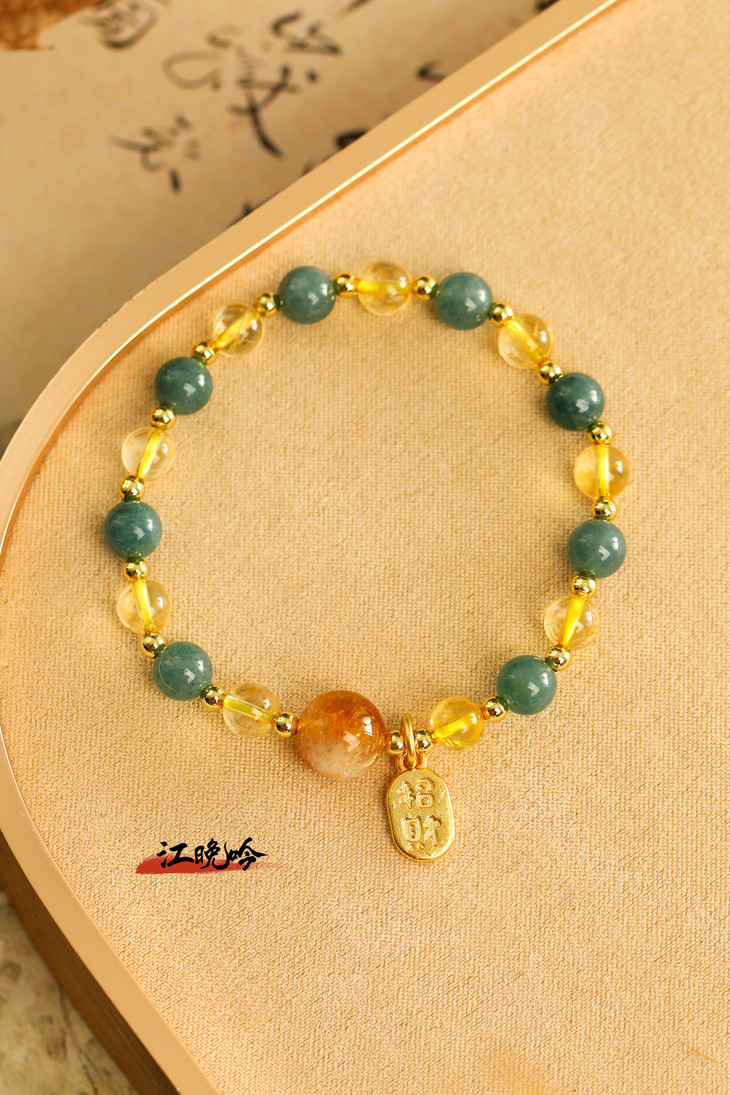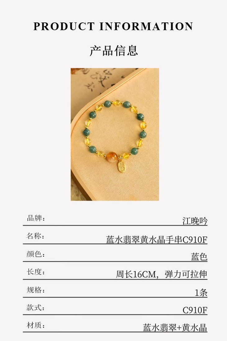 【江晚吟蓝水翡翠黄水晶手串】