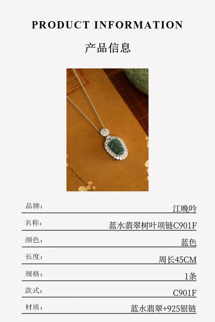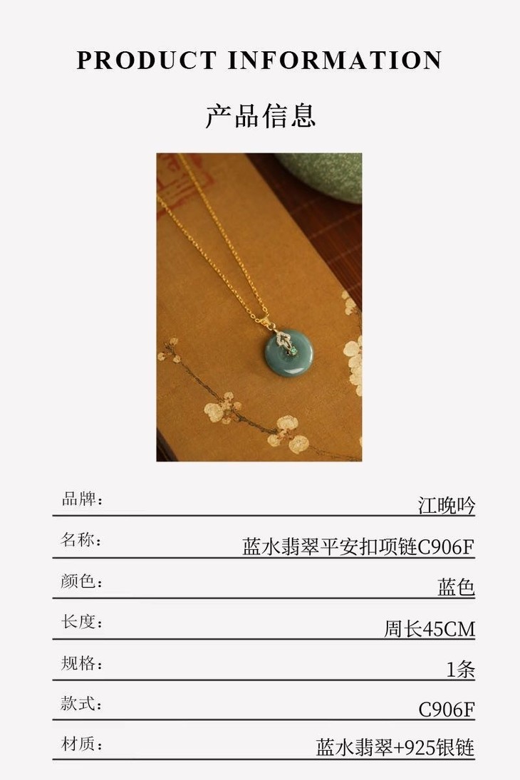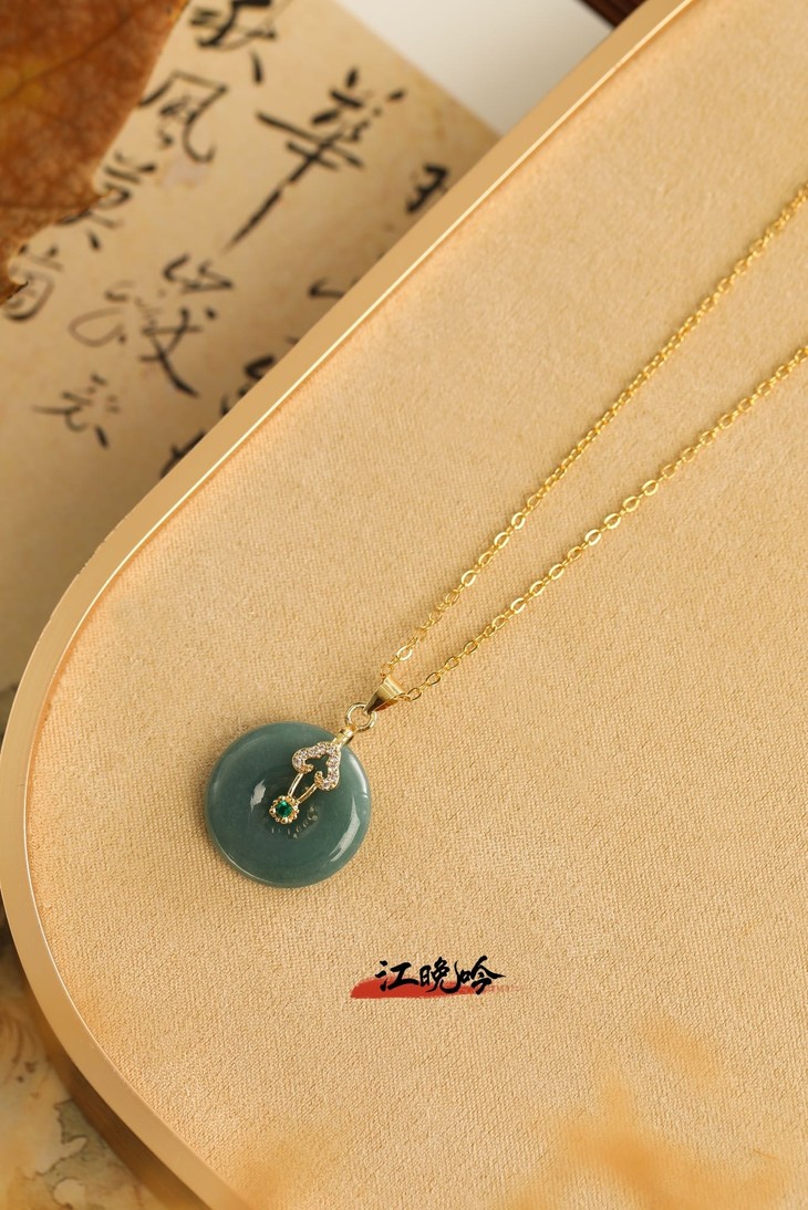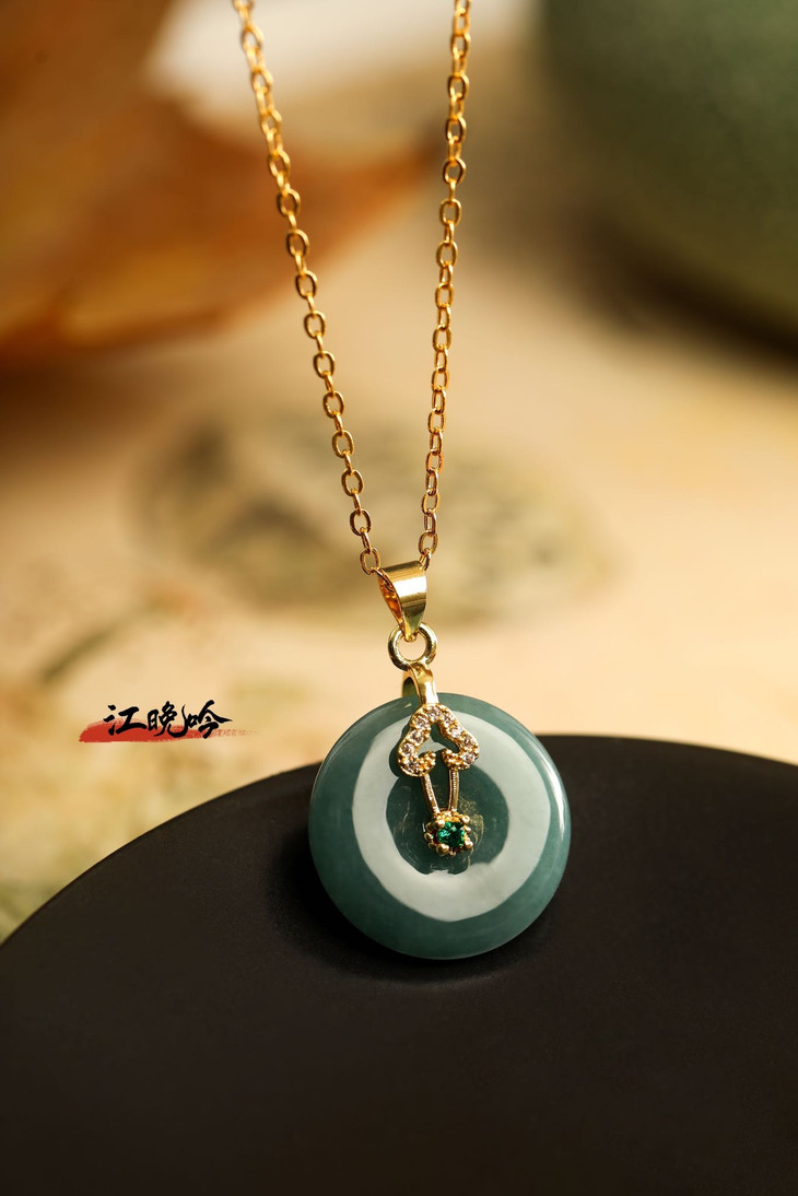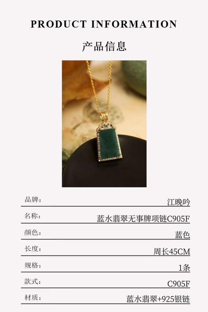 【江晚吟蓝水翡翠无事牌项链】