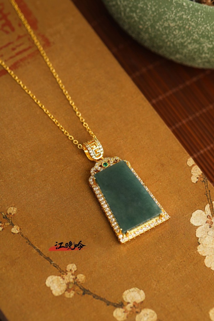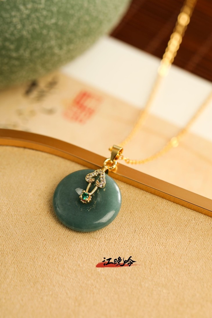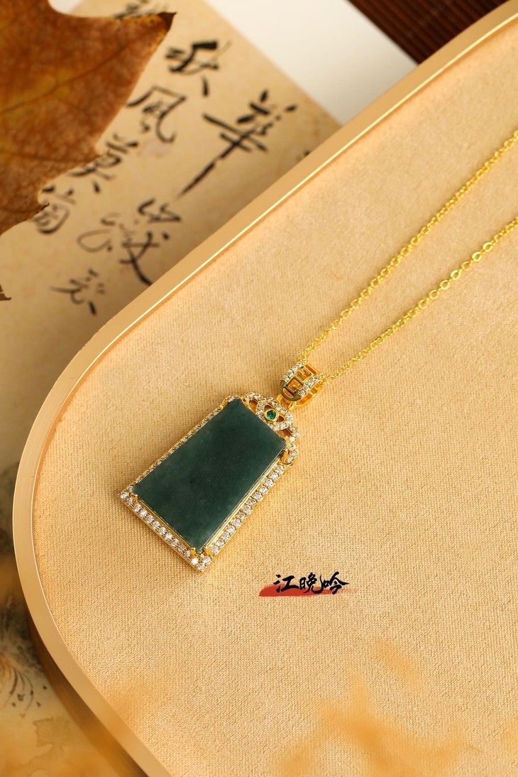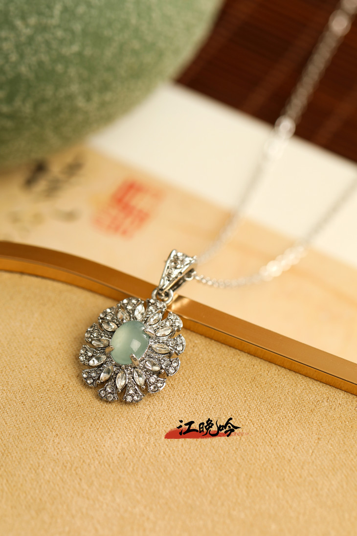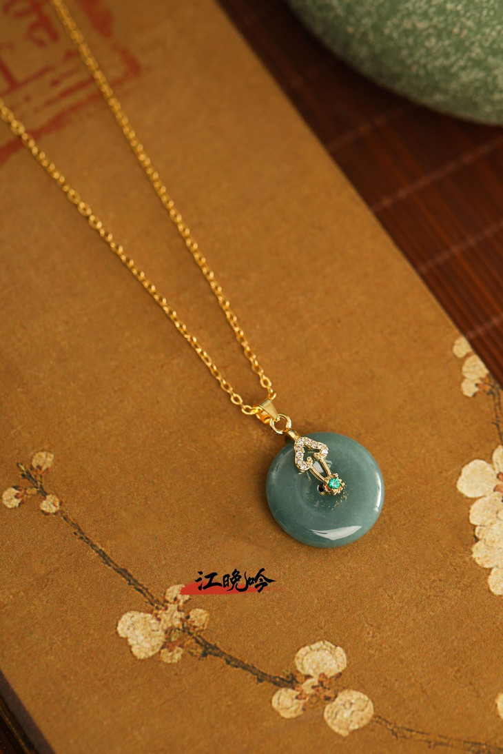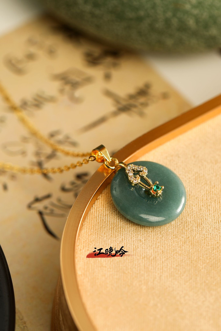 【江晚吟蓝水翡翠无事牌项链】