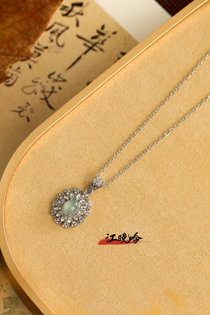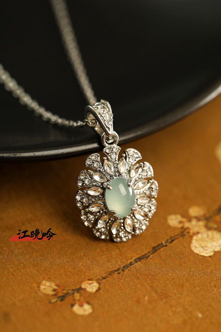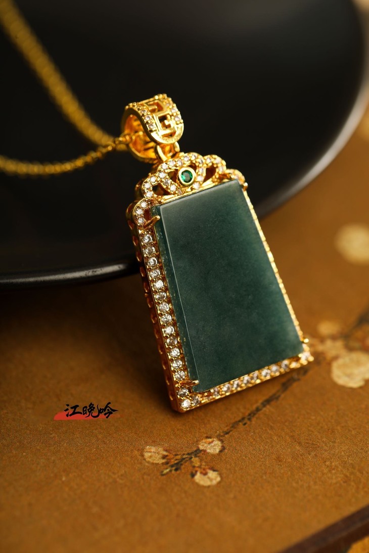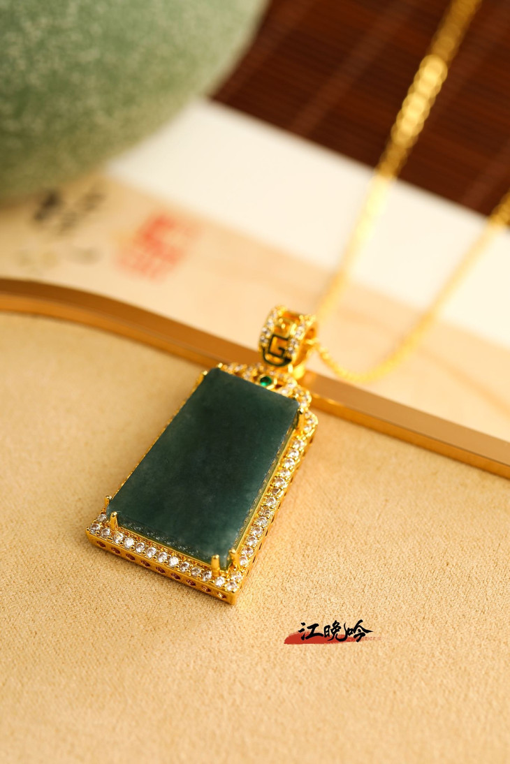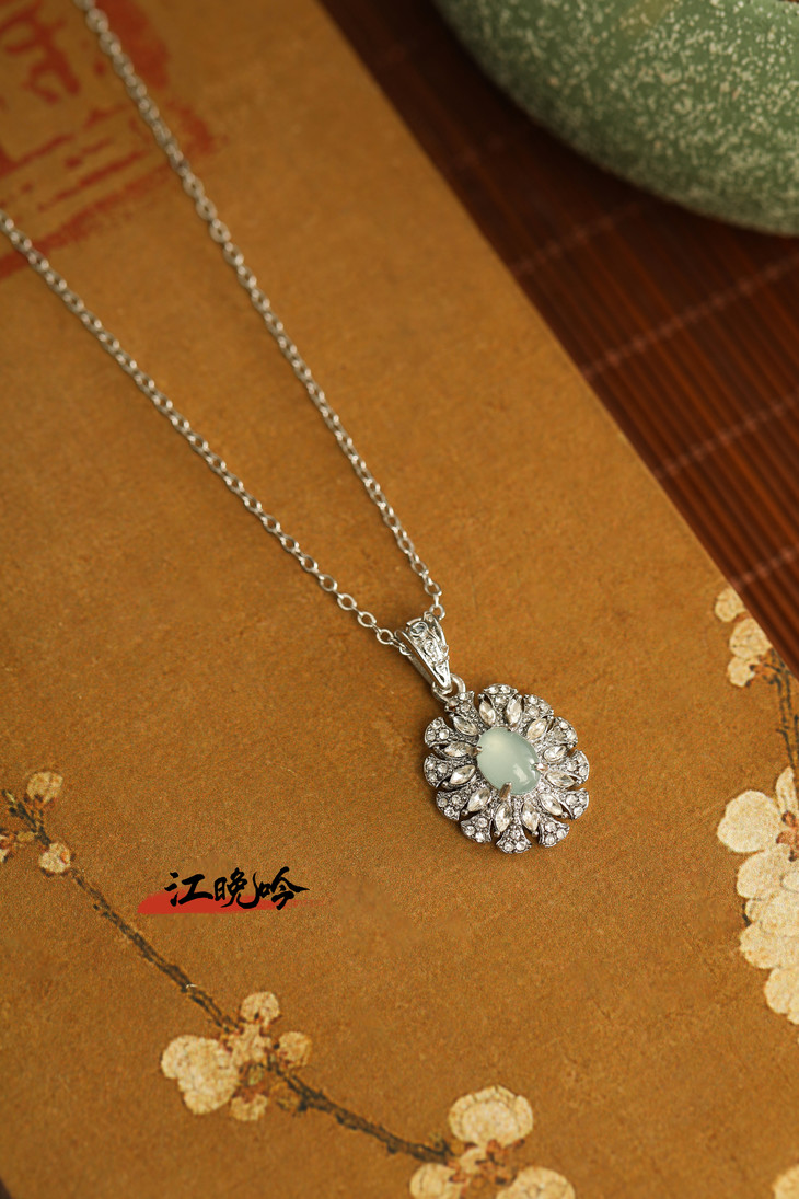 【江晚吟蓝水翡翠无事牌项链】