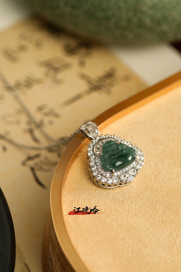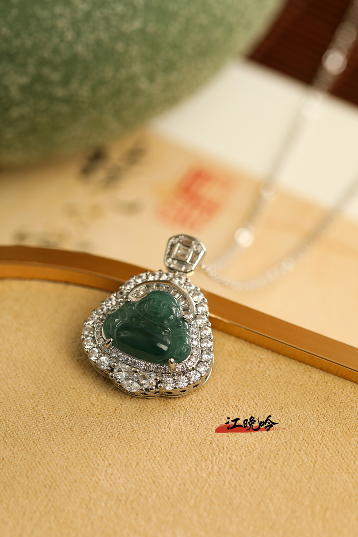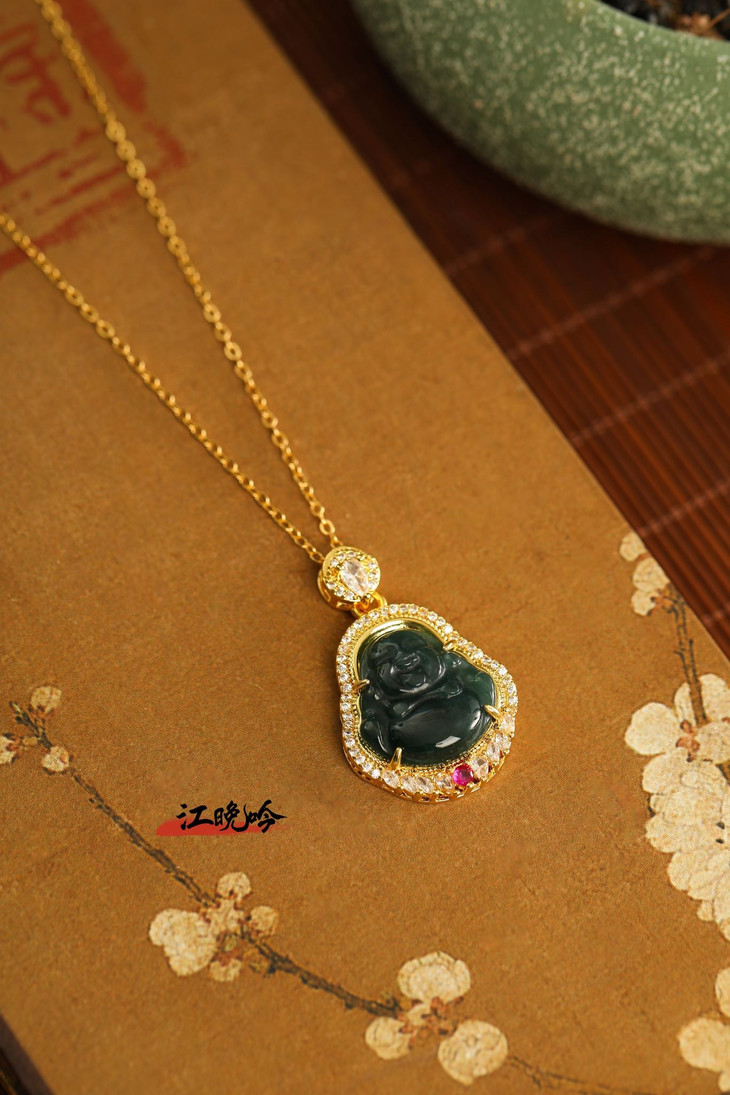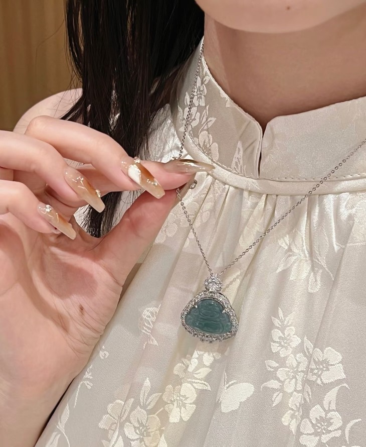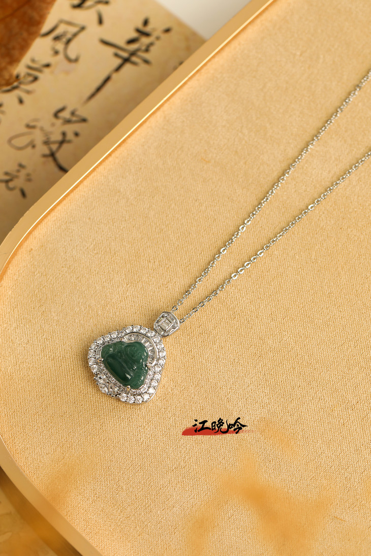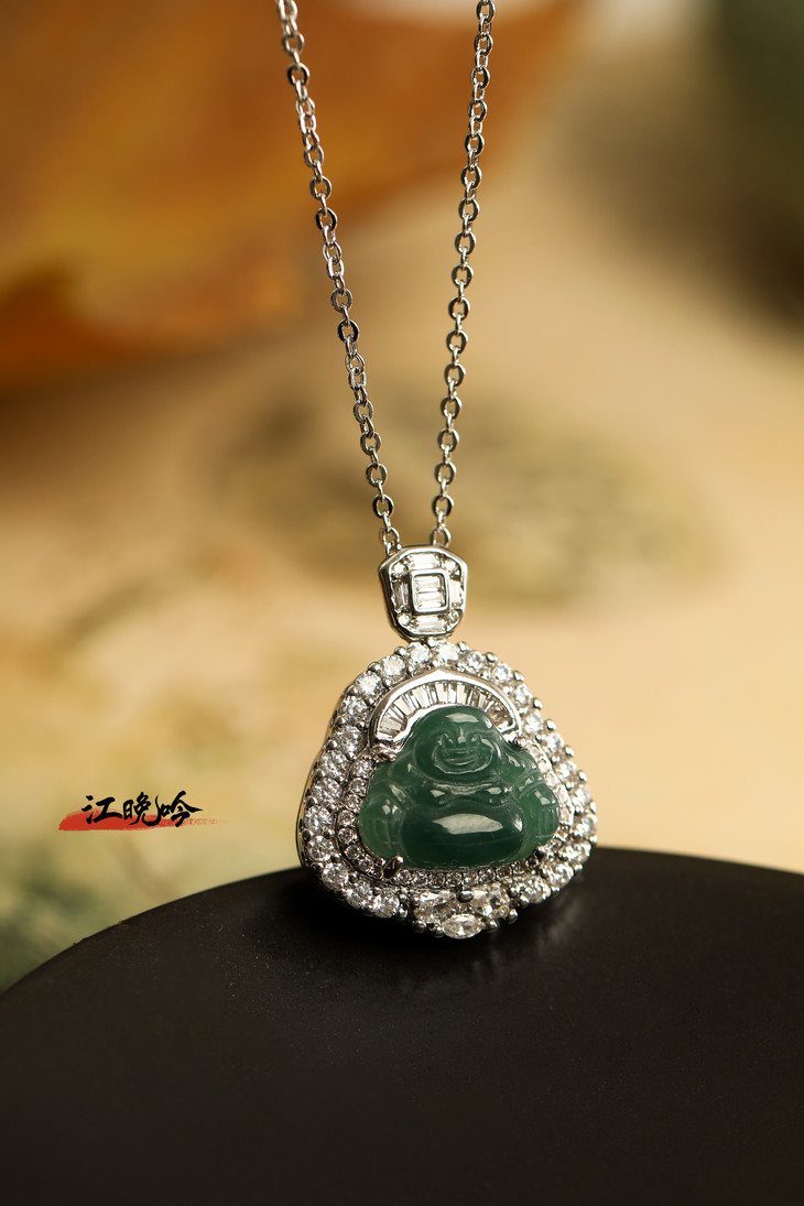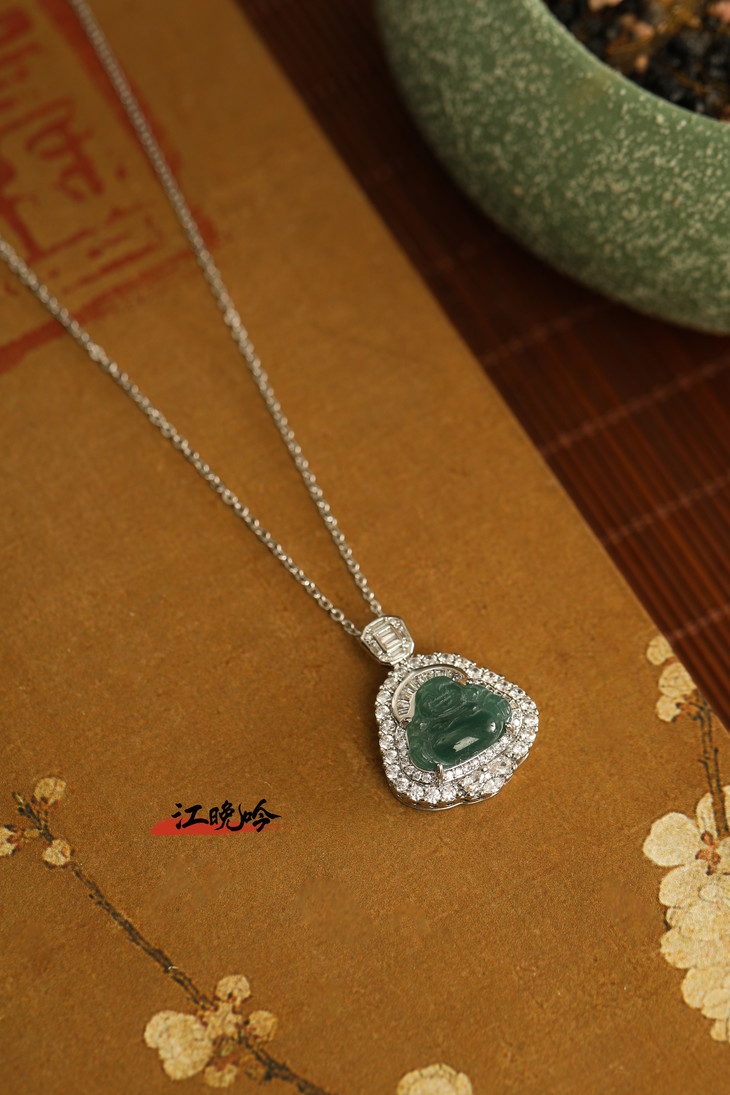 【江晚吟蓝水翡翠奢华佛公项链】