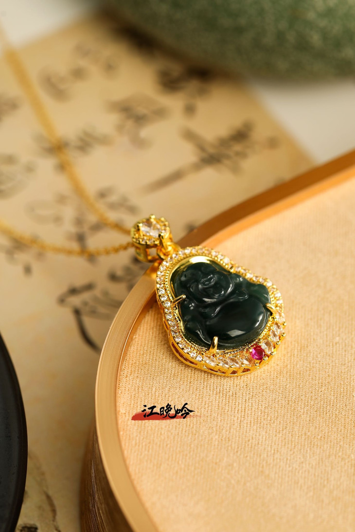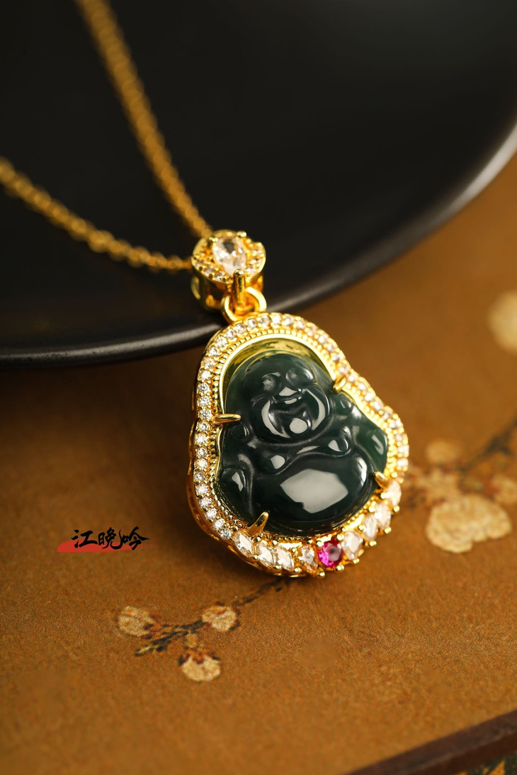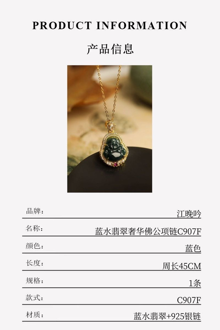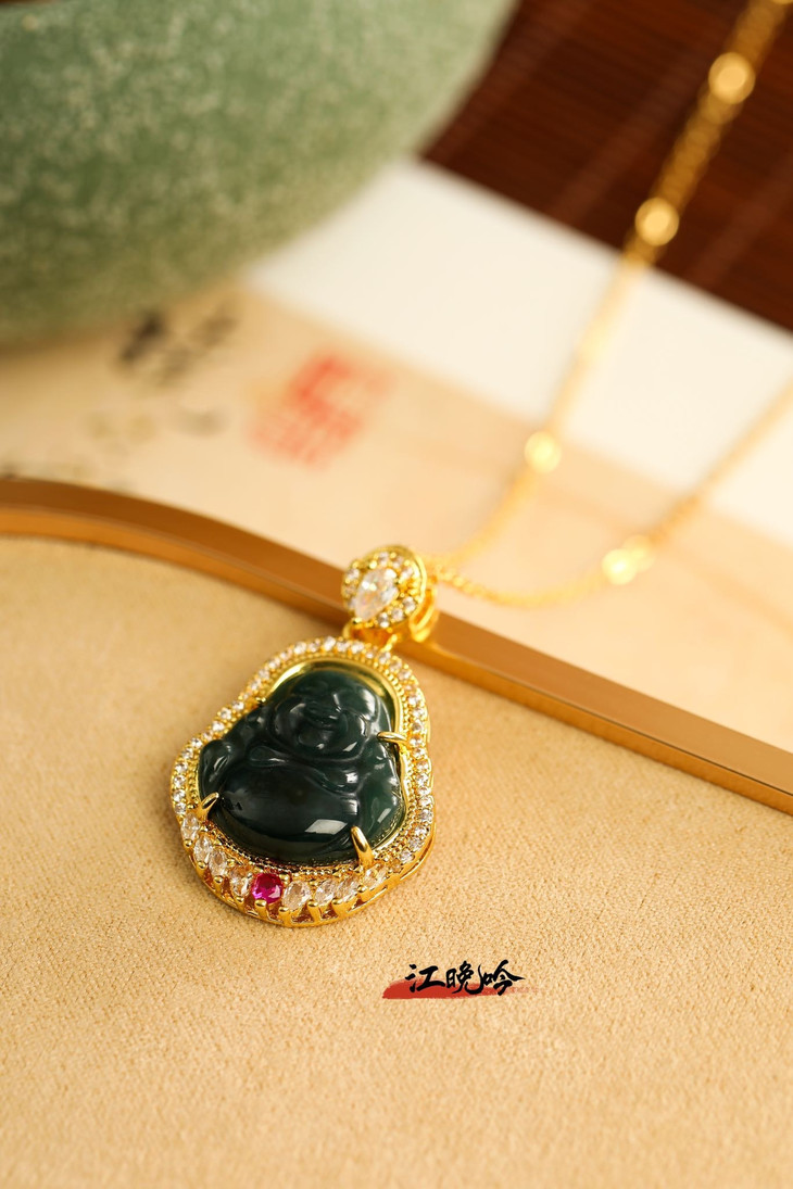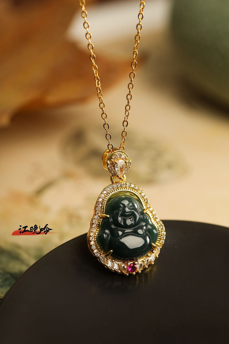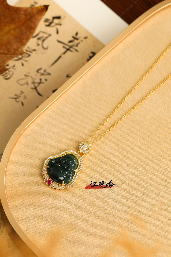【江晚吟蓝水翡翠奢华佛公项链】
