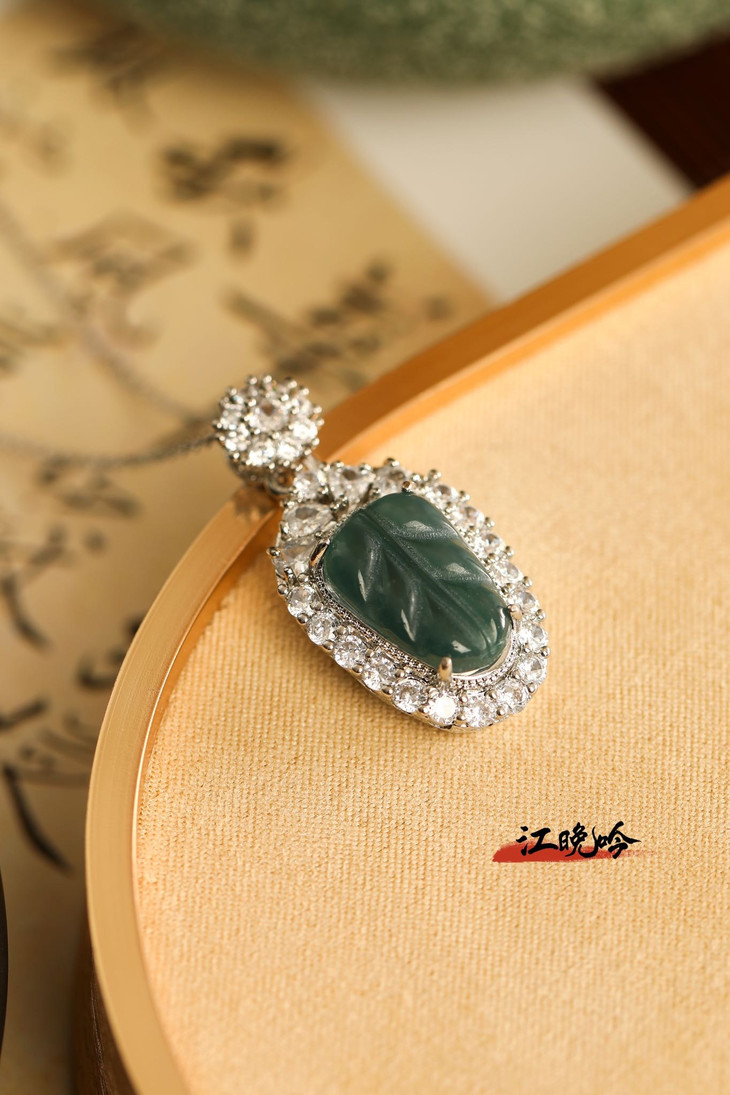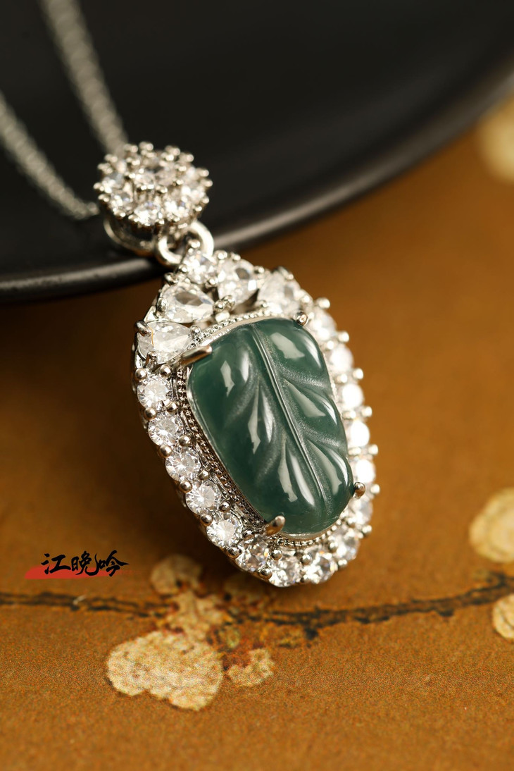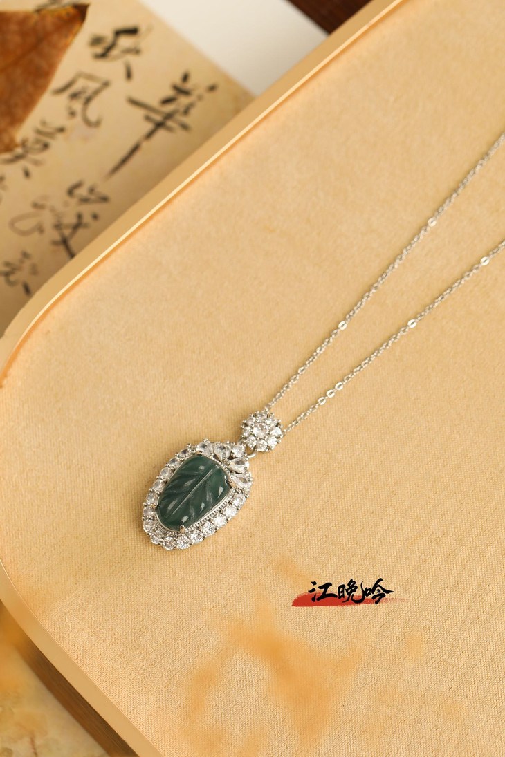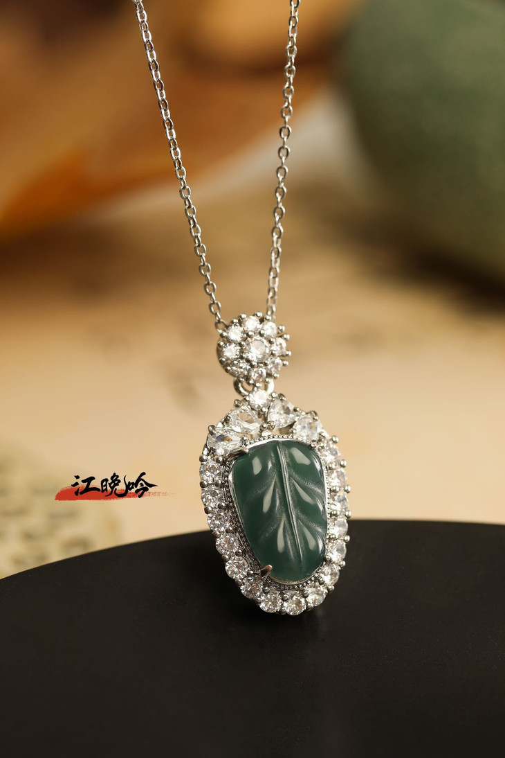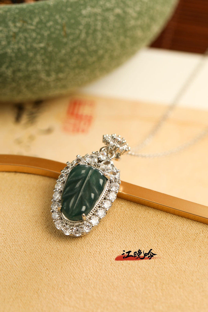 【江晚吟蓝水翡翠树叶项链】