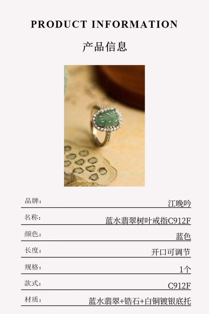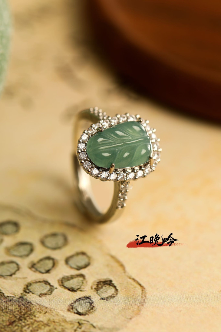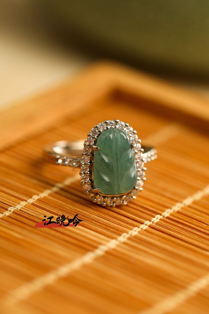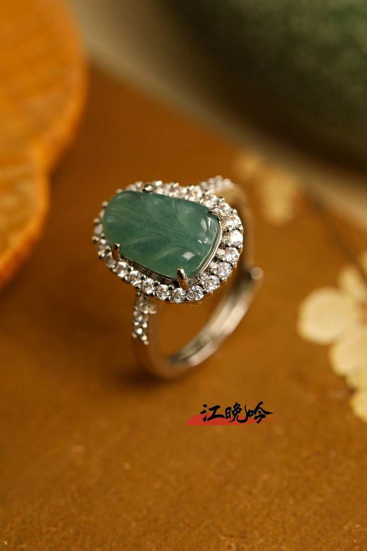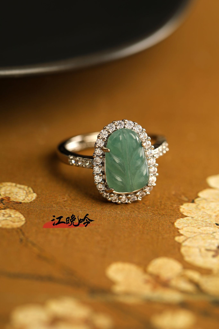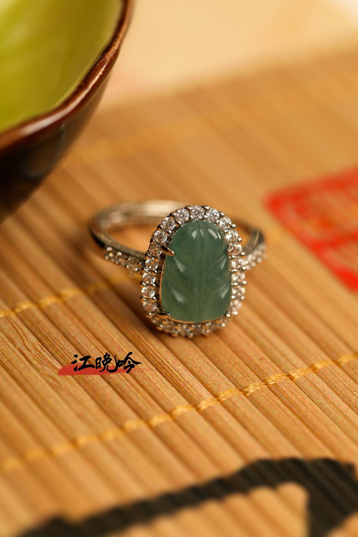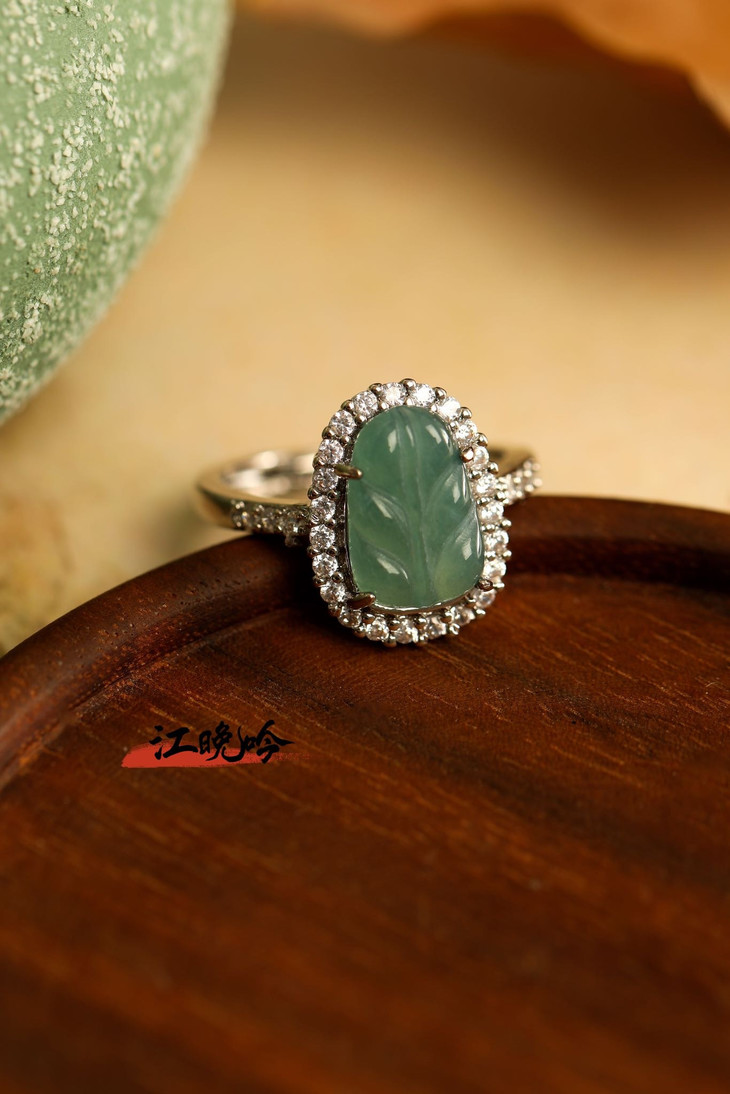 【江晚吟蓝水翡翠树叶戒指】