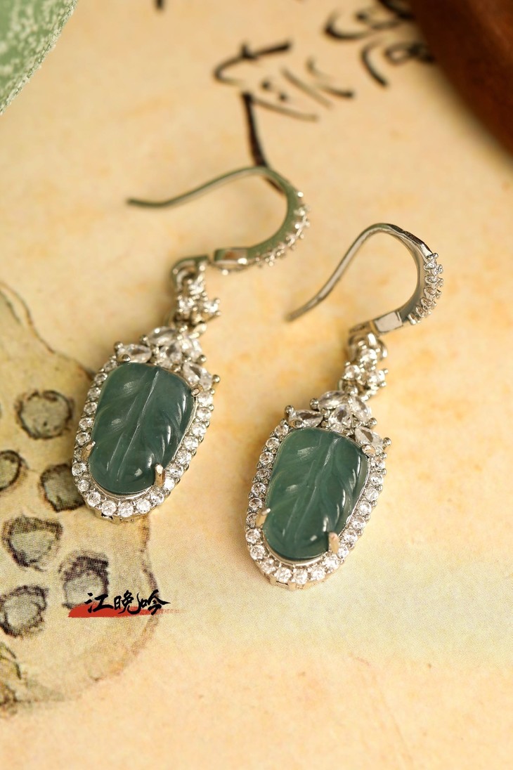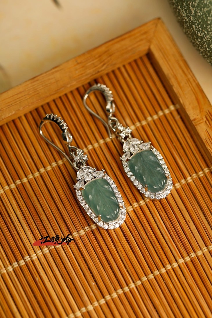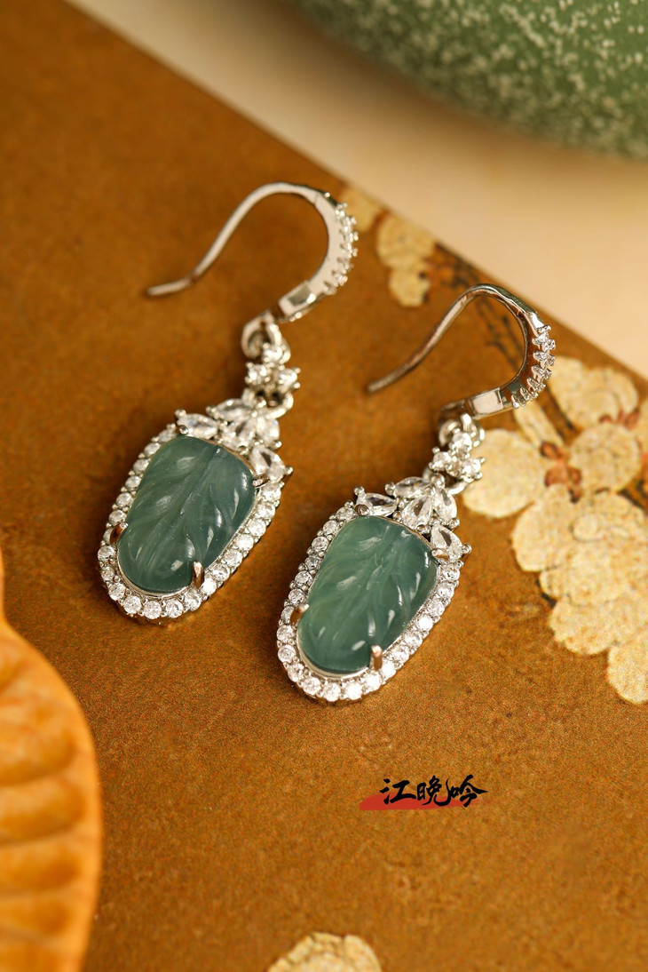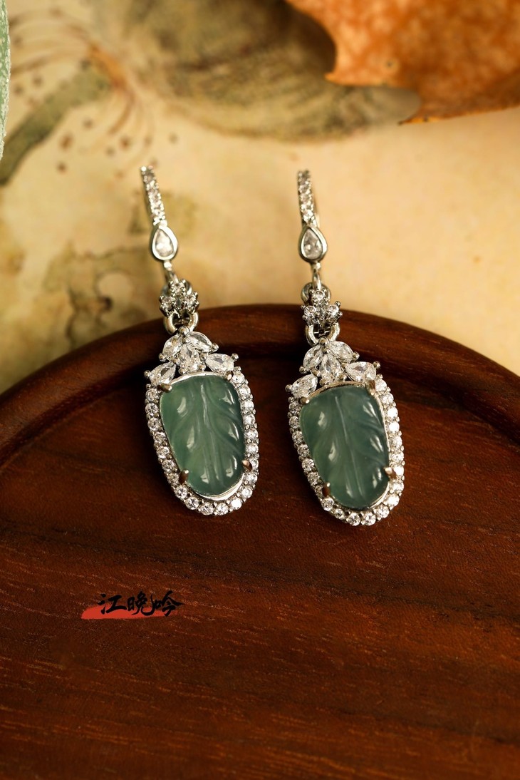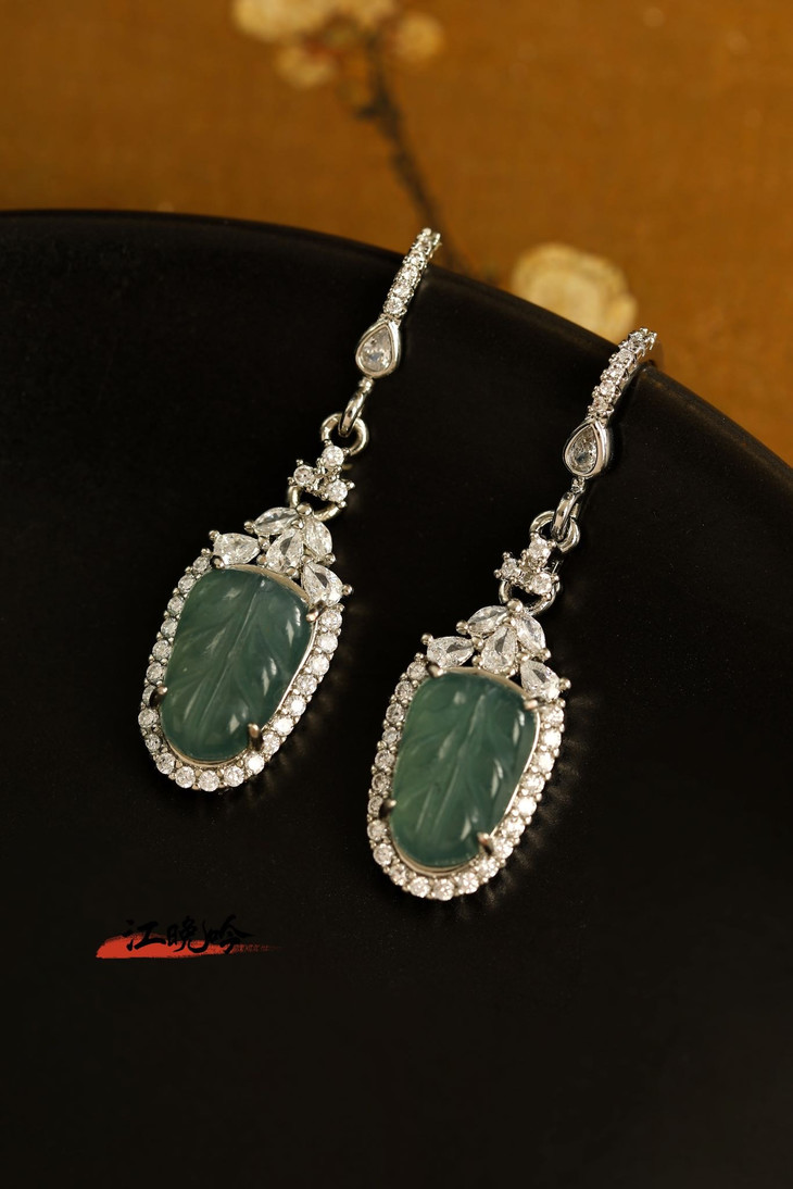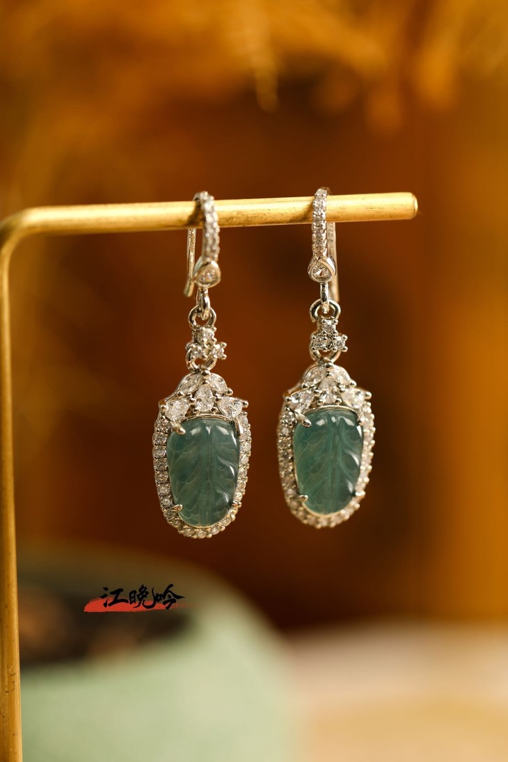 【江晚吟蓝水翡翠树叶耳环】