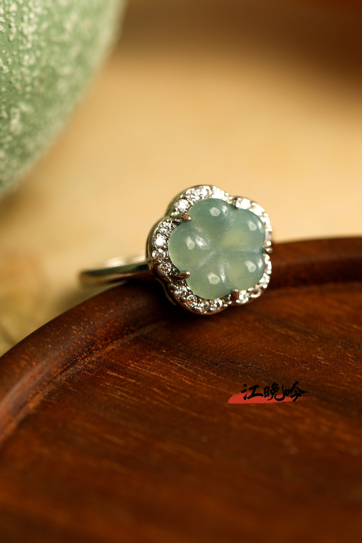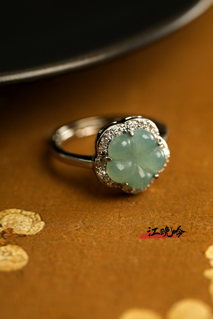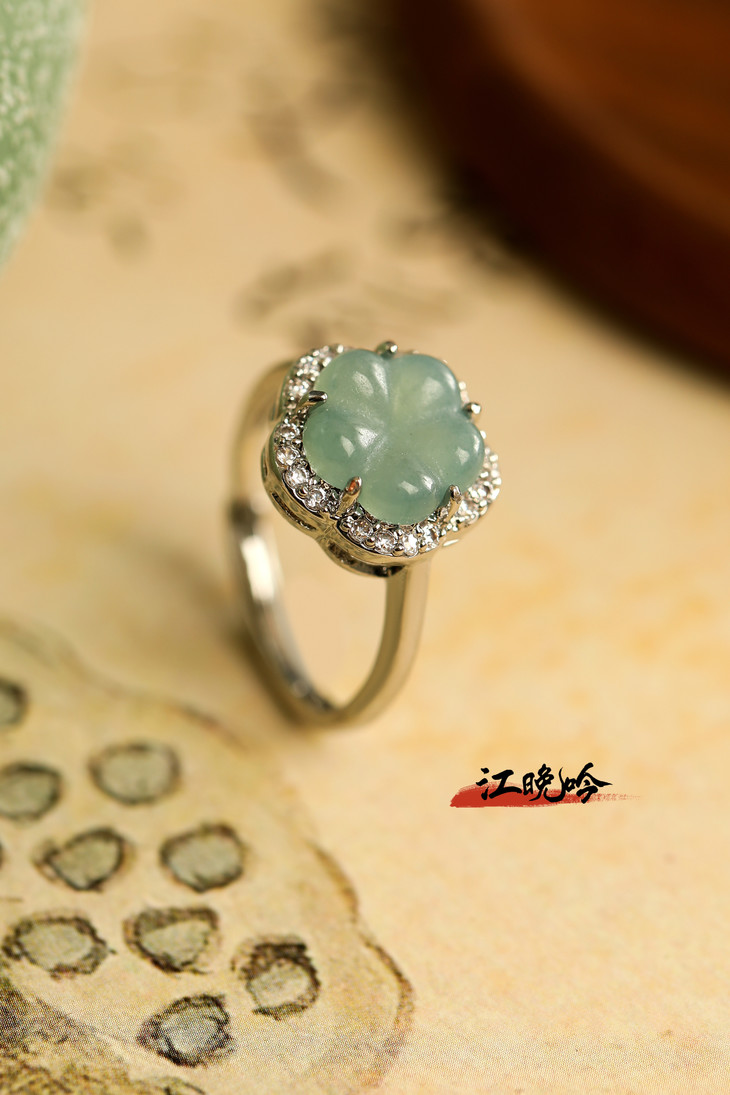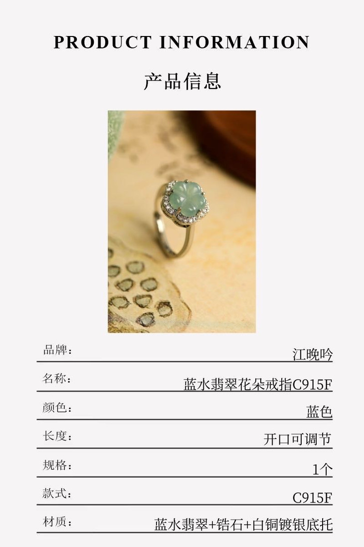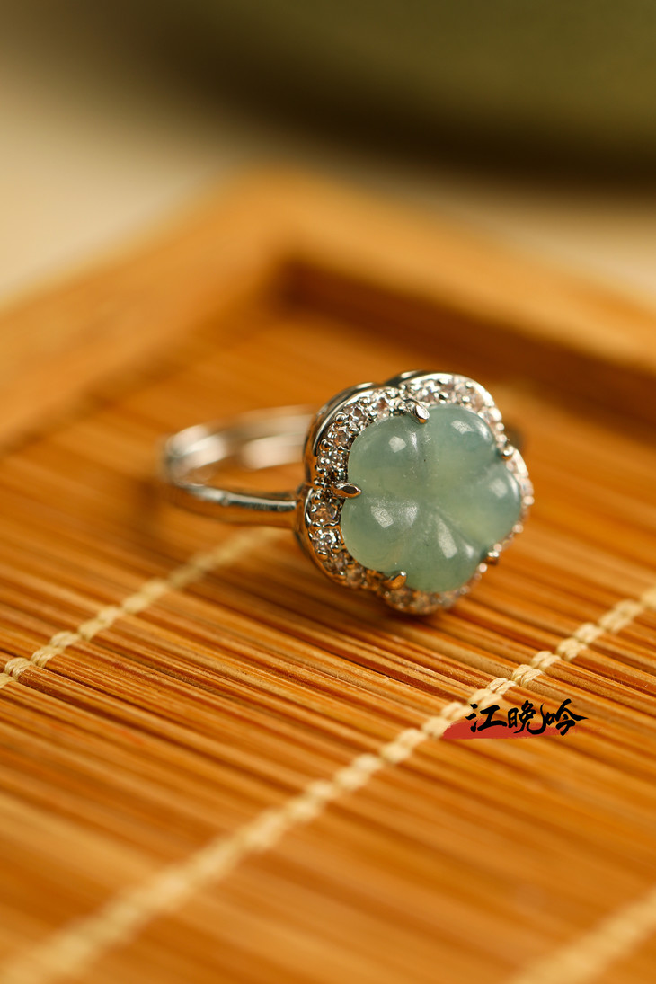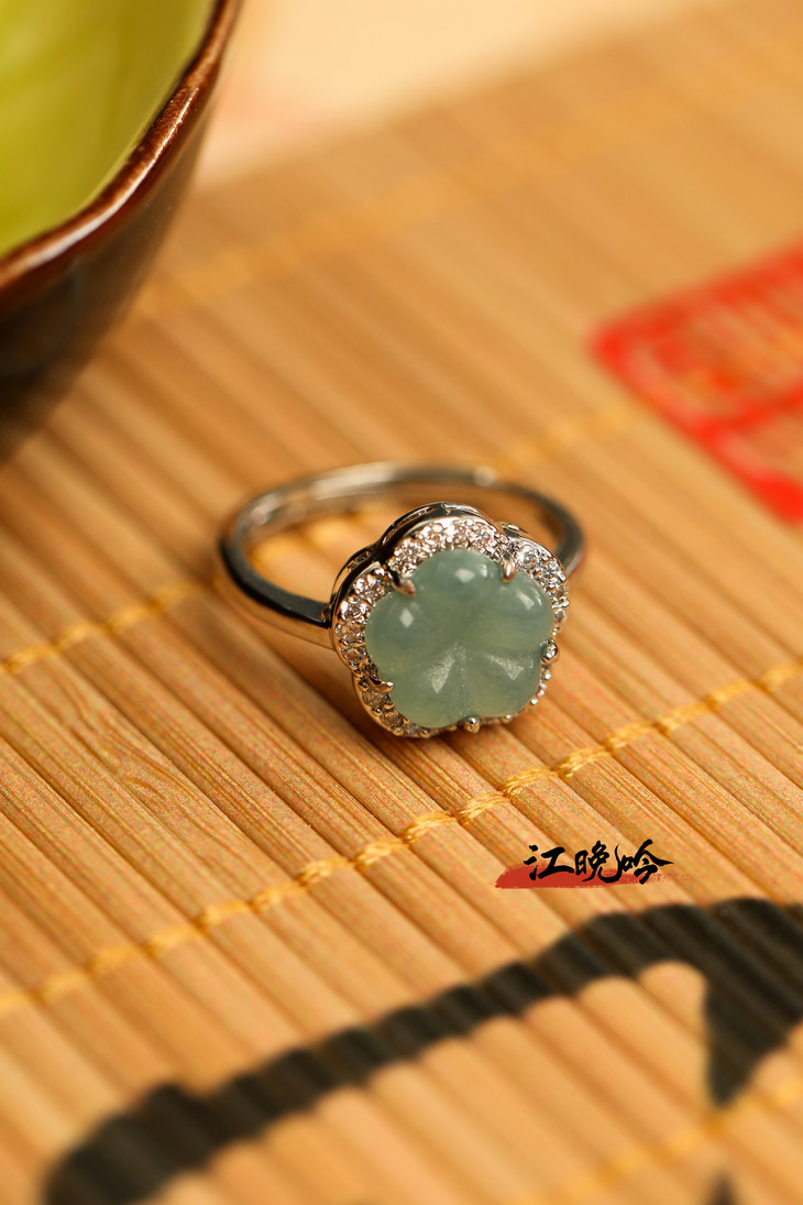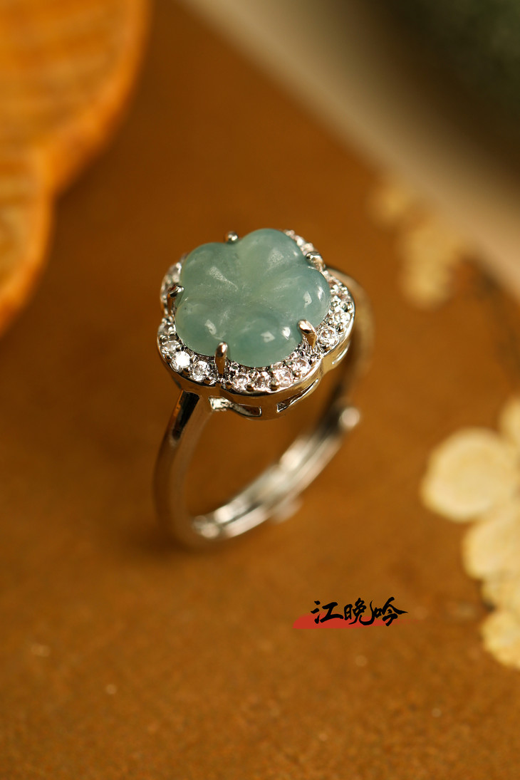【江晚吟蓝水翡翠花朵戒指】