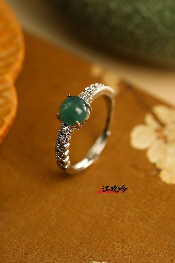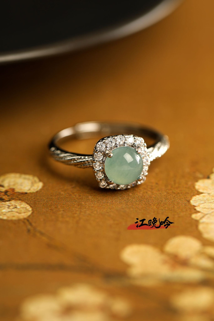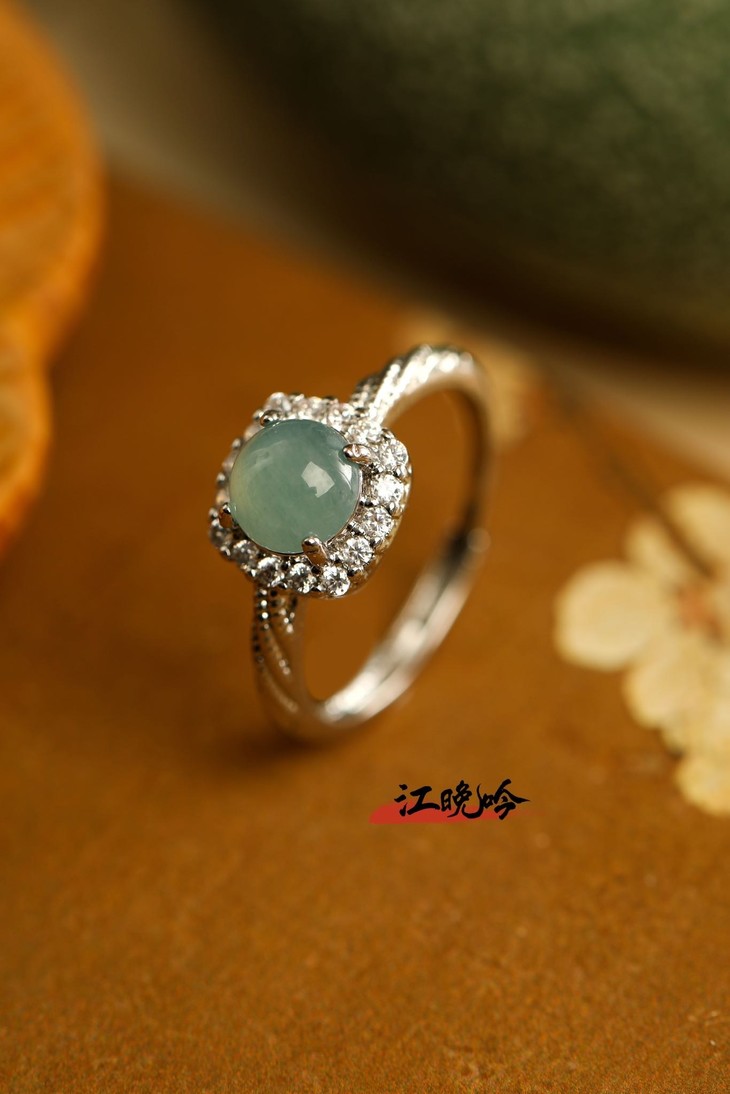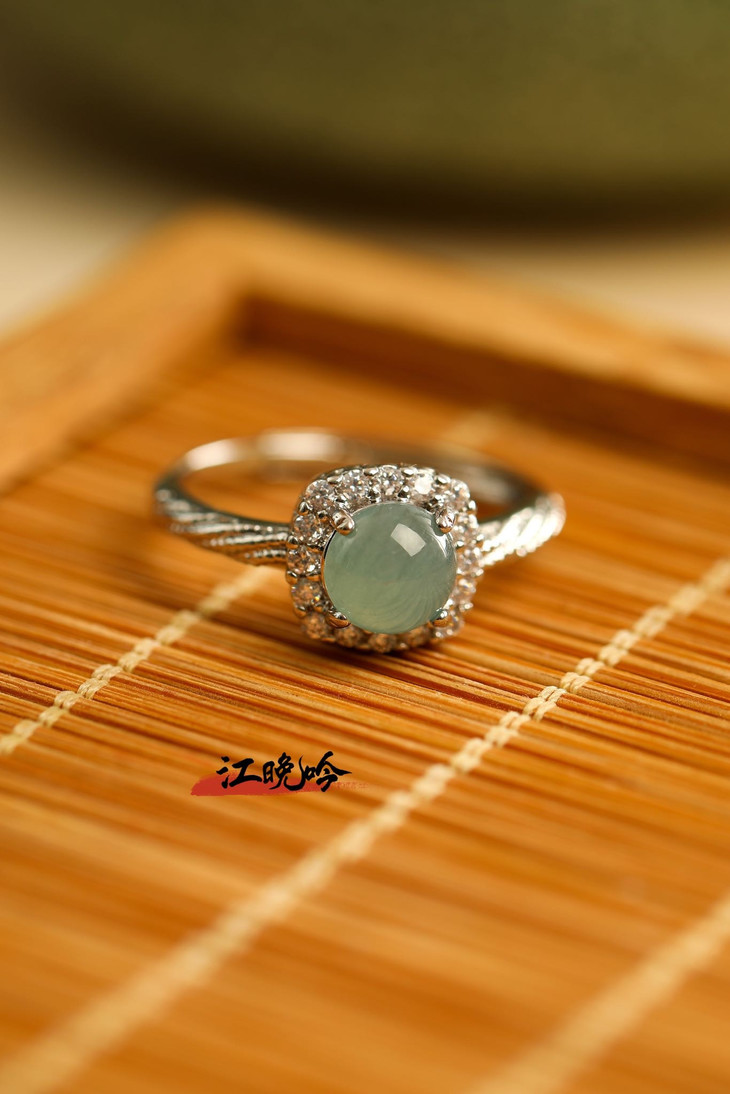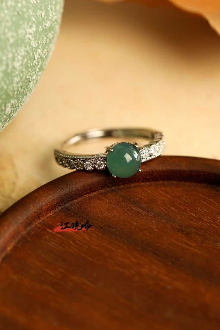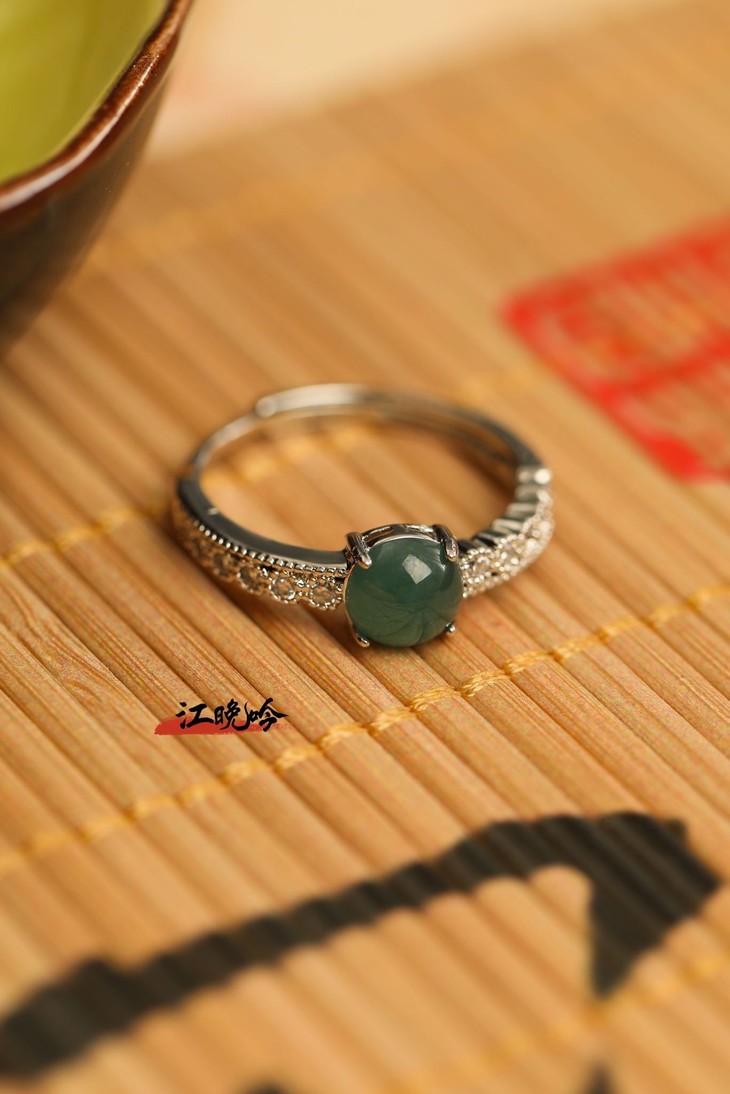 【江晚吟蓝水翡翠小巧戒指】