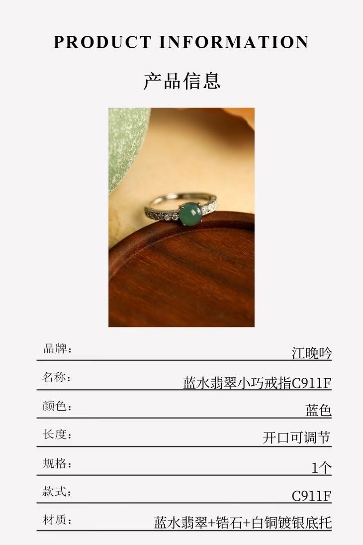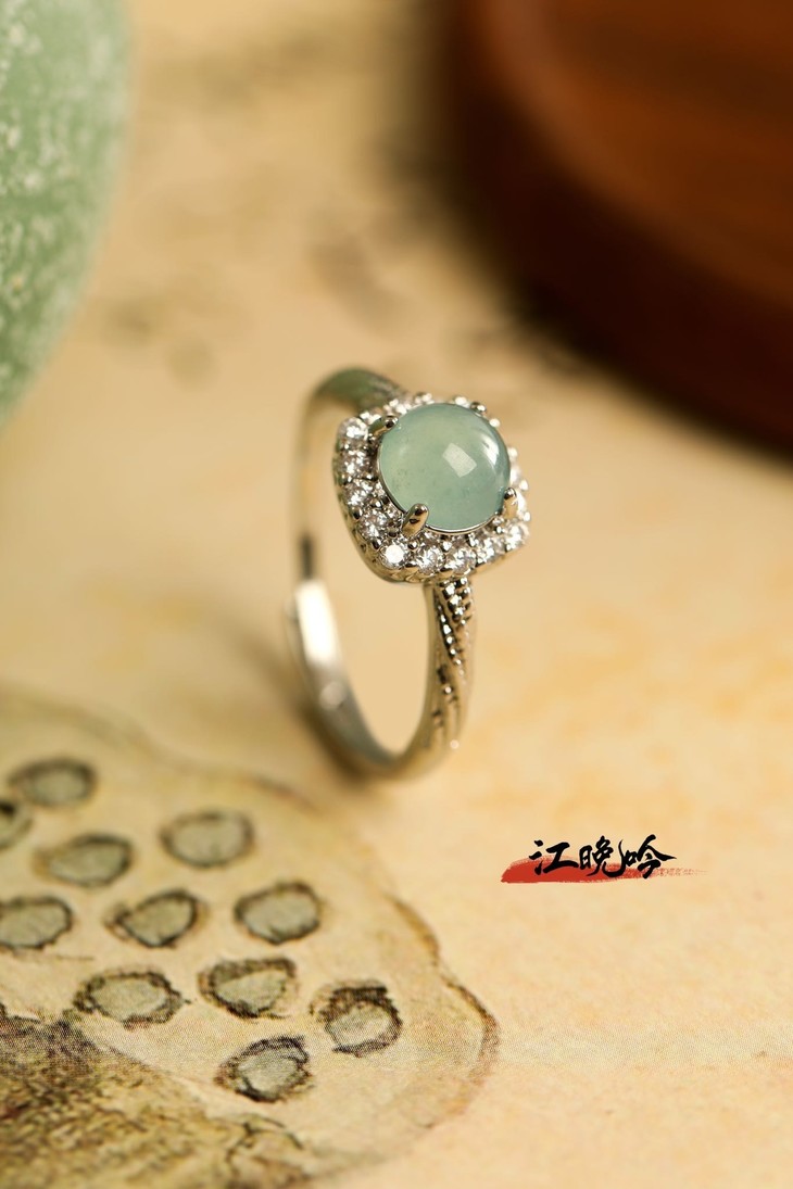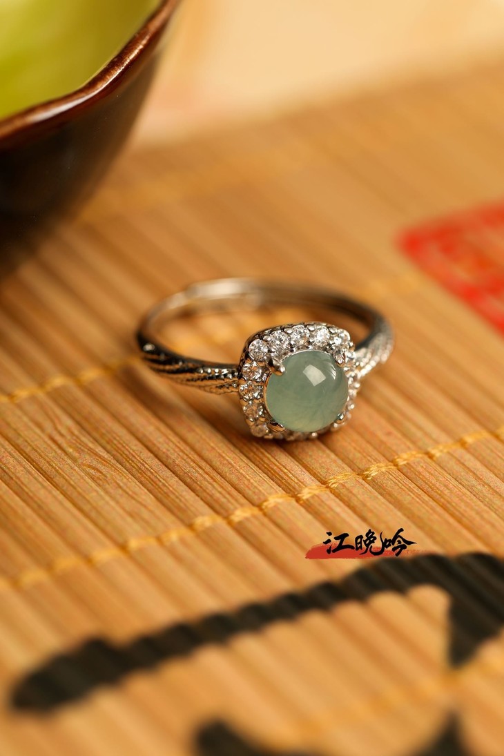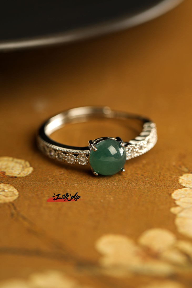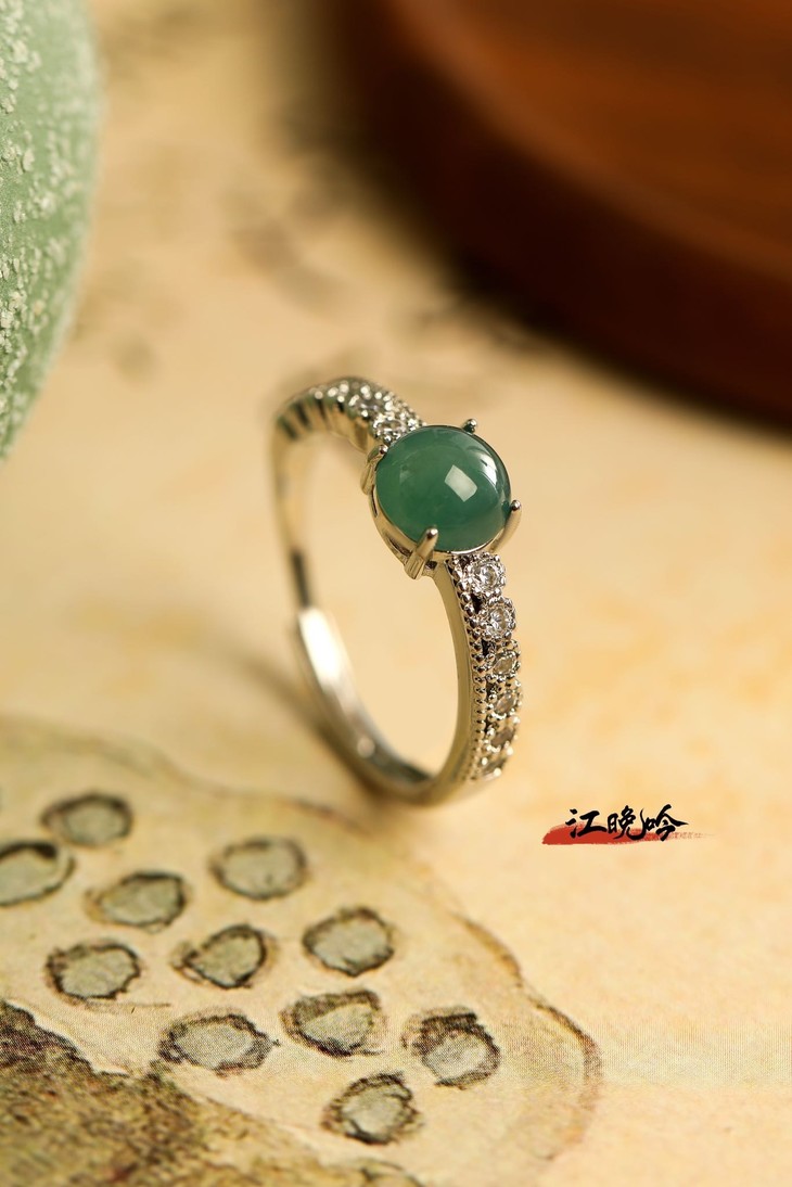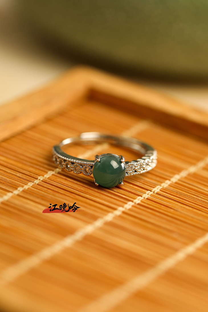 【江晚吟蓝水翡翠小巧戒指】