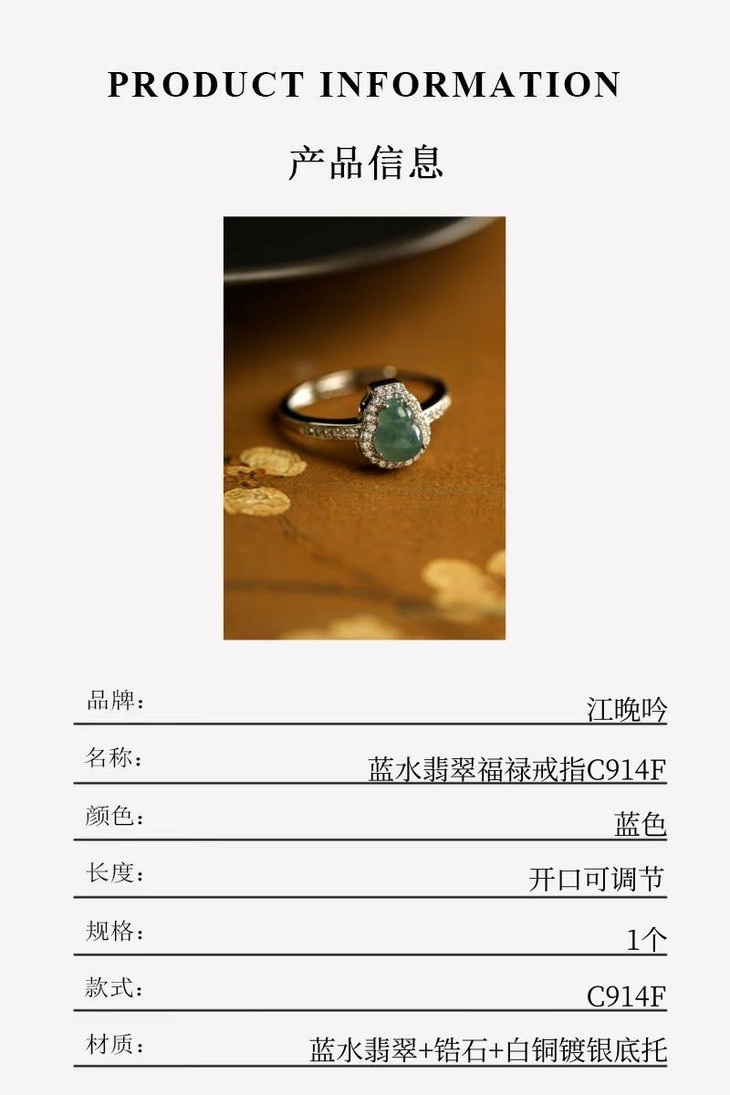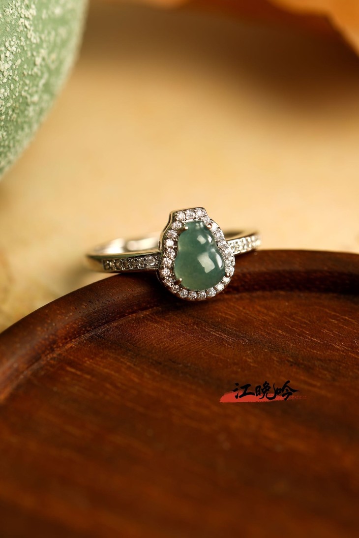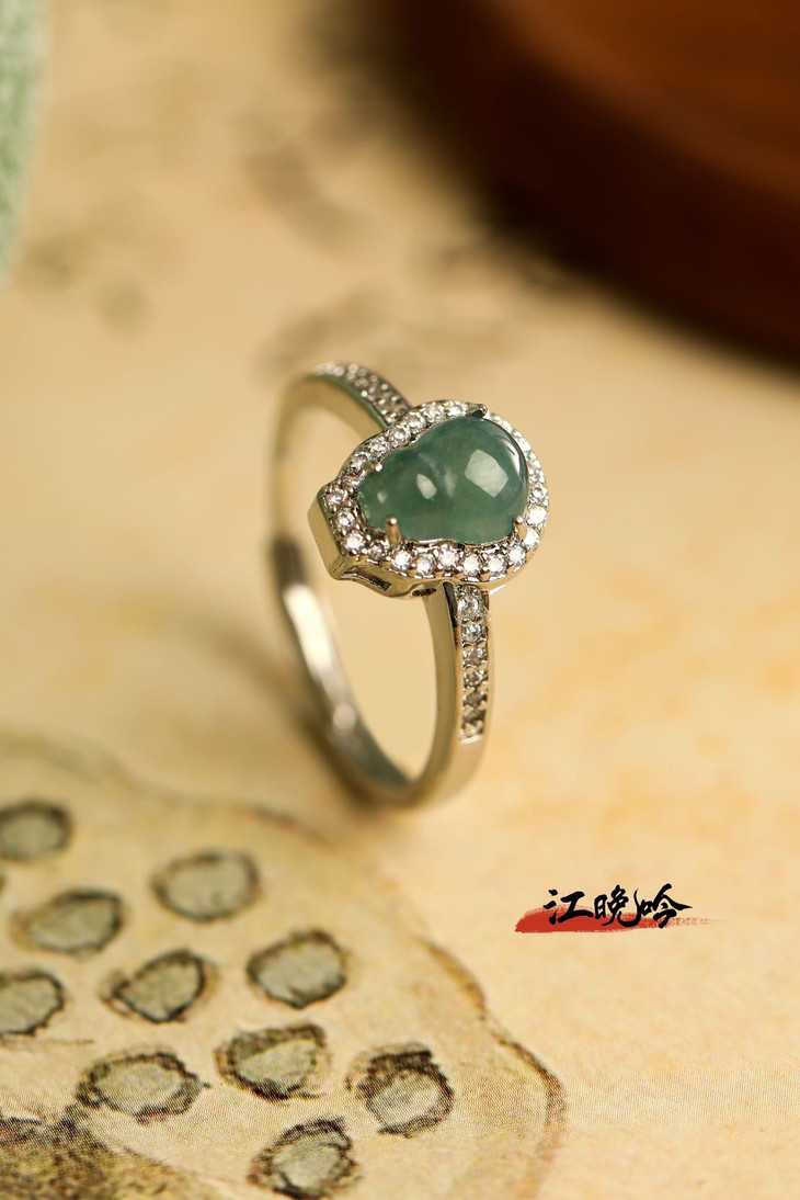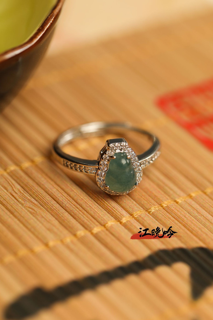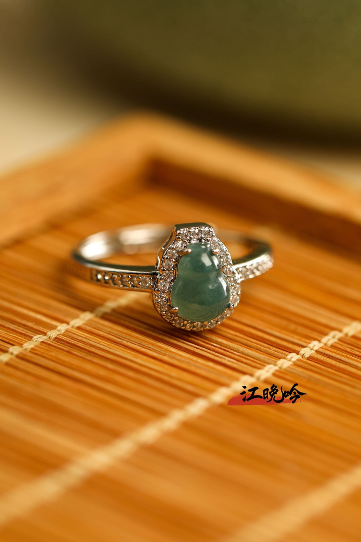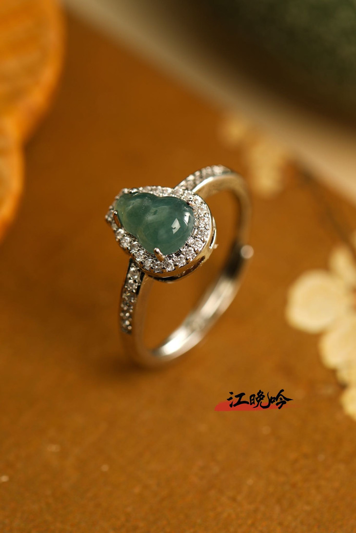 【江晚吟蓝水翡翠福禄戒指】