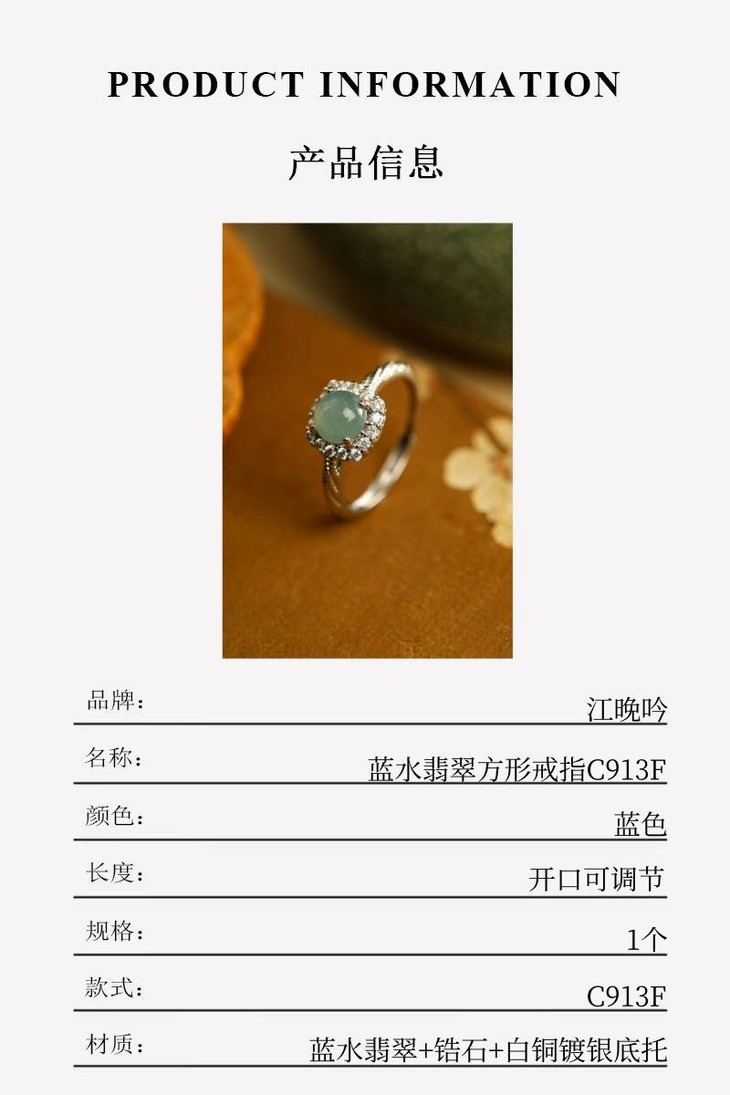 【江晚吟蓝水翡翠方形戒指】