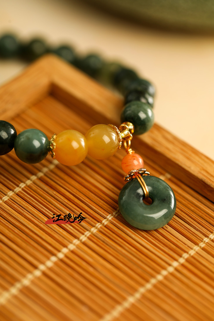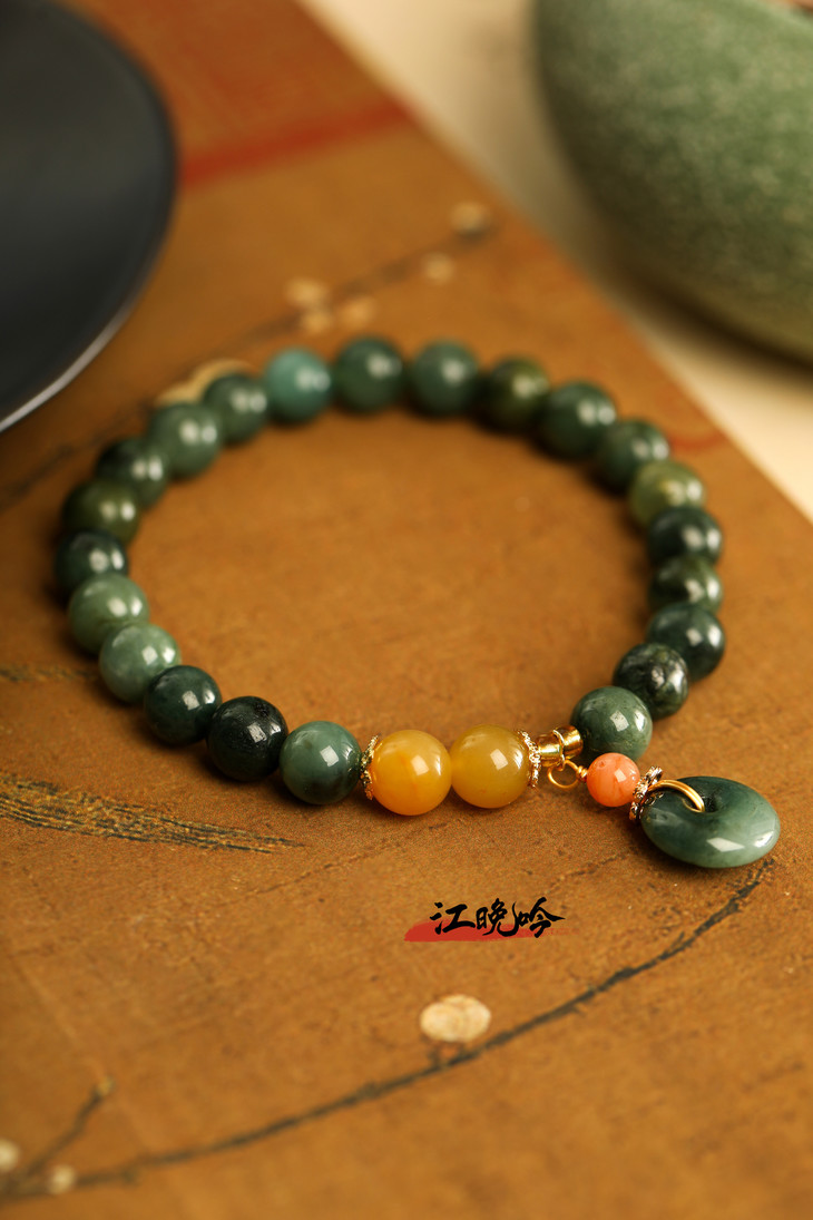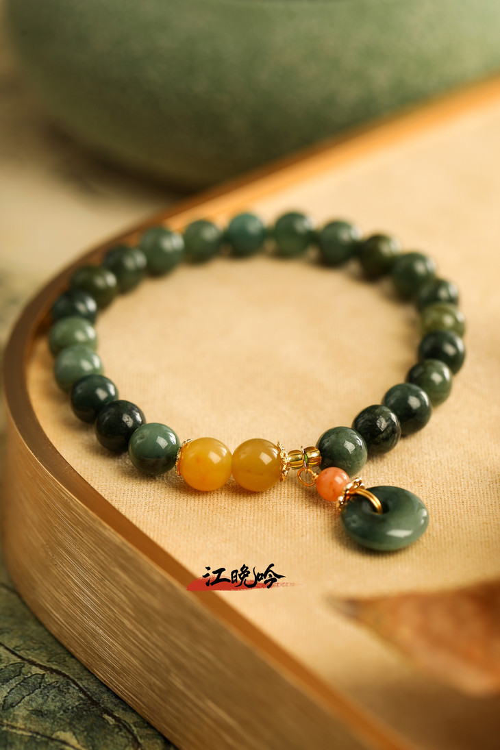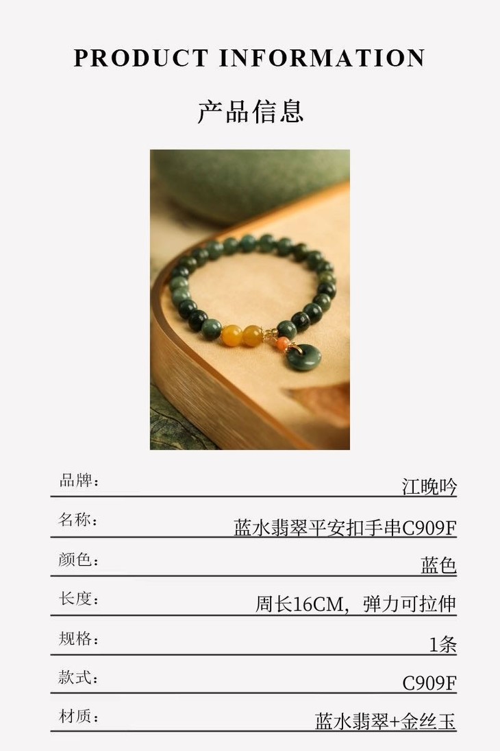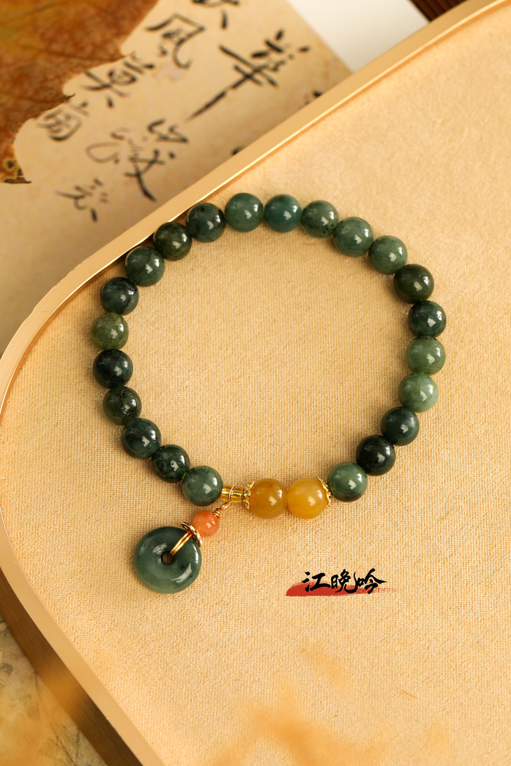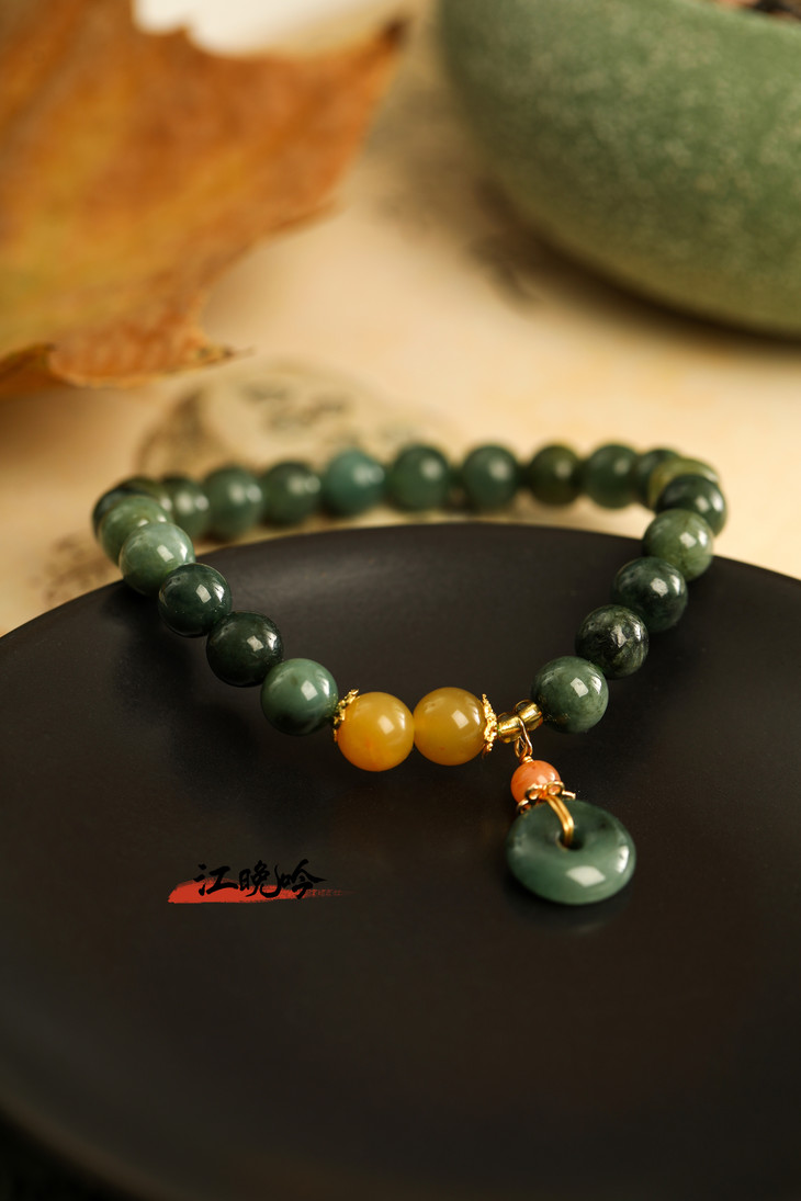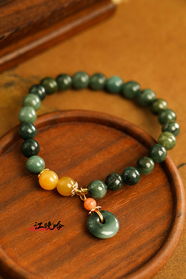 【江晚吟蓝水翡翠平安扣手串】