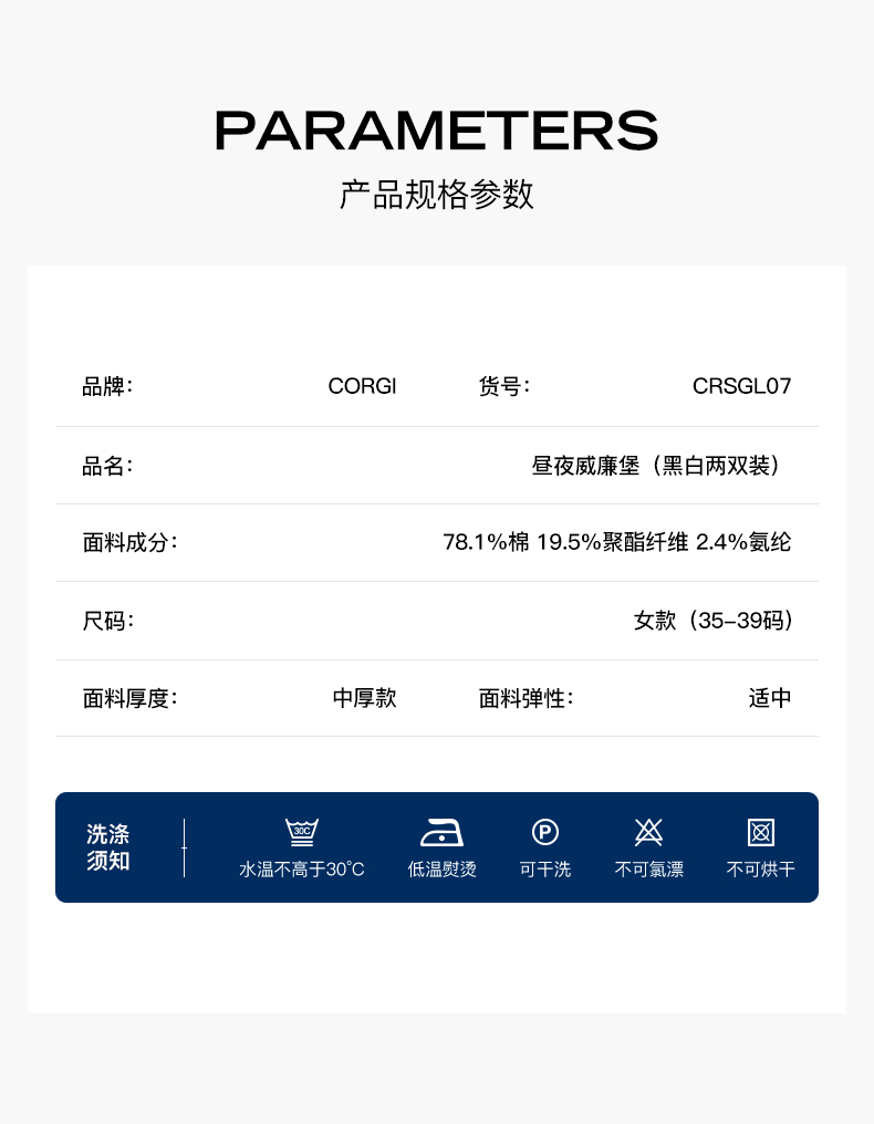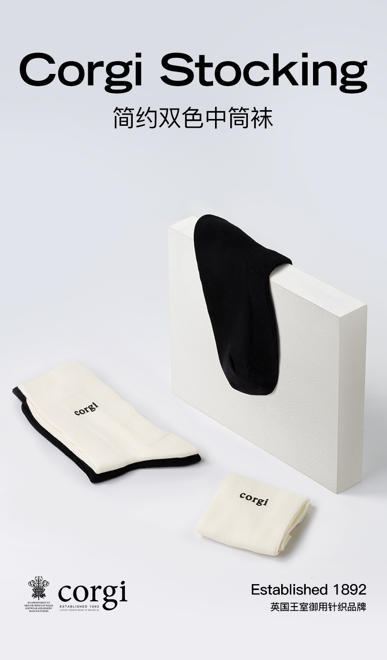 英国CORGI柯基 昼夜威廉堡袜子(黑白两双装)