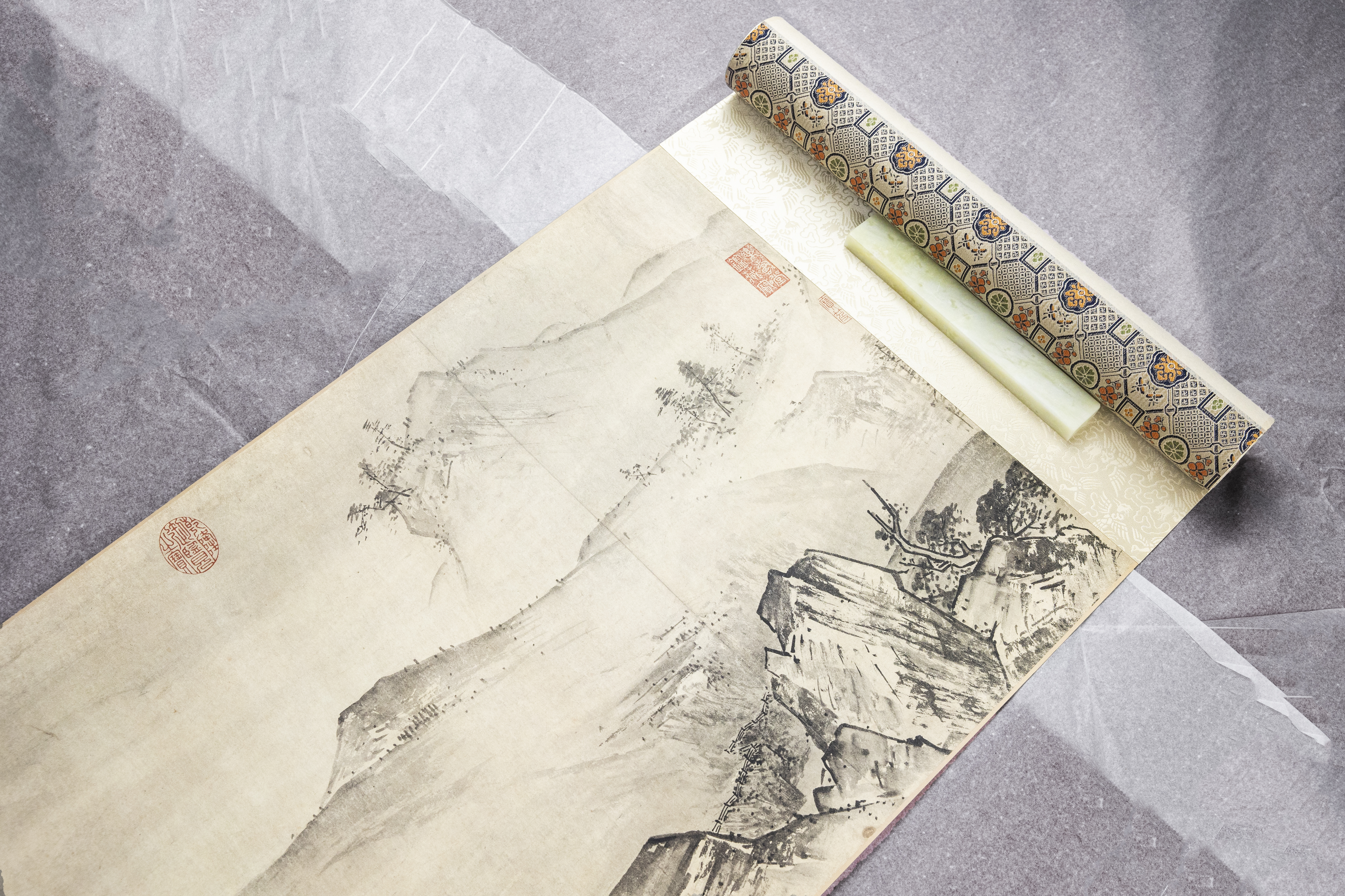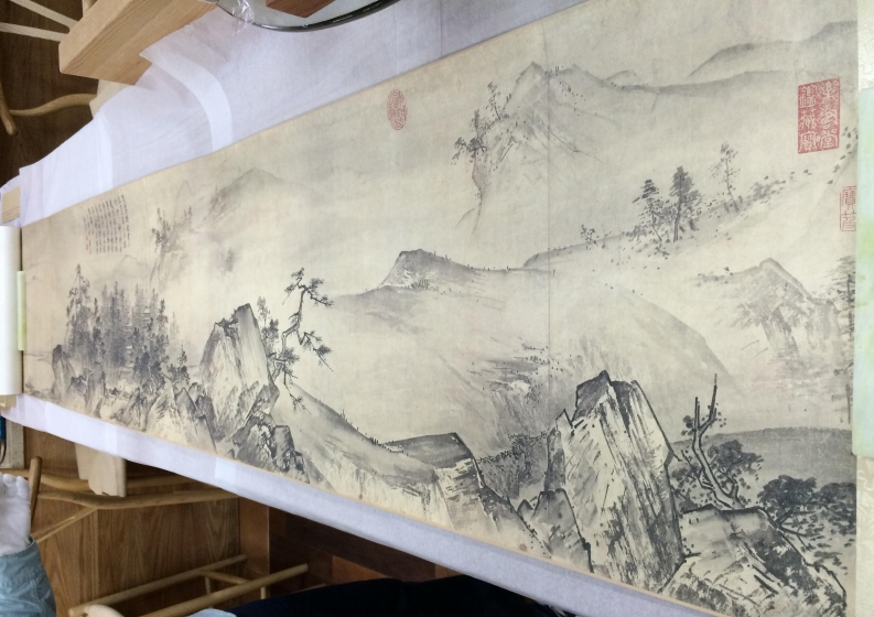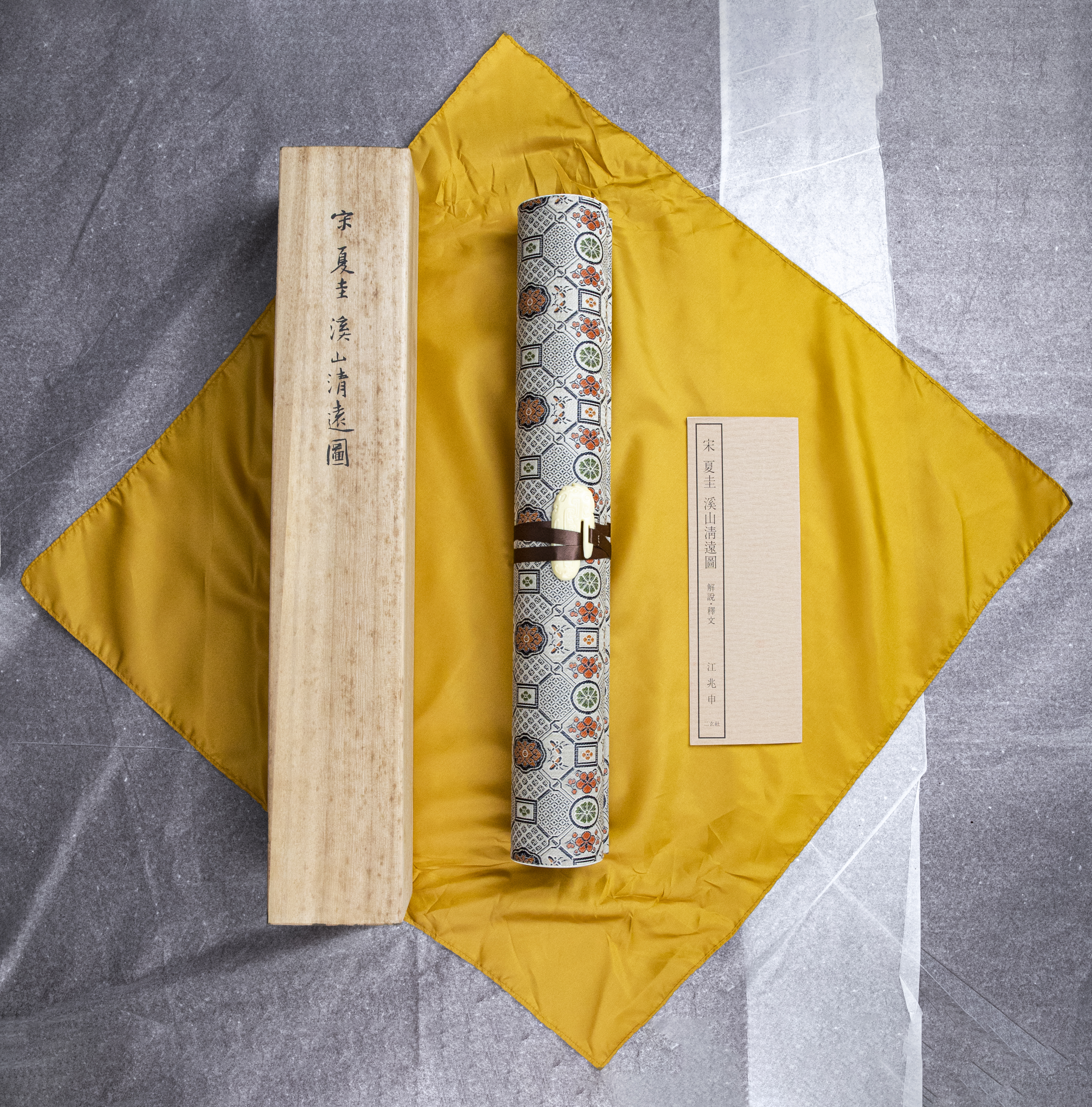 纸、绢、合成纤维等印刷材料的 开始也遇到了极大的困难。以某种西洋纸和非洲进口的特殊原料混合,加入特殊的材料使其产生柔软的感触,另一方面,提高印时的伸缩安定性,进而制成特种纸 材,经过无数次的反复实验终于成功地开发了于原蹟极为相似的印刷素材。在装裱上,从根本上改良了原有的材料和技术。中国书画还是中国式的文人装裱简洁大 方,极力排除了日本传统的装裱方式。方使原蹟逼真地再现。