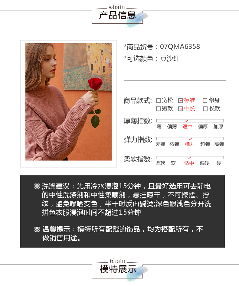 “精致”是欧芮儿olrain品牌文化的核心,欧芮儿认为,精致的女人,不但要外在动人,更要内在迷人,内外兼修,有魅力、有气质、有内涵,自信而不自傲,优雅而不矫揉,自有万种风情而不轻浮,更不故作矜持。